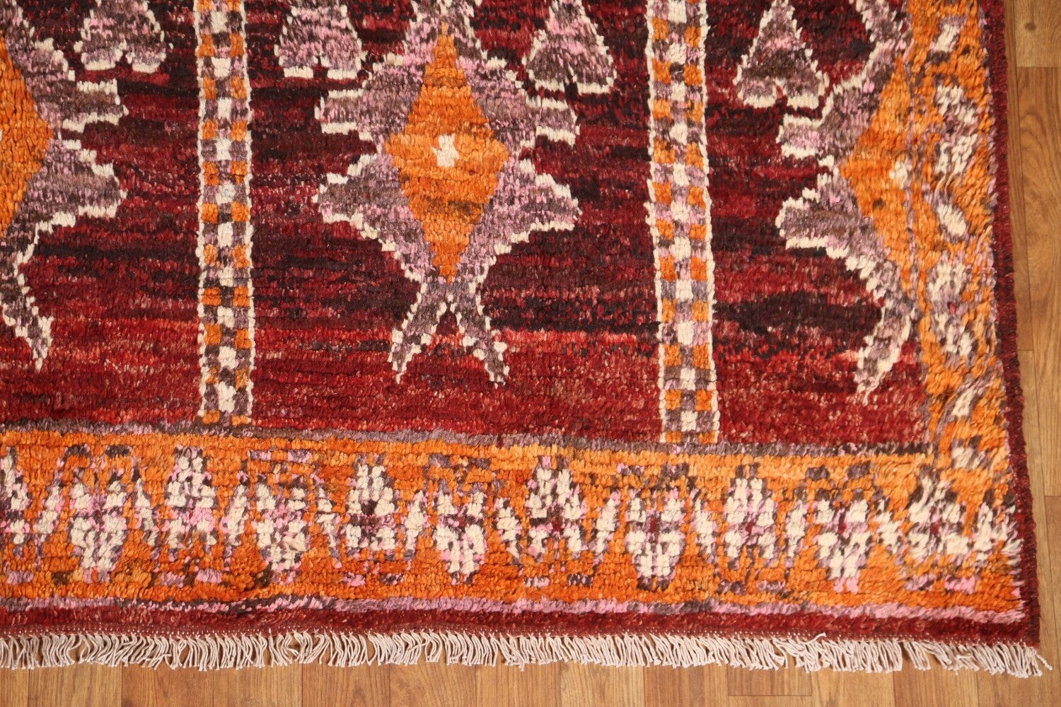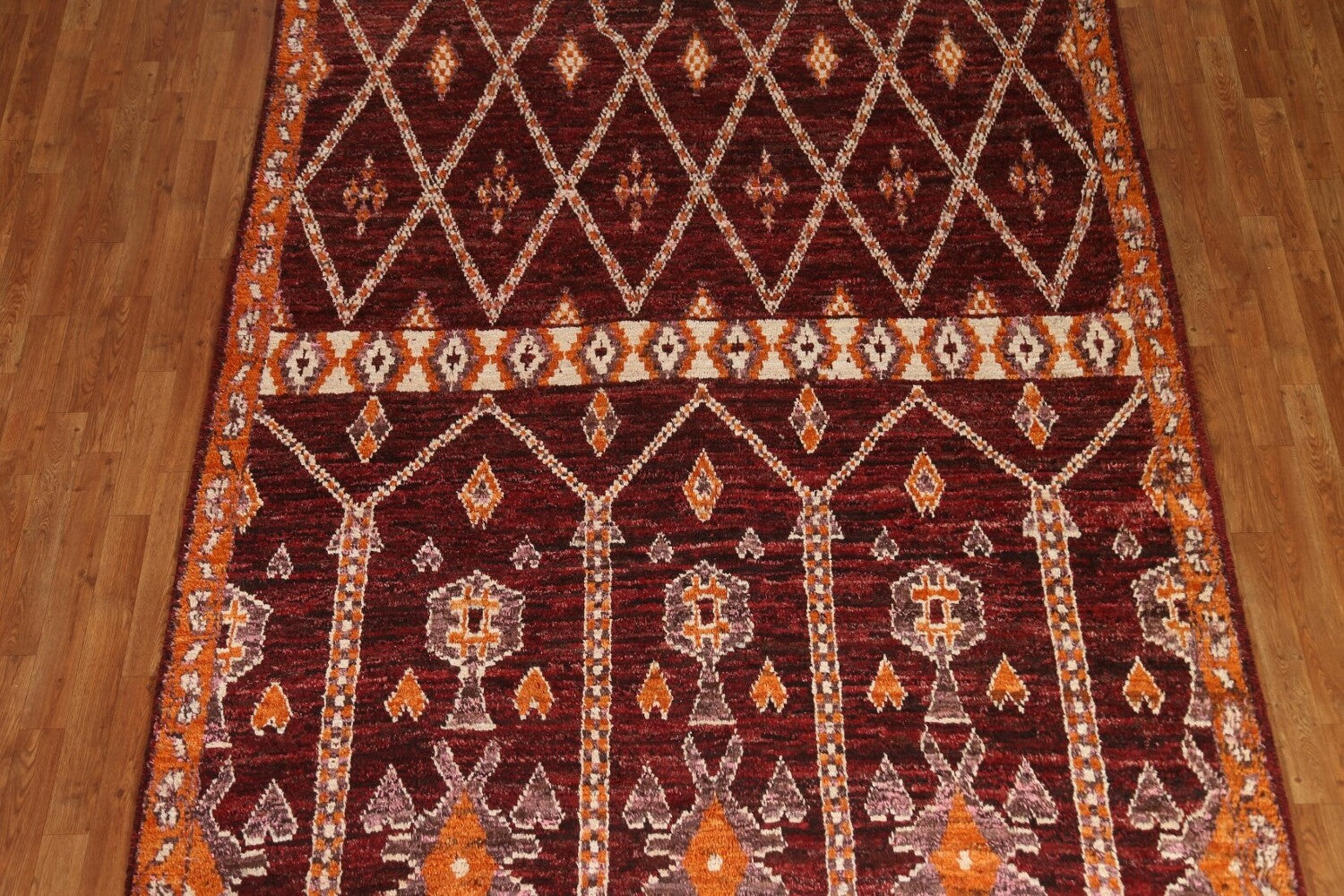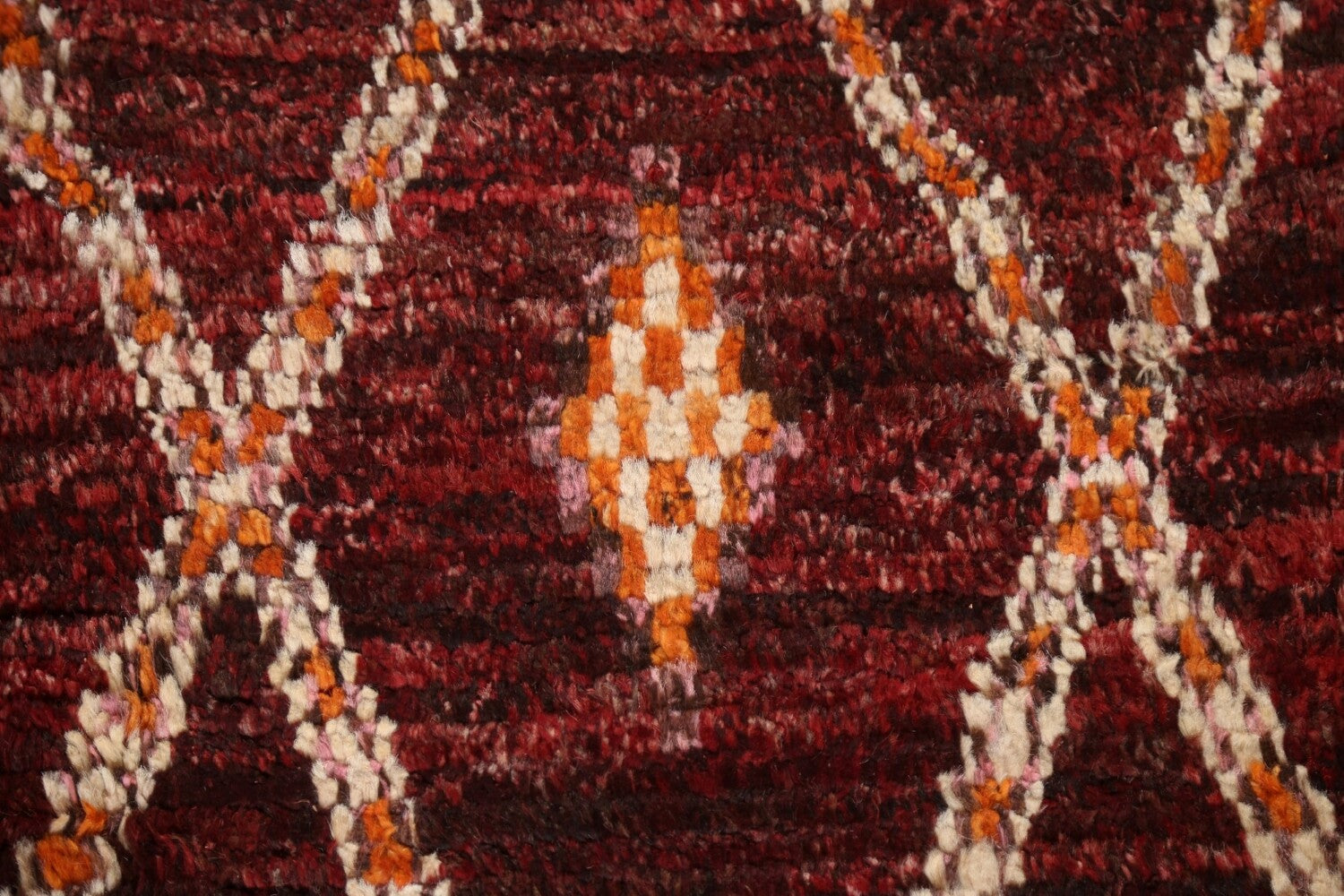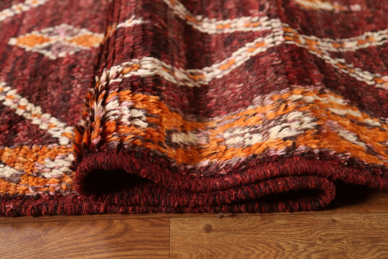 A Beautiful Genuine Pakistan Moroccan rug is Hand Knotted by skillful weavers in Pakistan with 100% Wool Material. This rug is in New, First Quality condition. dimensions are 9' 8'' X 6' 10'' in foot and 295 X 208 in centimeter. the primary color is Red.