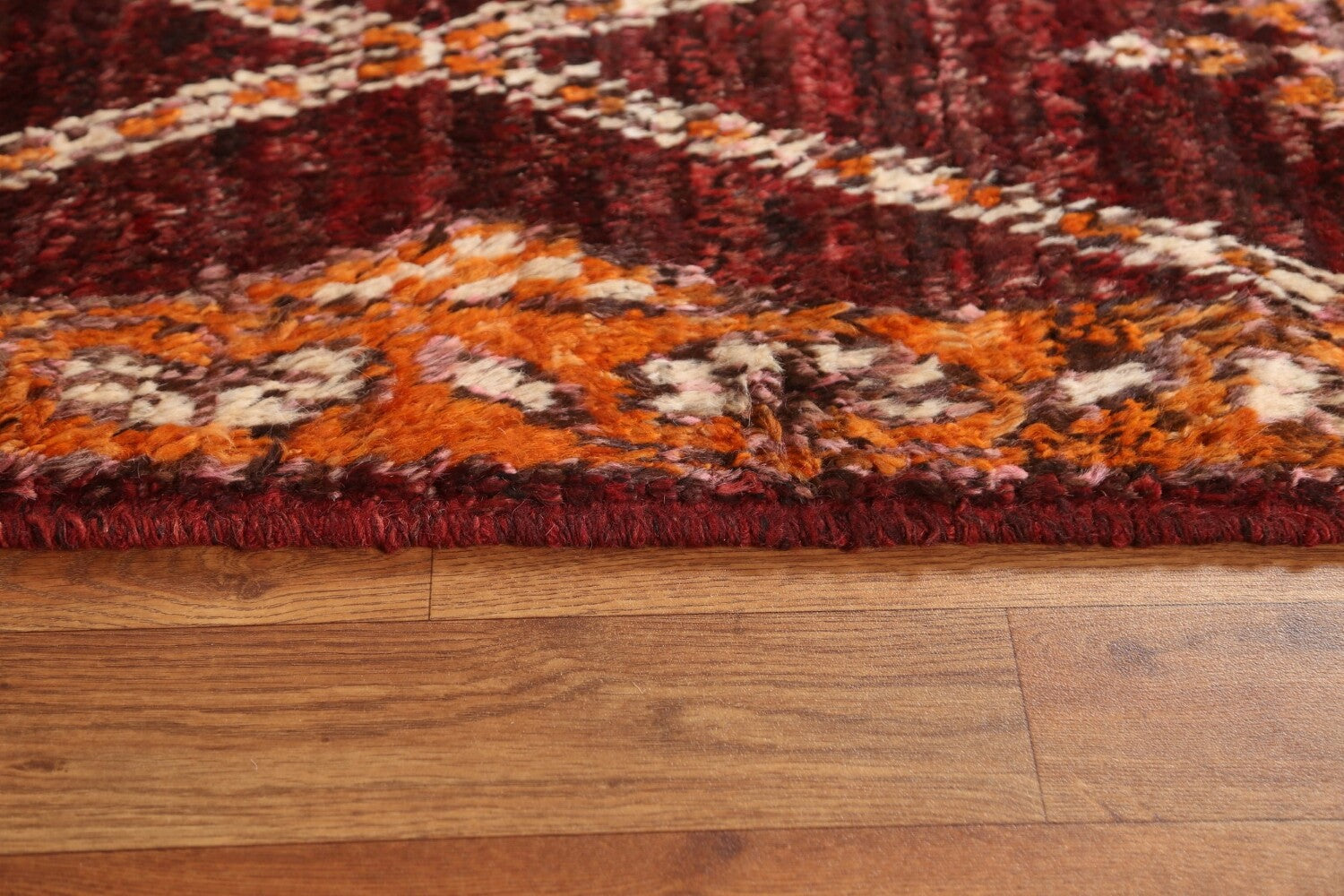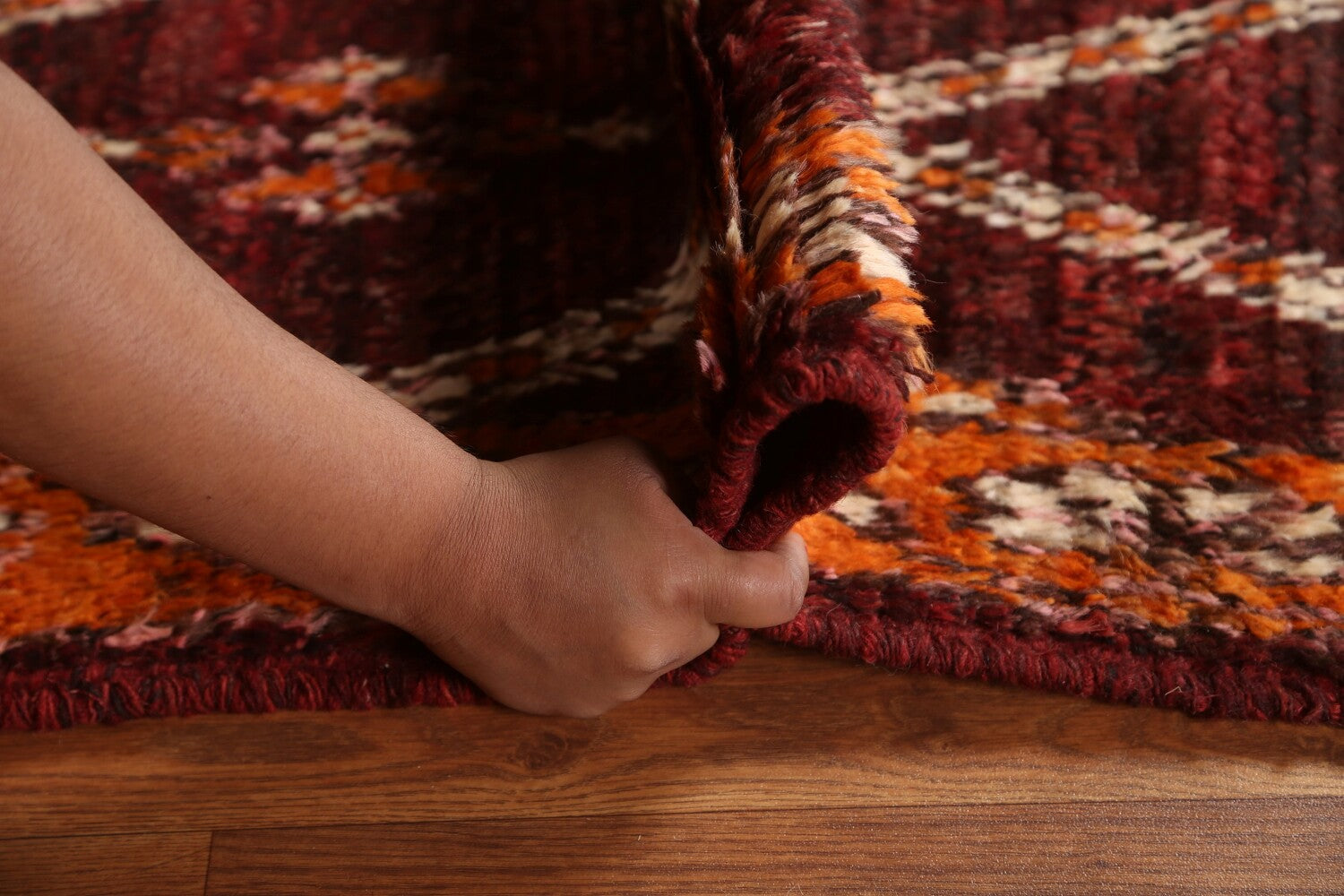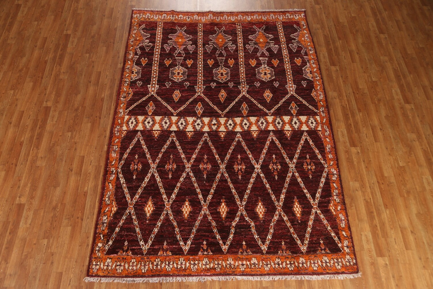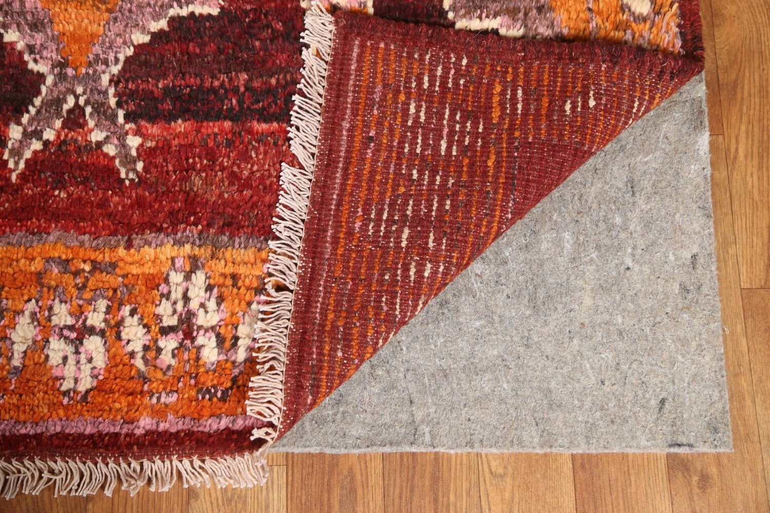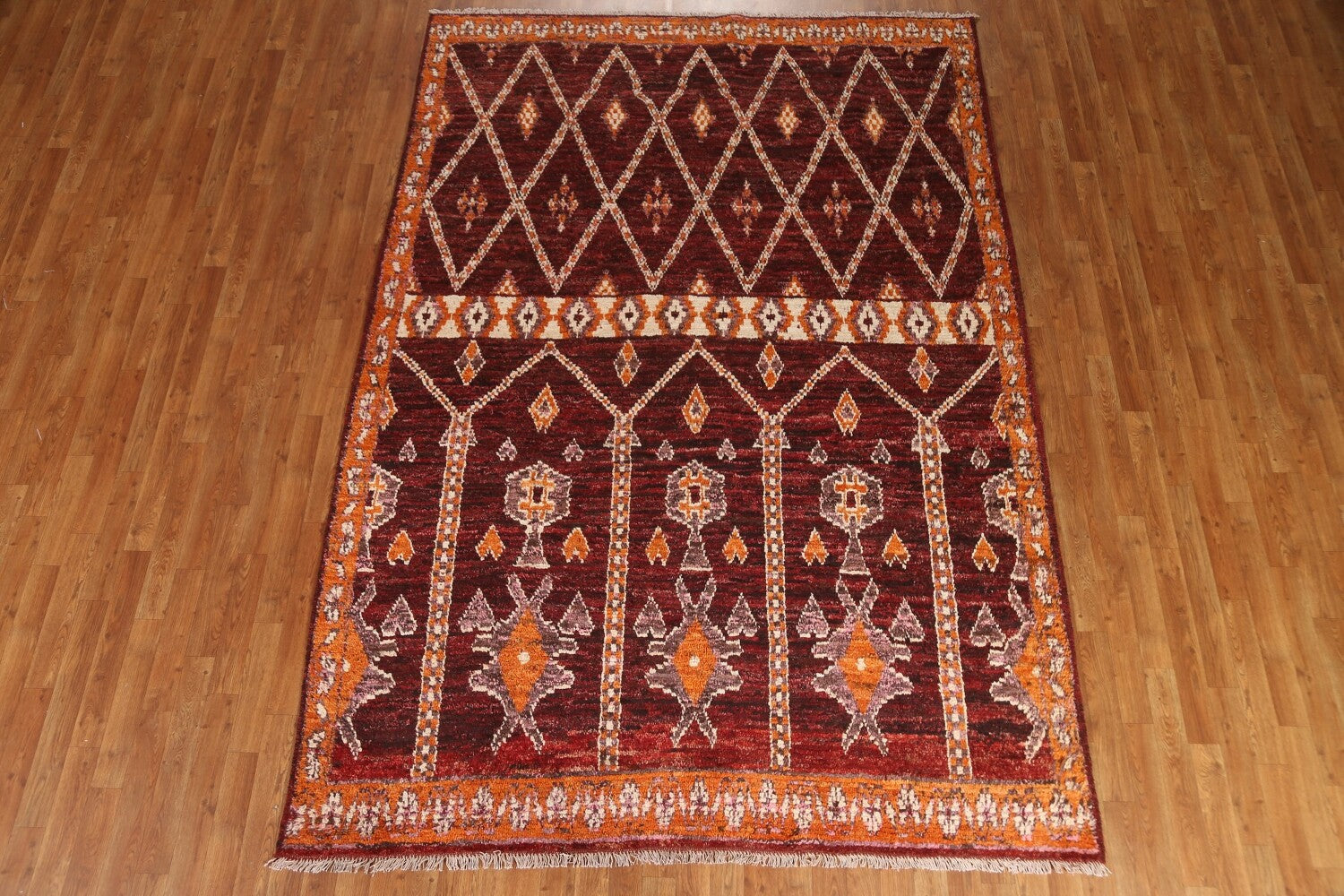 A Beautiful Genuine Pakistan Moroccan rug is Hand Knotted by skillful weavers in Pakistan with 100% Wool Material. This rug is in New, First Quality condition. dimensions are 9' 8'' X 6' 10'' in foot and 295 X 208 in centimeter. the primary color is Red.