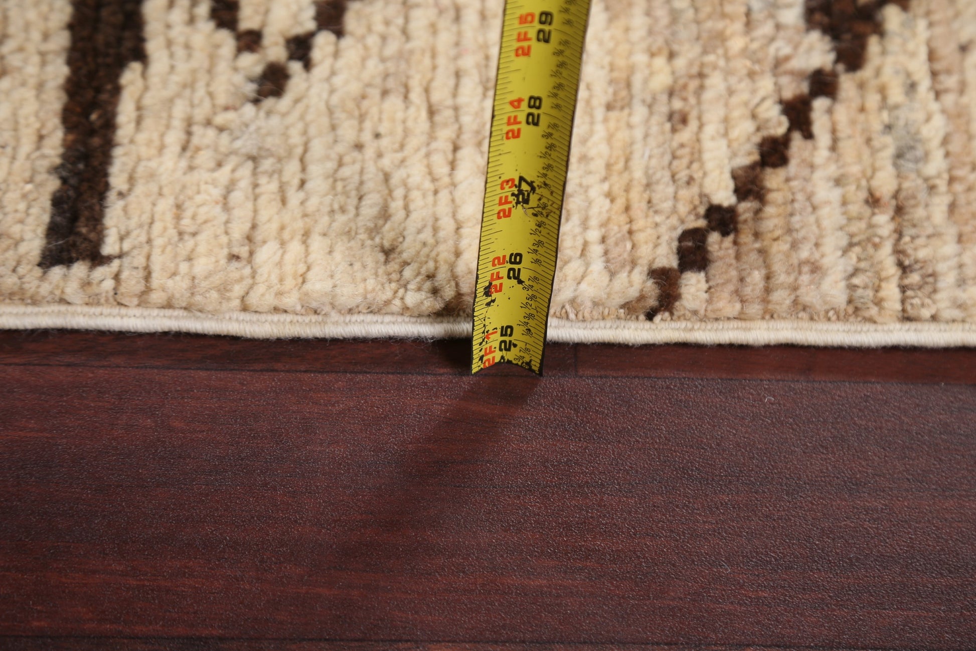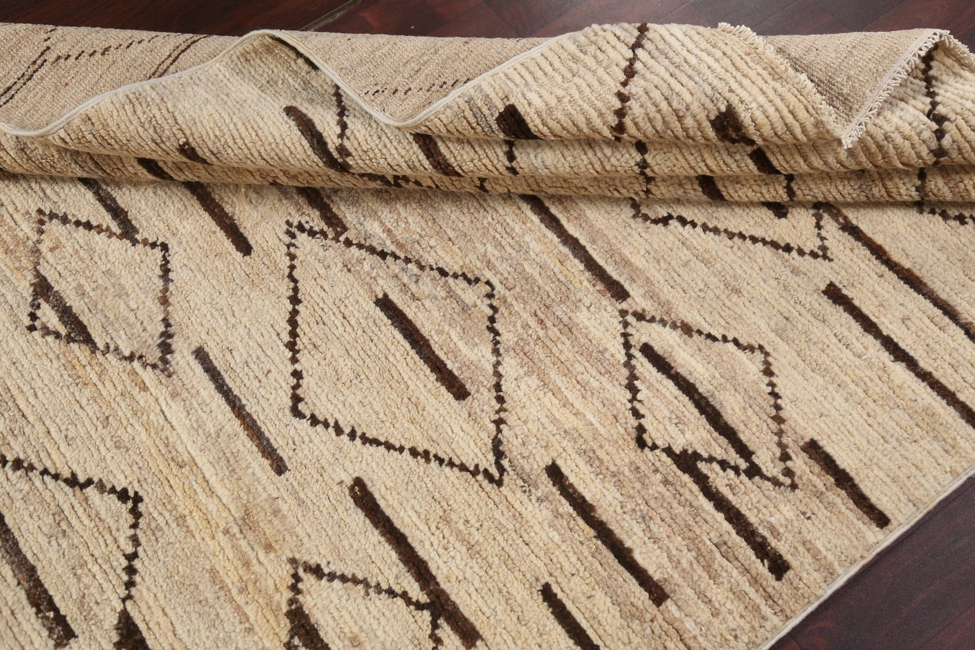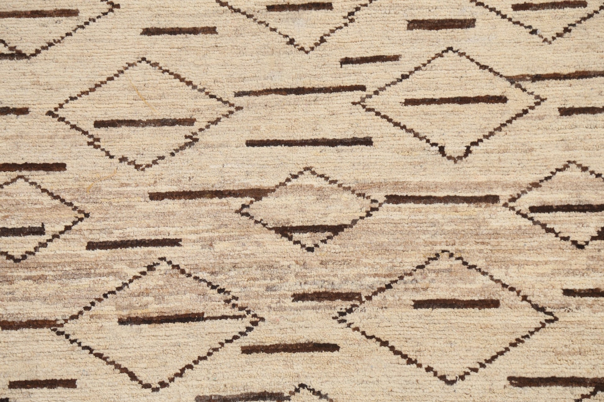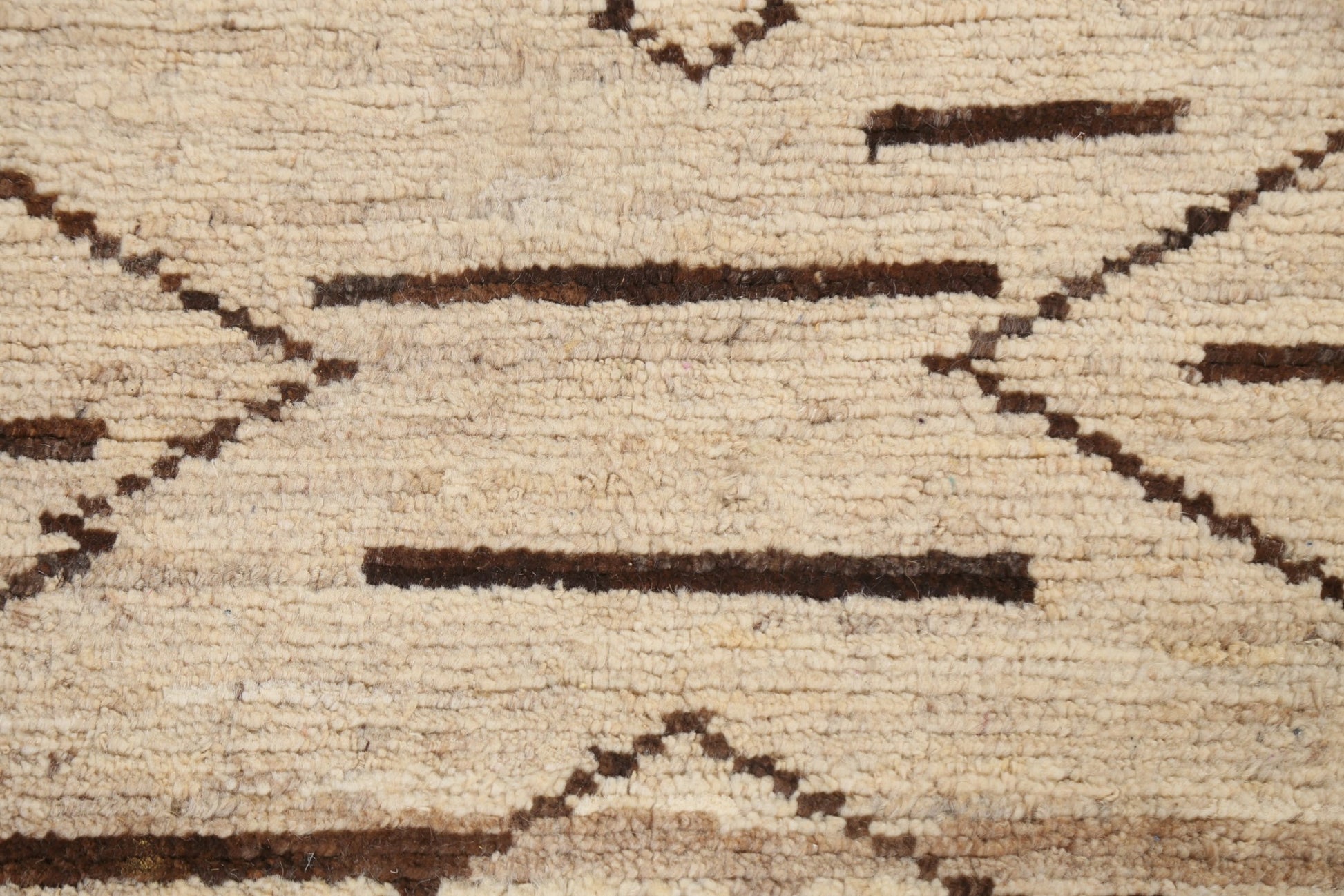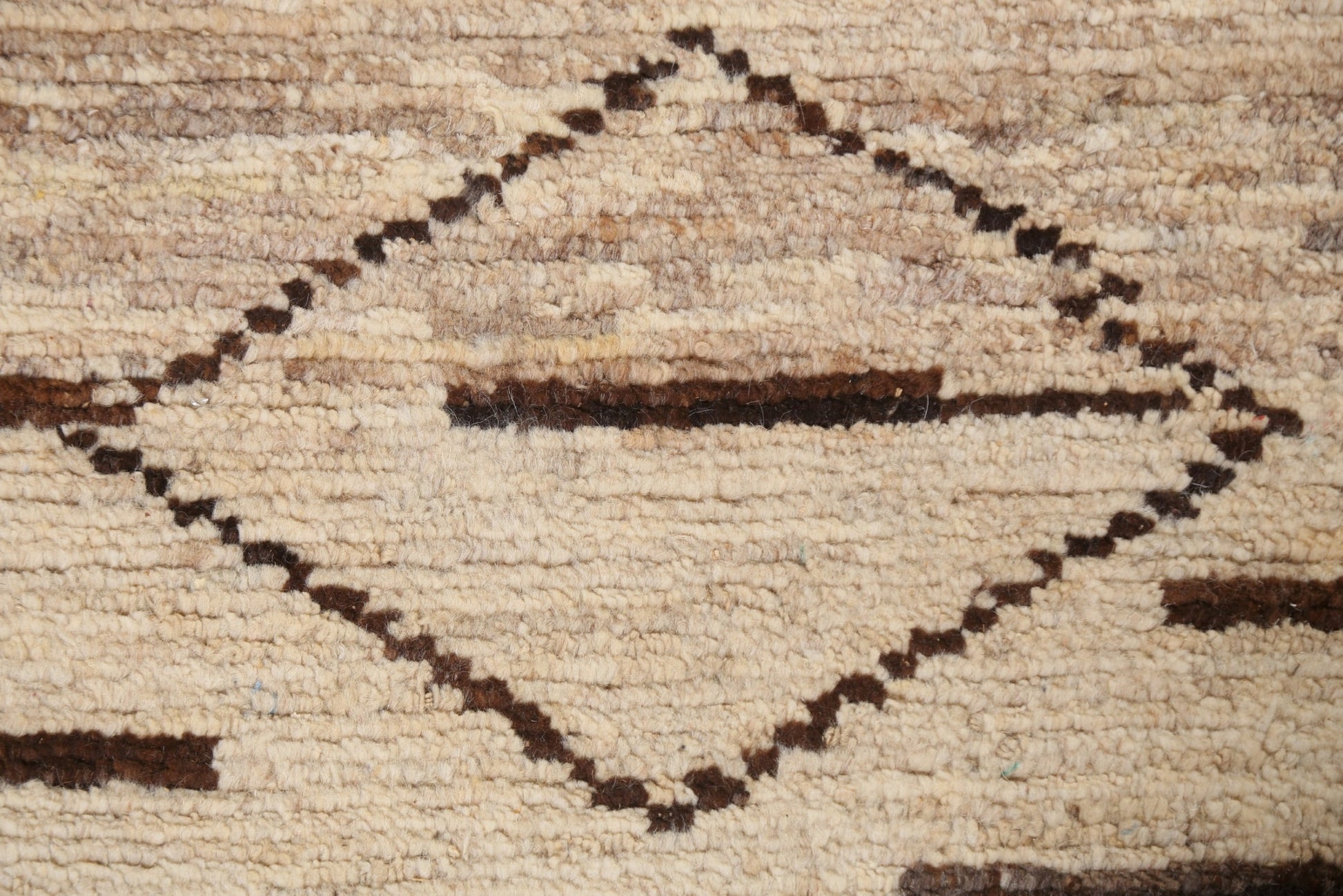 A Beautiful Genuine Pakistan Moroccan rug is Hand Knotted by skillful weavers in Pakistan with 100% Wool Material. This rug is in New, First Quality condition. dimensions are 6' 3'' X 5' 0'' in foot and 191 X 152 in centimeter. the primary color is Beige & Ivories.
