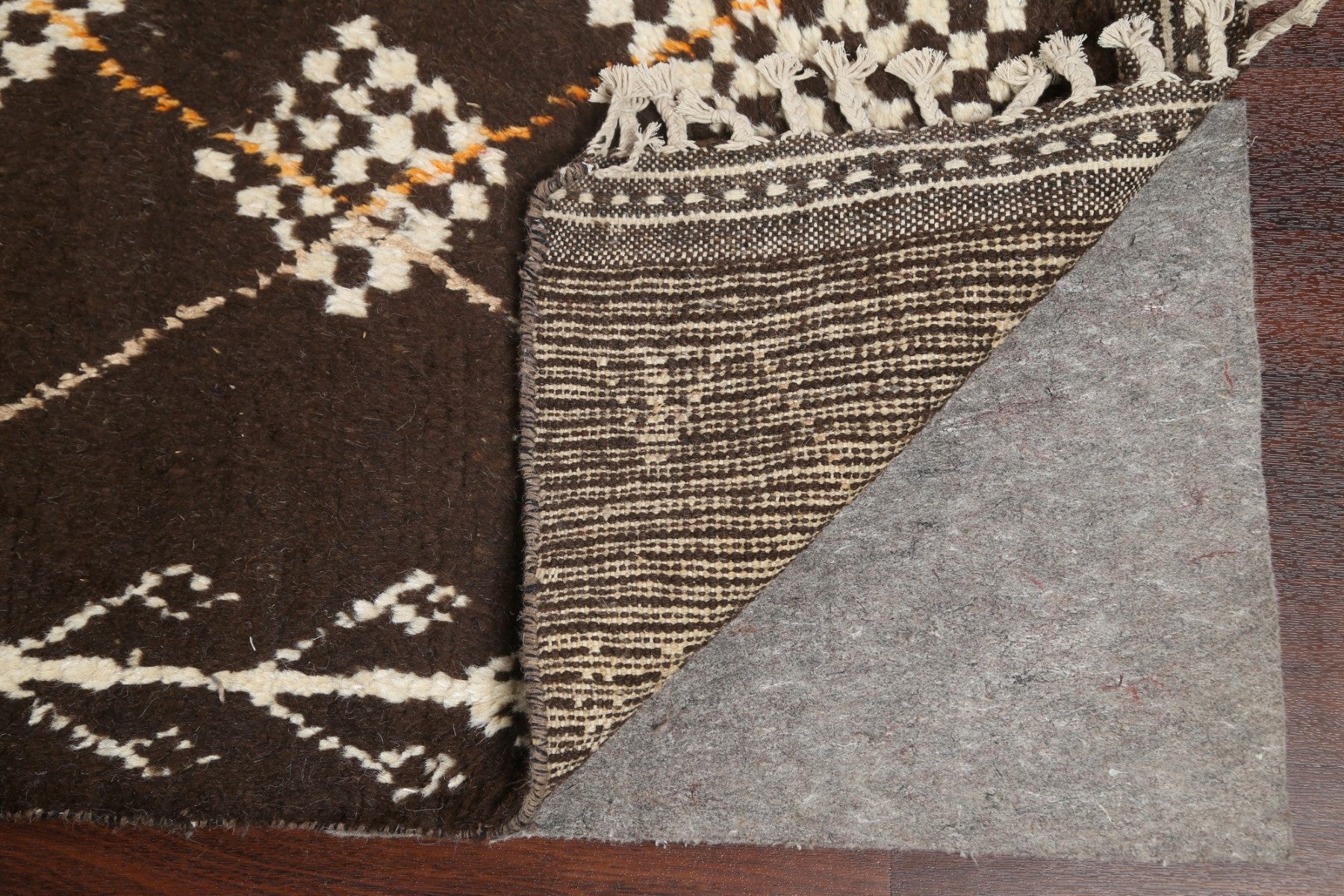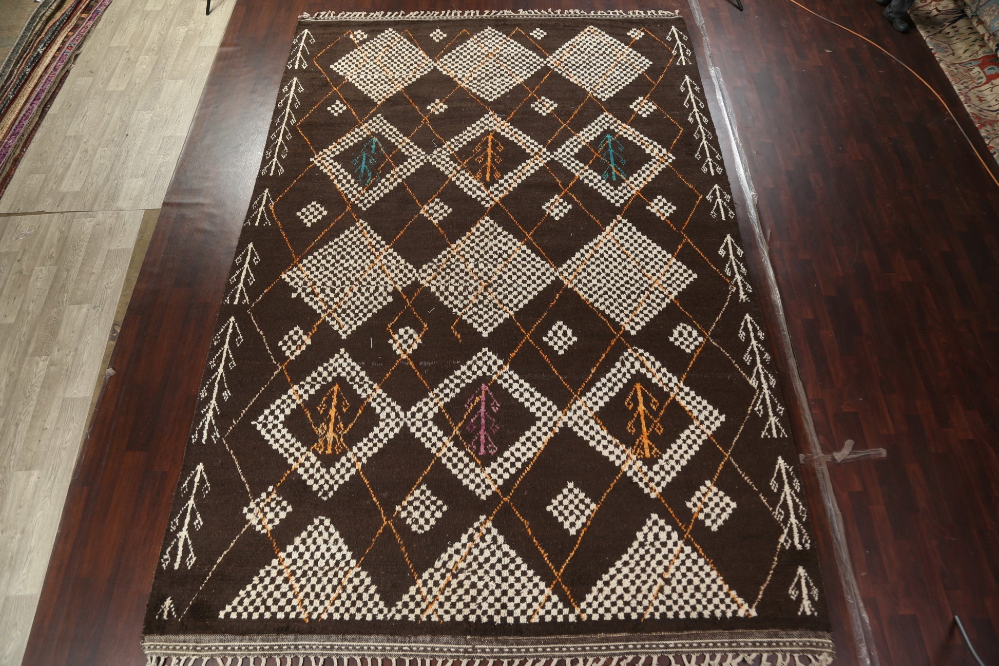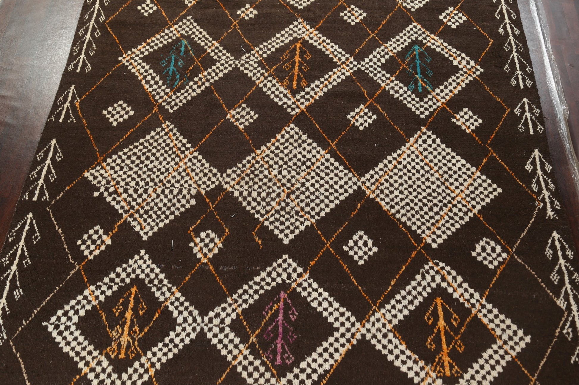 A Beautiful Genuine Morocco Moroccan rug is Hand Knotted by skillful weavers in Morocco with 100% Wool Material. This rug is in New, First Quality condition. dimensions are 14' 11'' X 9' 11'' in foot and 455 X 302 in centimeter. the primary color is Brown.