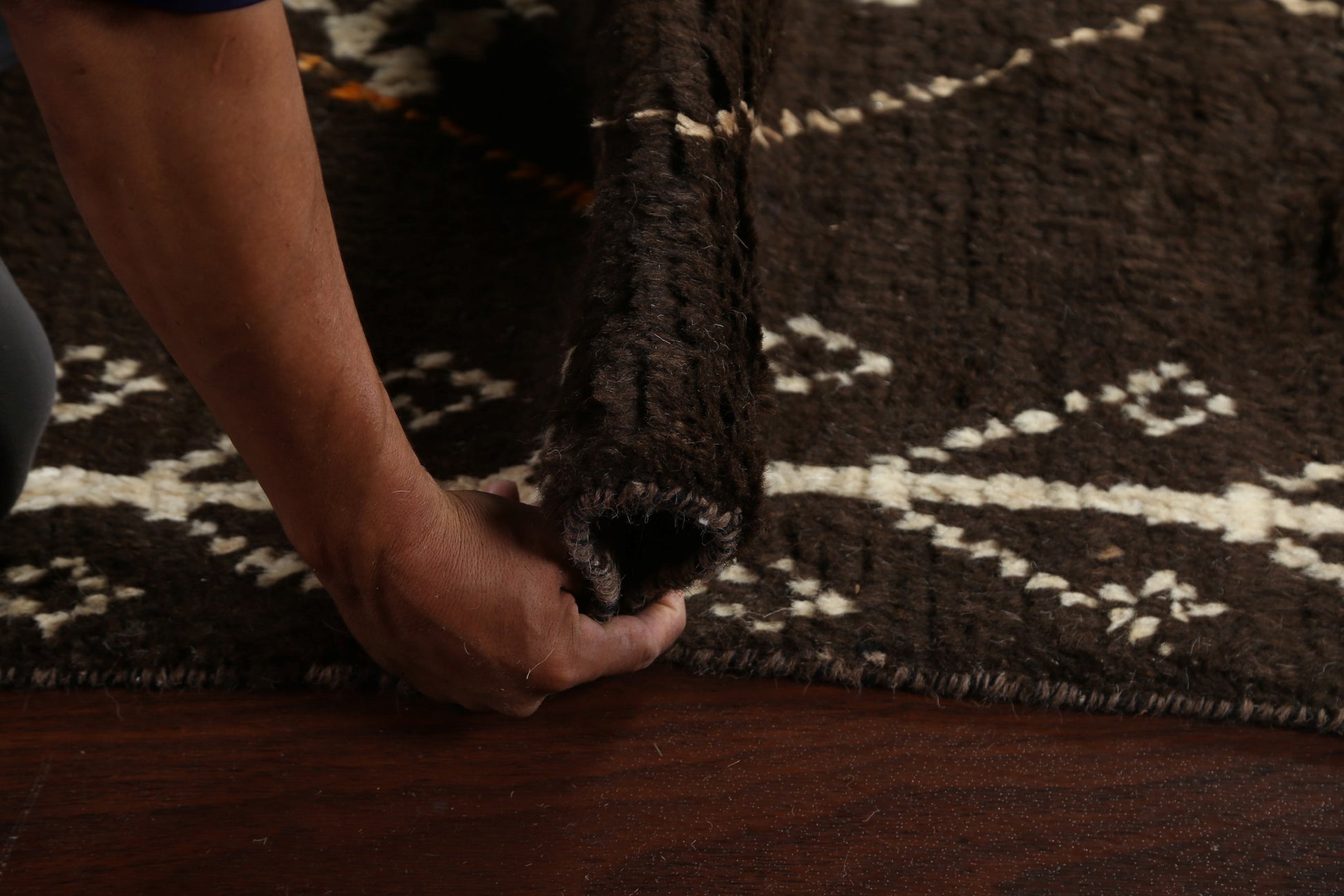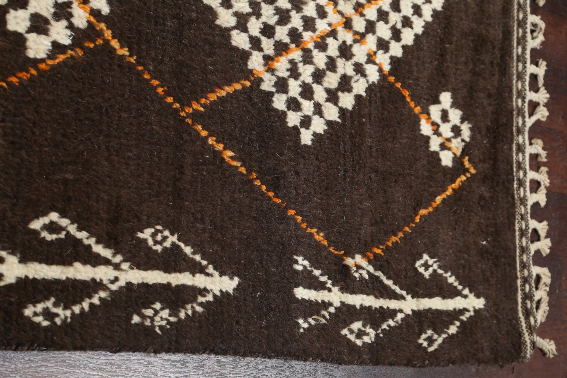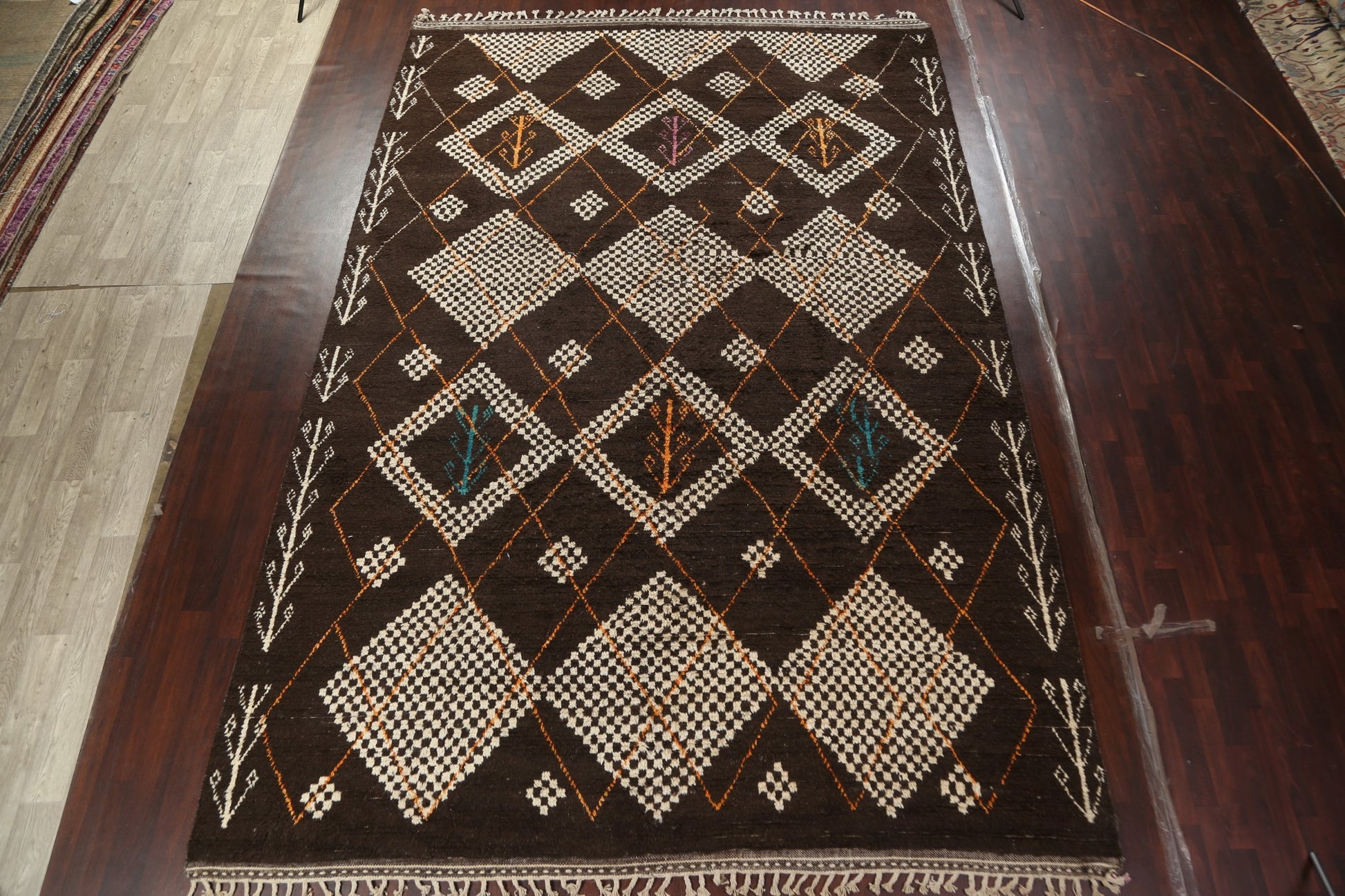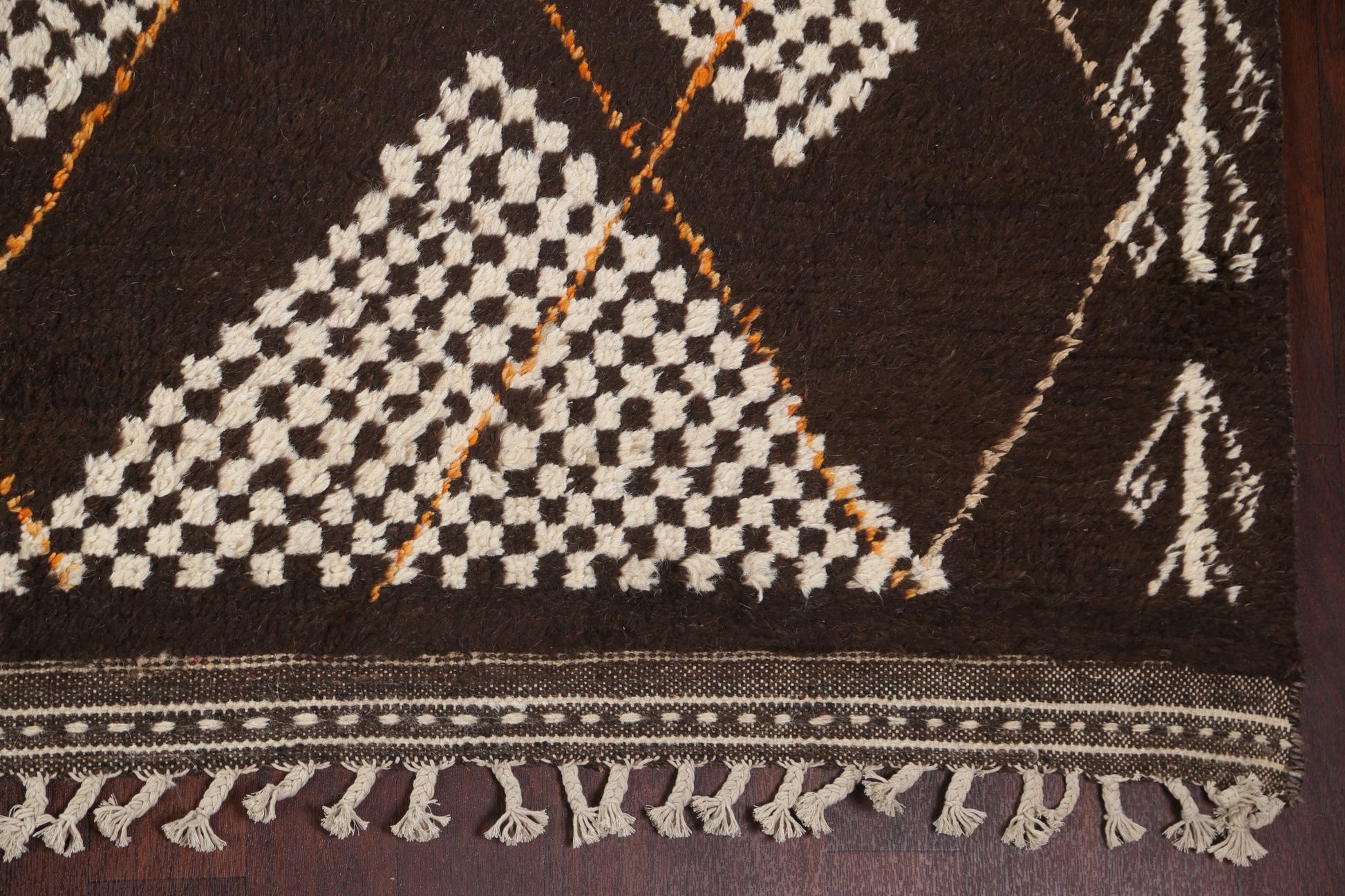 A Beautiful Genuine Morocco Moroccan rug is Hand Knotted by skillful weavers in Morocco with 100% Wool Material. This rug is in New, First Quality condition. dimensions are 14' 11'' X 9' 11'' in foot and 455 X 302 in centimeter. the primary color is Brown.