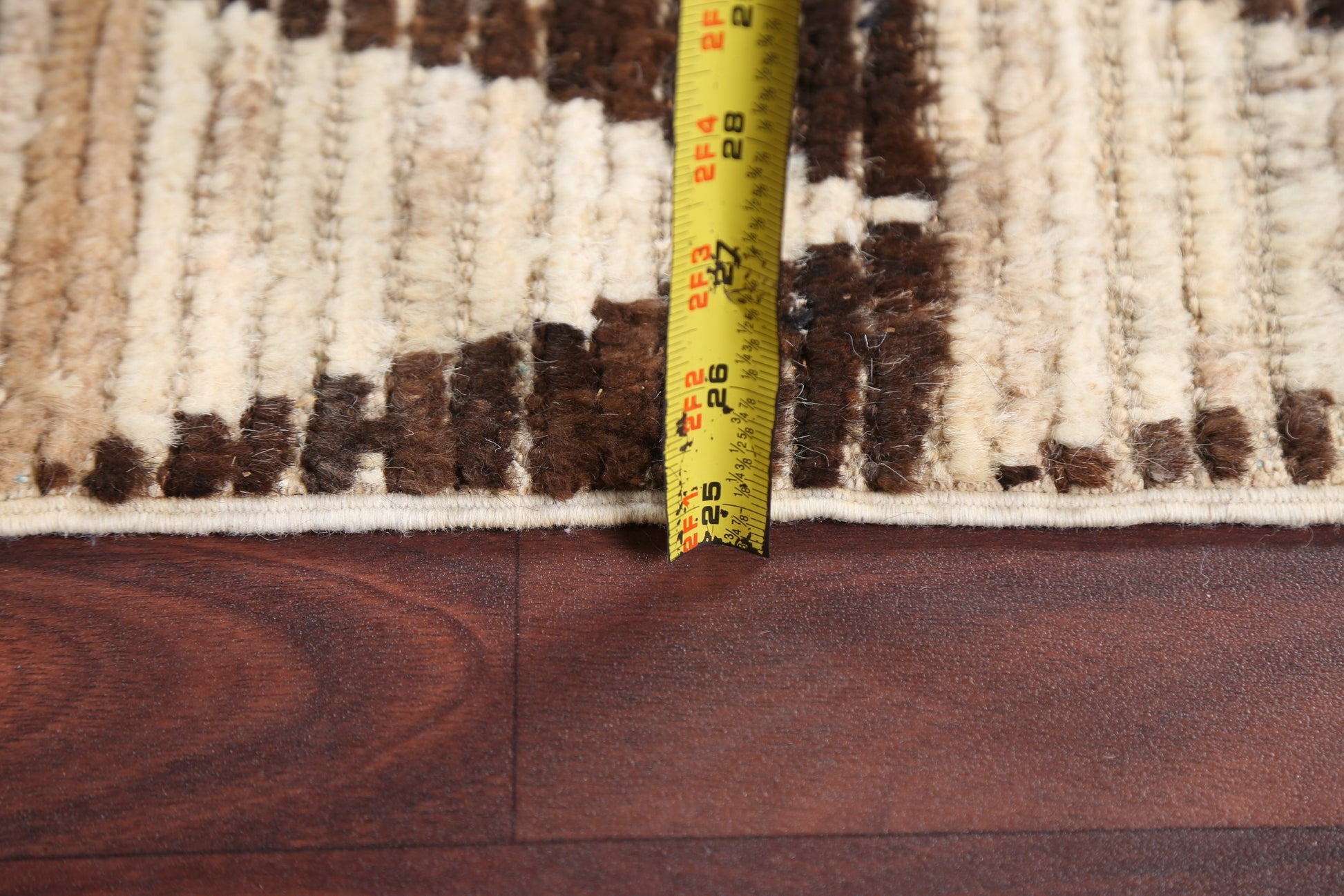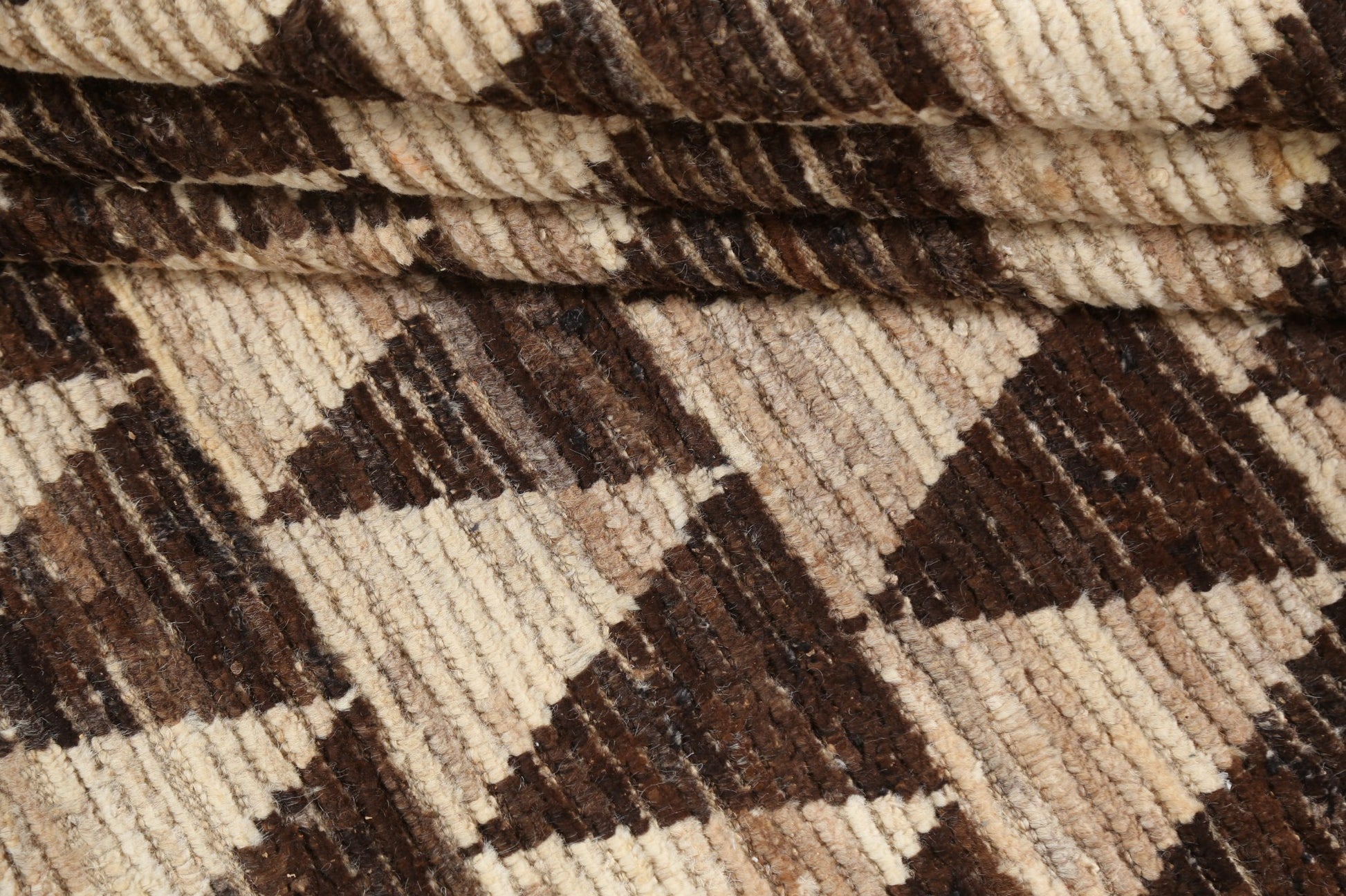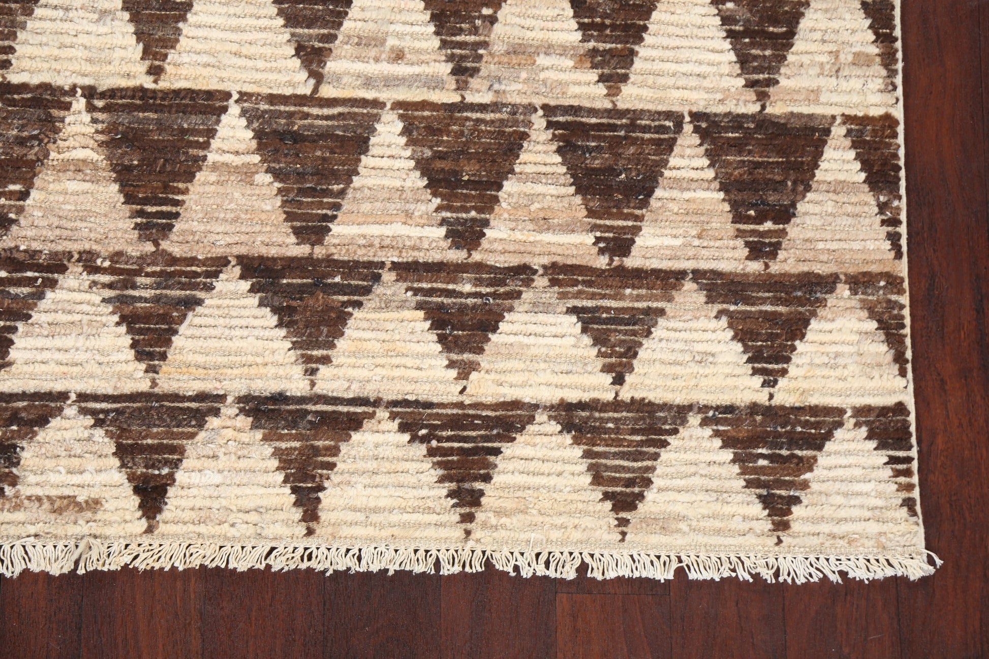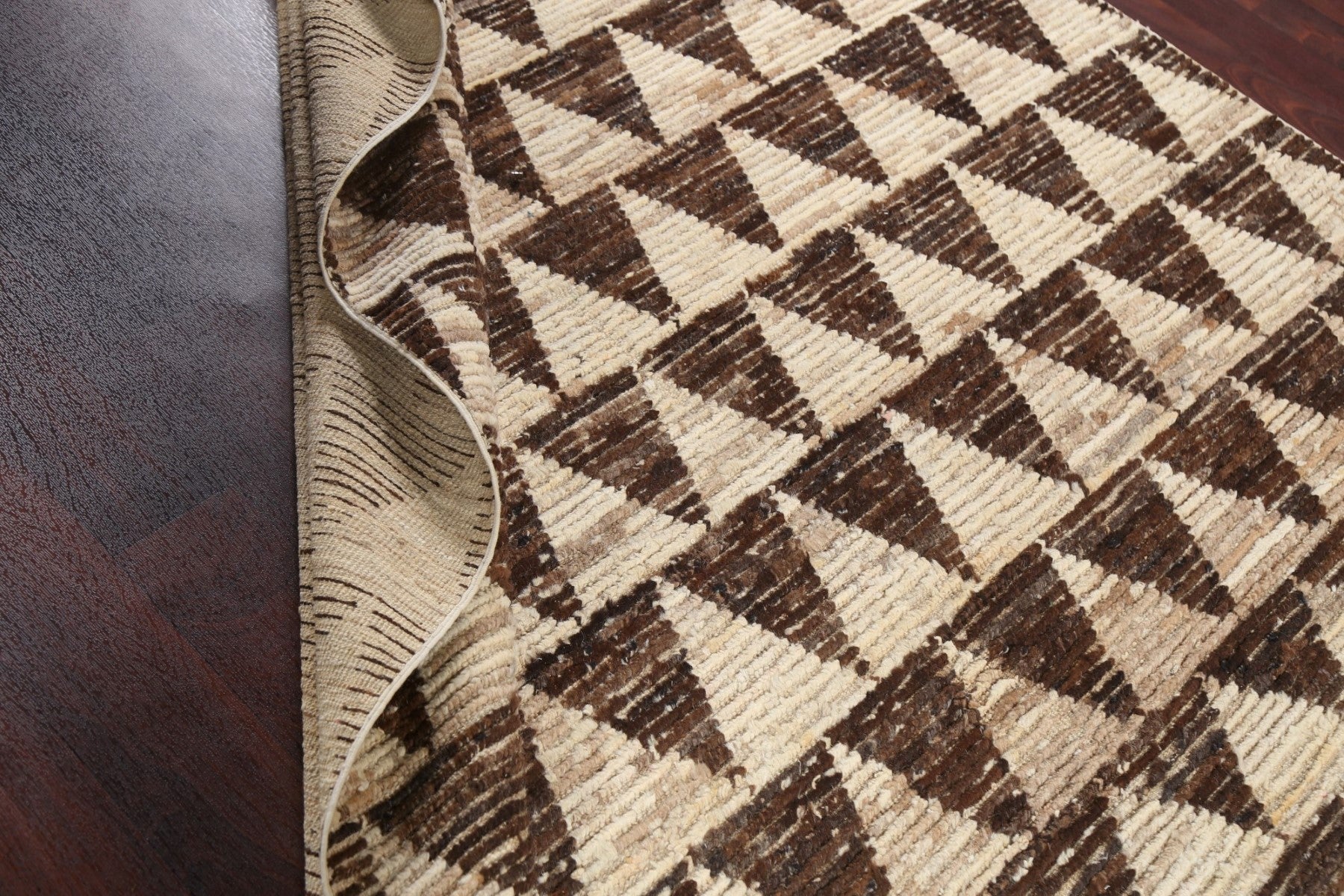 A Beautiful Genuine Pakistan Moroccan rug is Hand Knotted by skillful weavers in Pakistan with 100% Wool Material. This rug is in New, First Quality condition. dimensions are 9' 3'' X 6' 0'' in foot and 282 X 183 in centimeter. the primary color is Brown.