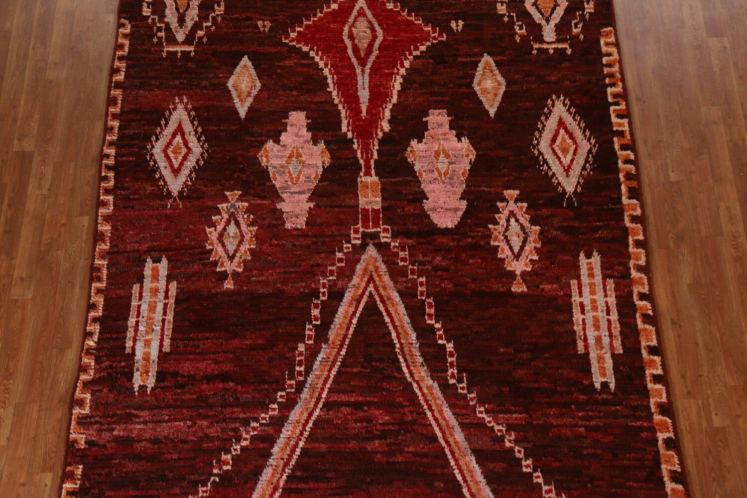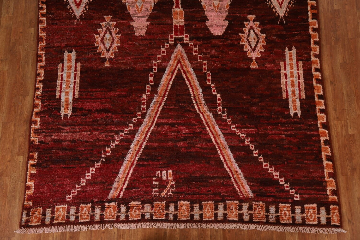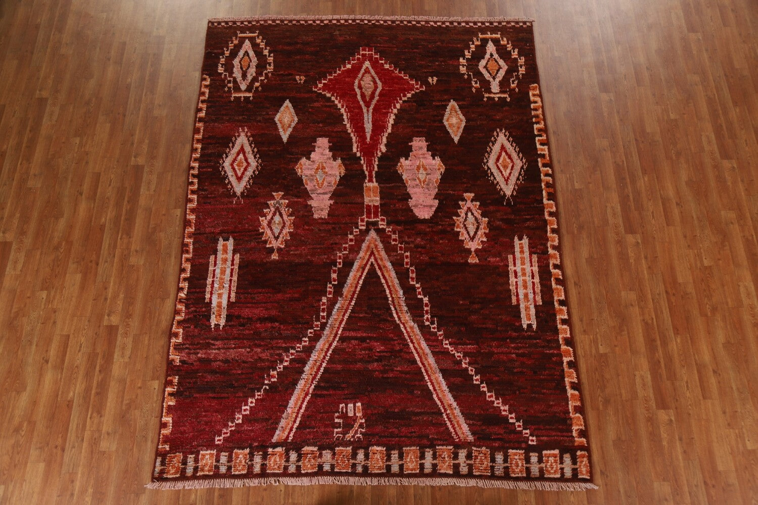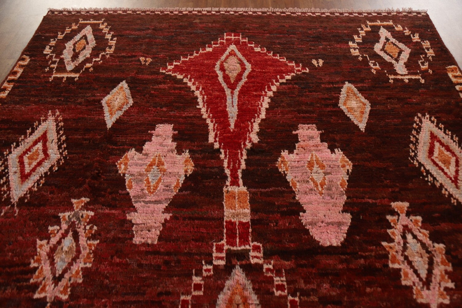 A Beautiful Genuine Pakistan Moroccan rug is Hand Knotted by skillful weavers in Pakistan with 100% Wool Material. This rug is in New, First Quality condition. dimensions are 9' 7'' X 7' 0'' in foot and 292 X 213 in centimeter. the primary color is Red.