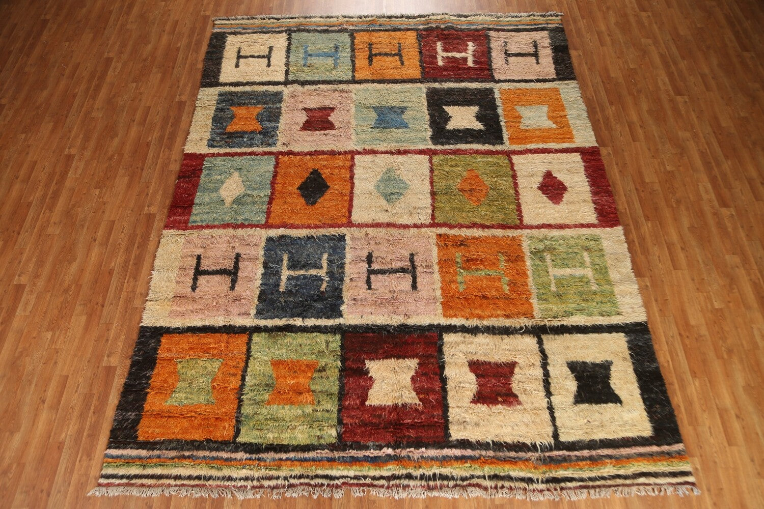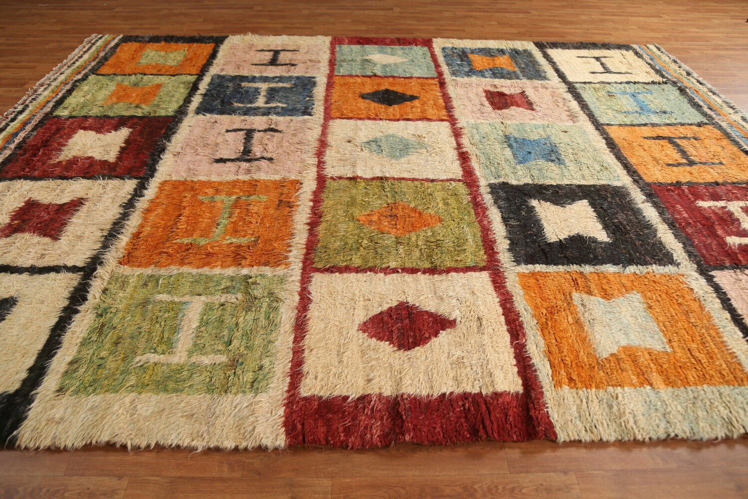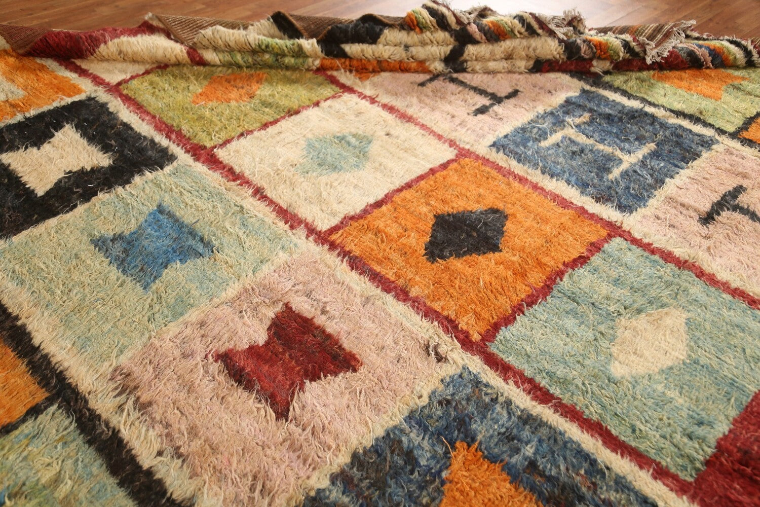 A Beautiful Genuine Pakistan Moroccan rug is Hand Knotted by skillful weavers in Pakistan with 100% Wool Material. This rug is in condition. dimensions are 11' 8'' X 9' 0'' in foot and 356 X 274 in centimeter. the primary color is Multi-Colored.