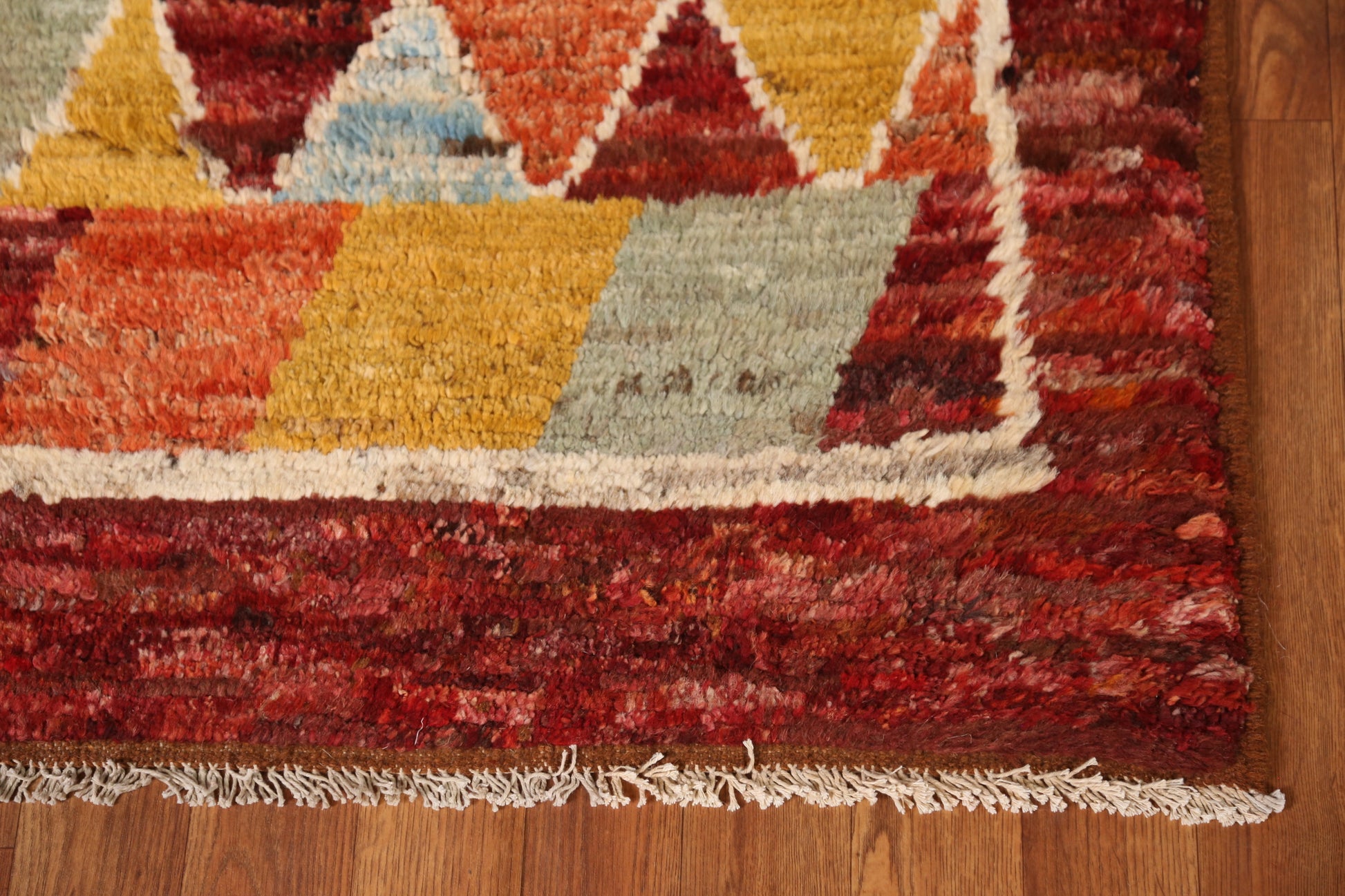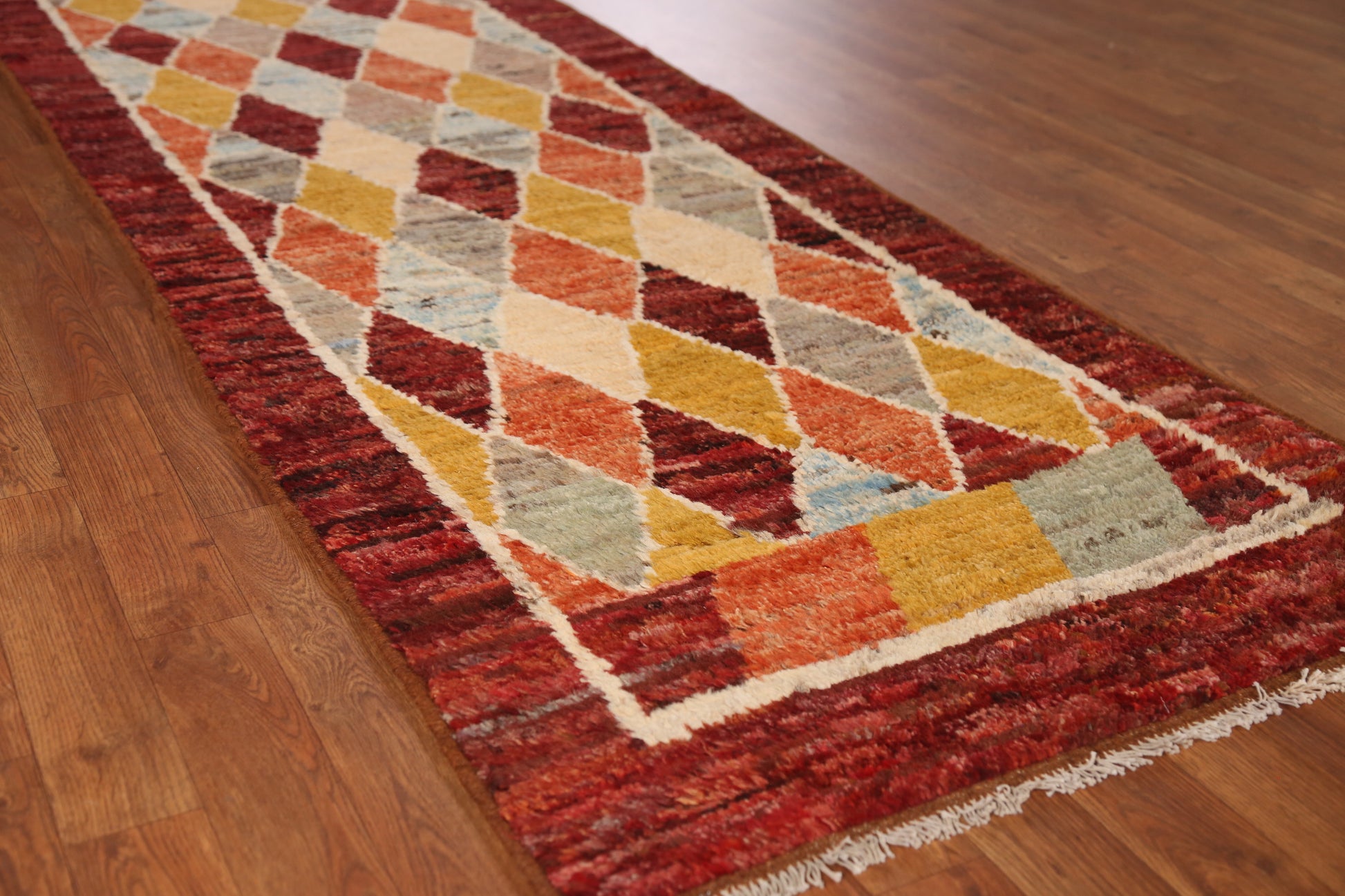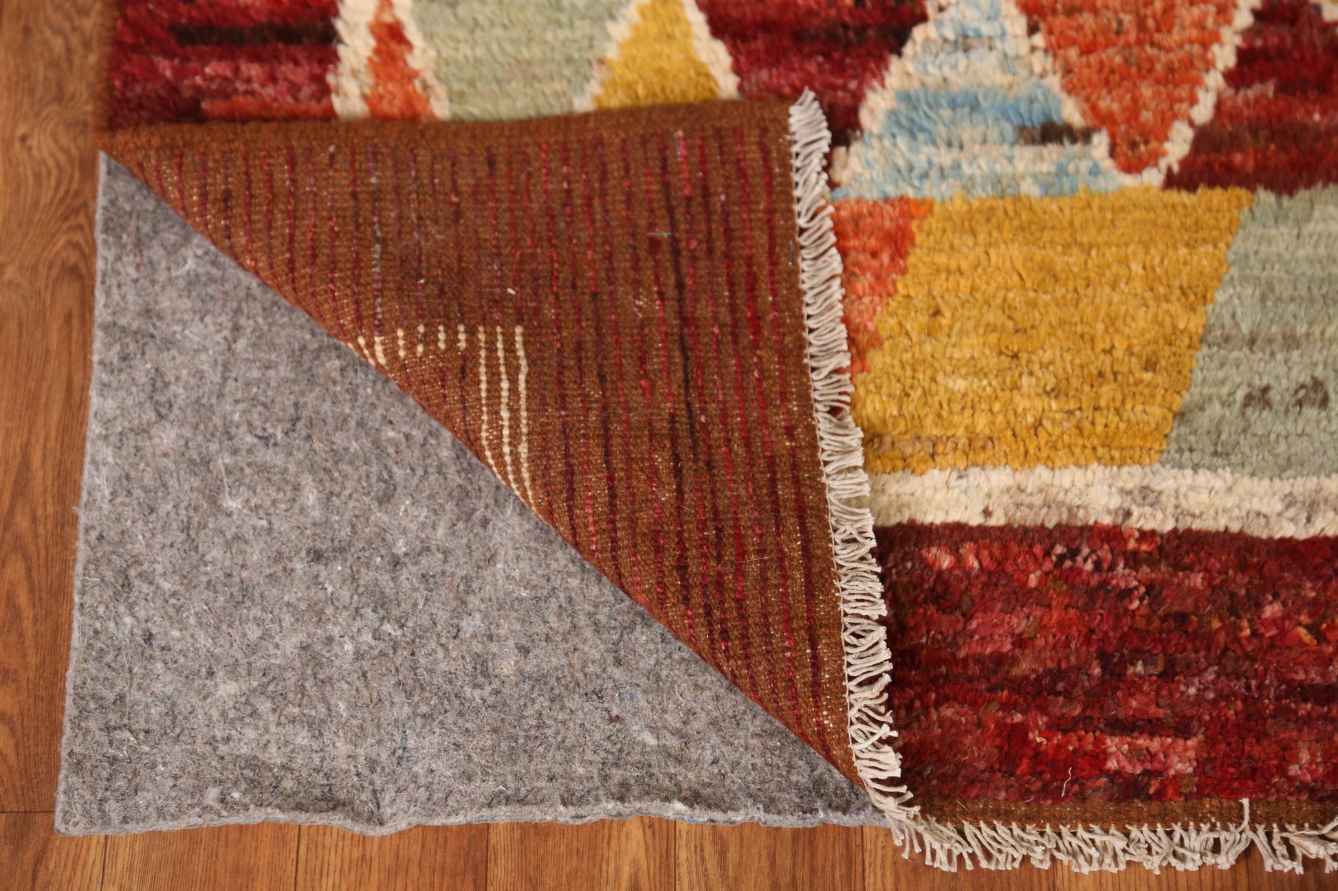 A Beautiful Genuine Pakistan Moroccan rug is Hand Knotted by skillful weavers in Pakistan with 100% Wool Material. This rug is in New, First Quality condition. dimensions are 12' 7'' X 2' 11'' in foot and 384 X 89 in centimeter. the primary color is Multi-Colored.