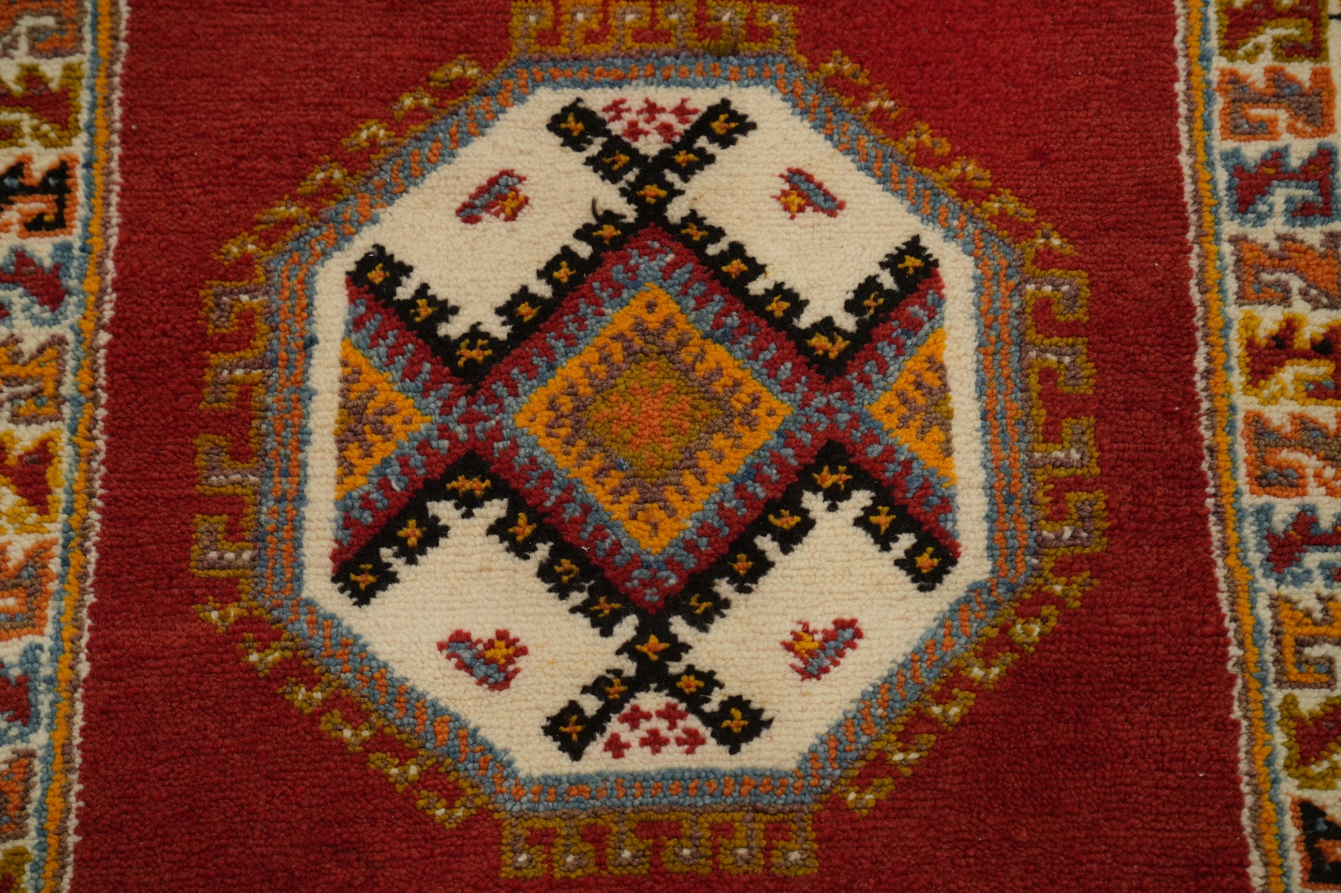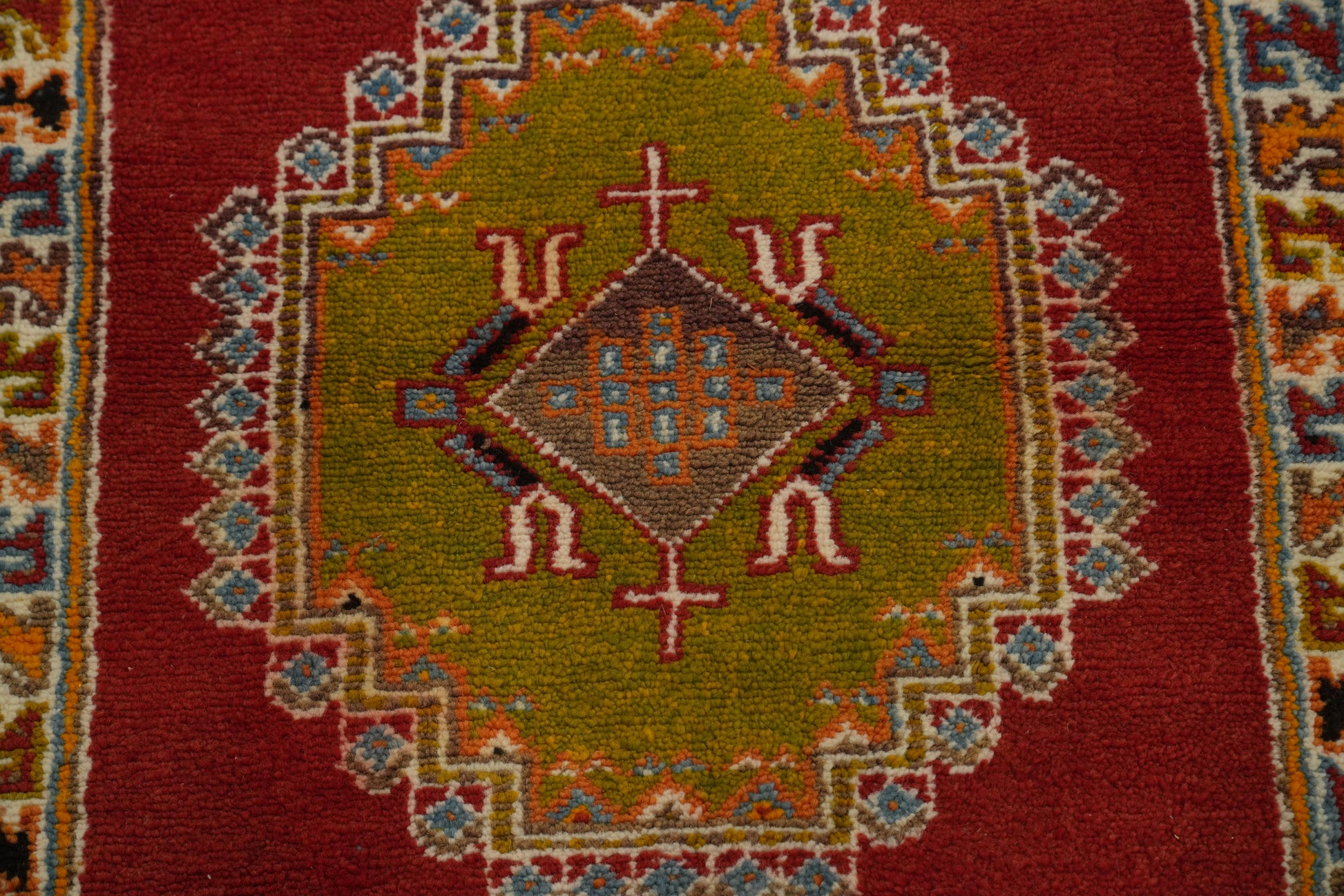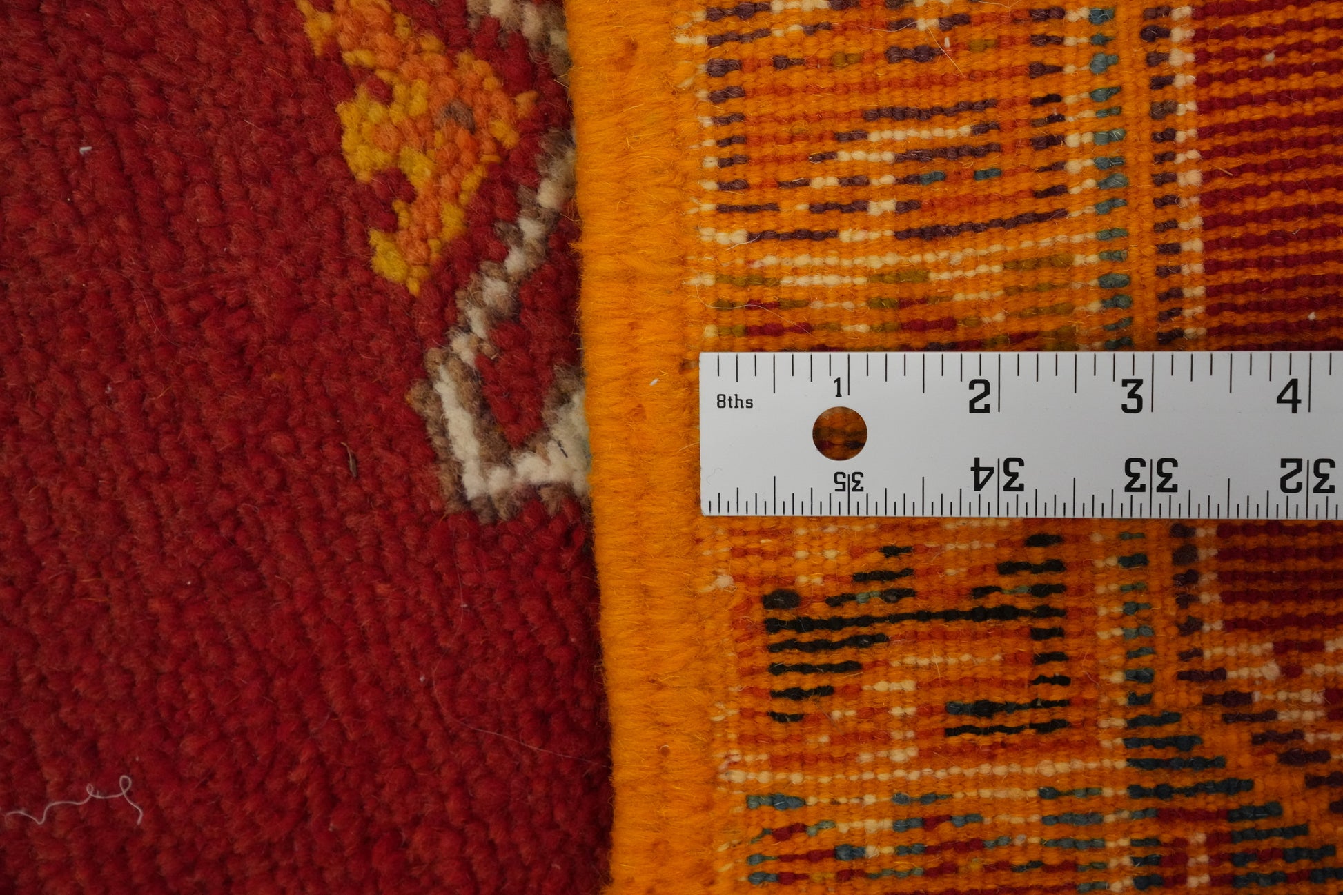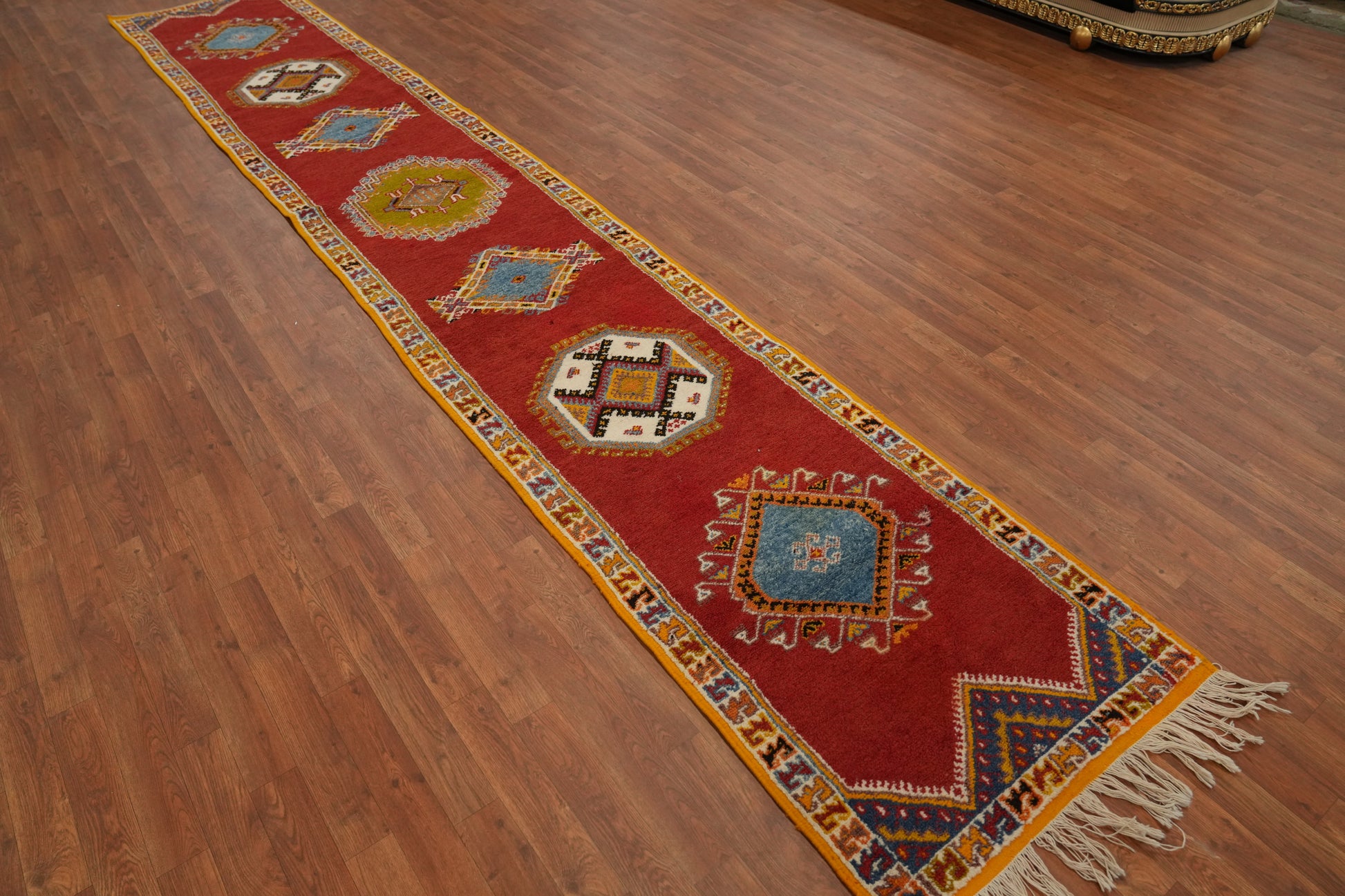 A Beautiful Genuine Morocco Moroccan rug is Hand Knotted by skillful weavers in Morocco with 100% Wool Material. This rug is in very good (small low pile) condition. dimensions are 15' 10'' X 2' 7'' in foot and 483 X 79 in centimeter. the primary color is Oranges & Rust.
