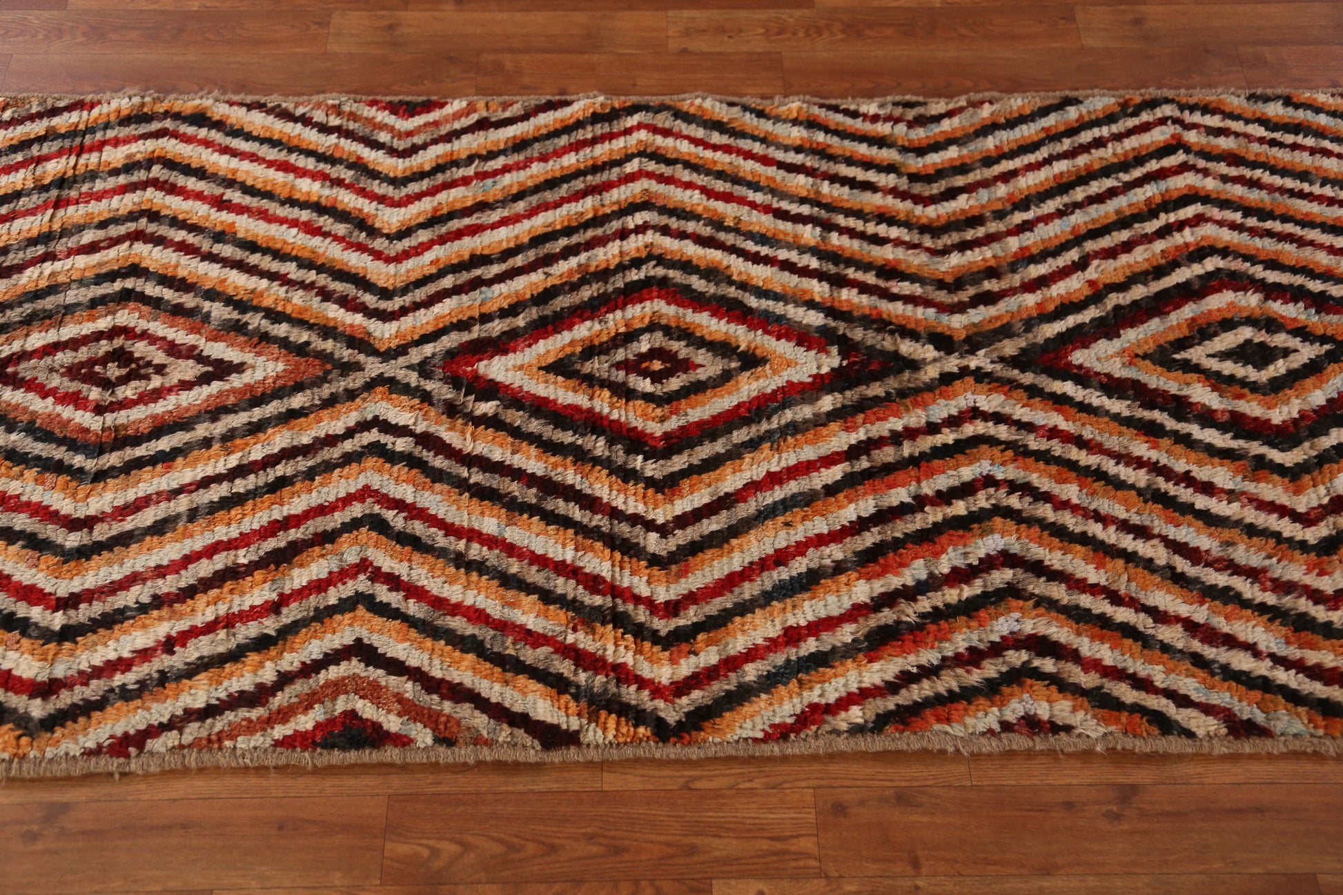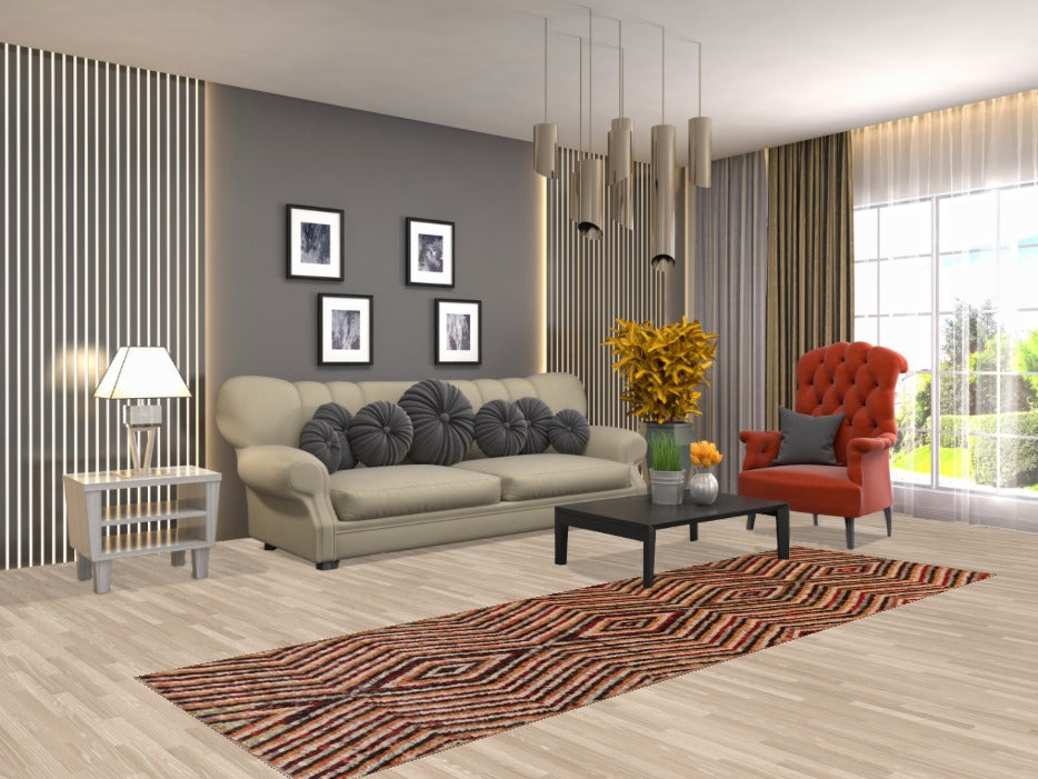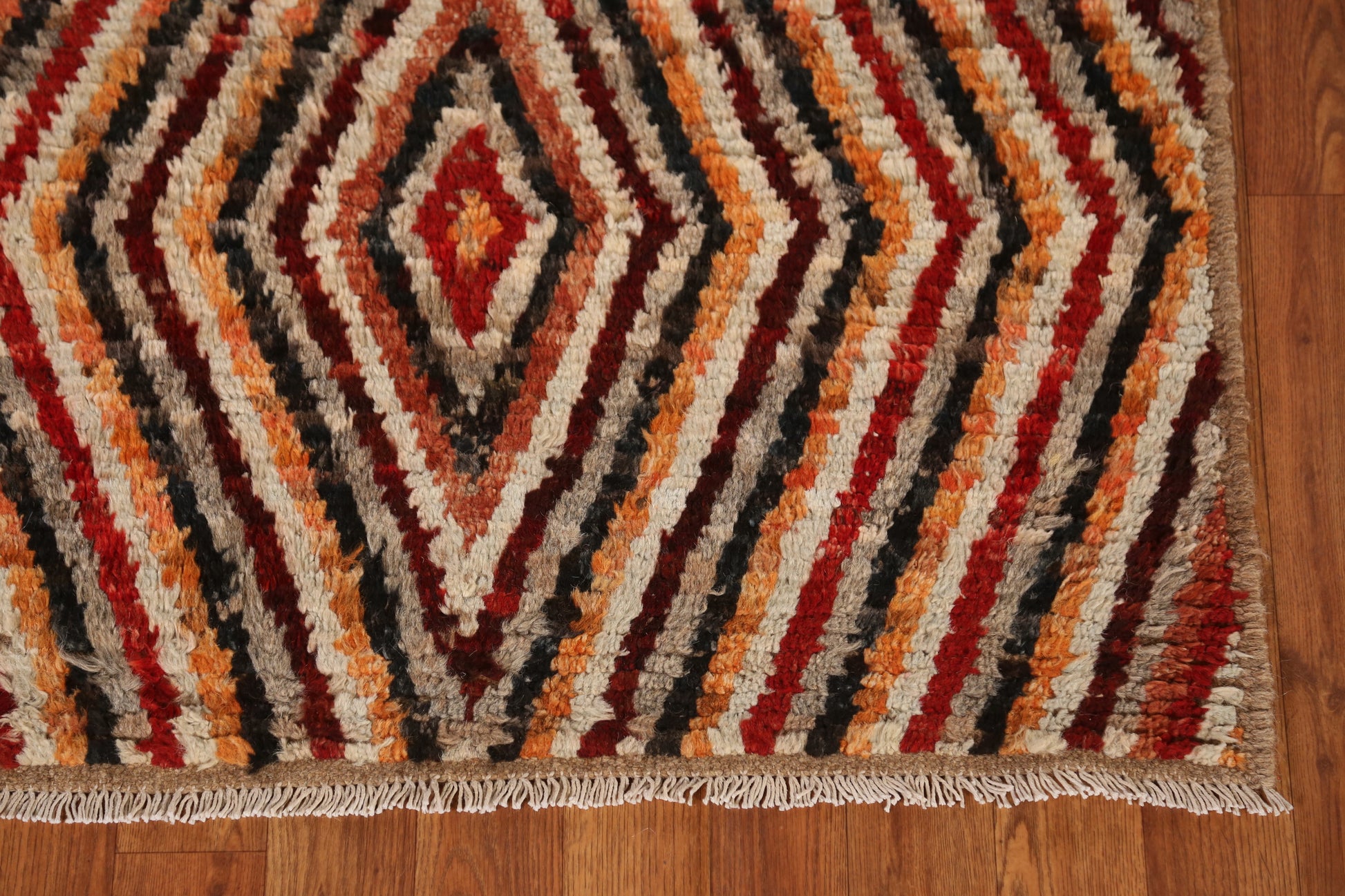A Beautiful Genuine Pakistan Moroccan rug is Hand Knotted by skillful weavers in Pakistan with 100% Wool Material. This rug is in New, First Quality condition. dimensions are 9' 5'' X 2' 10'' in foot and 287 X 86 in centimeter. the primary color is Multi-Colored.