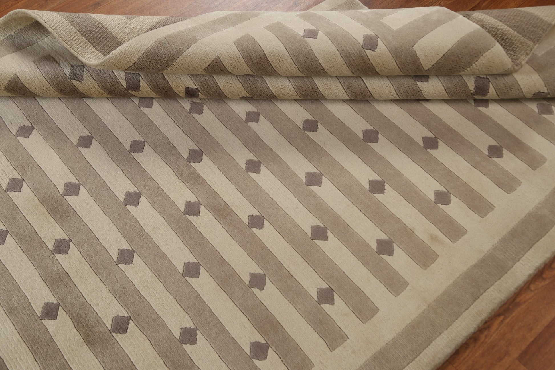 A Beautiful Genuine India Nepalese rug is Hand Knotted by skillful weavers in India with 100% Wool Material. This rug is in New, First Quality condition. dimensions are 8' 1'' X 5' 3'' in foot and 246 X 160 in centimeter. the primary color is Beige & Ivories.