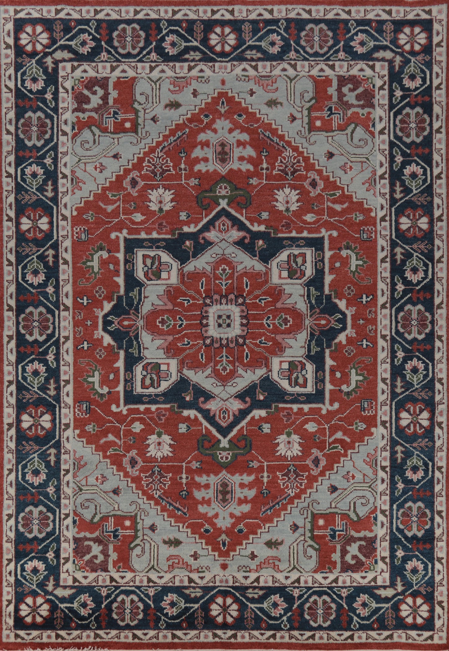 A Beautiful Genuine India Oushak rug is Hand Knotted by skillful weavers in India with 100% Wool Material. This rug is in New, First Quality condition. dimensions are 12' 0'' X 8' 10'' in foot and 366 X 269 in centimeter. the primary color is Oranges & Rust.