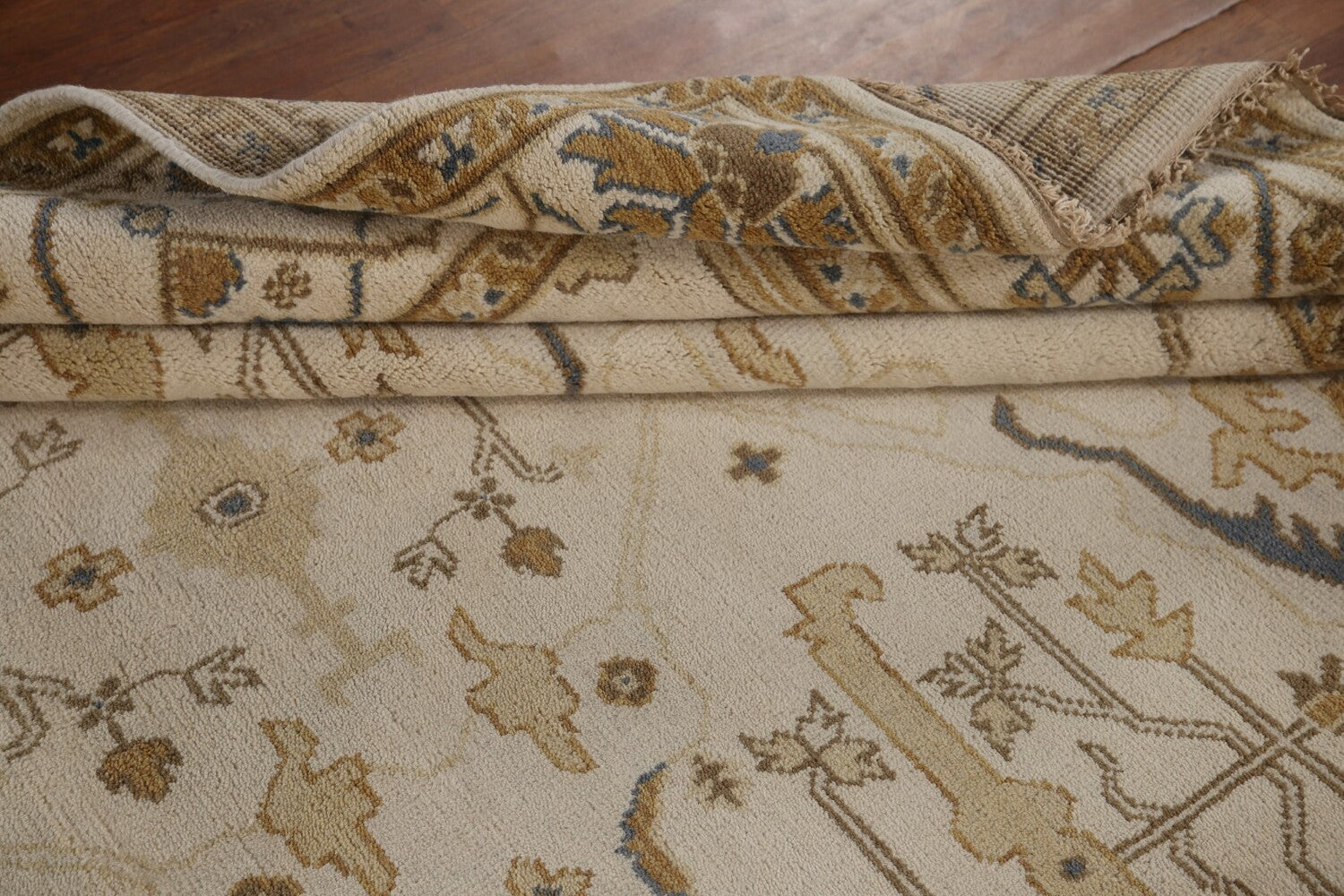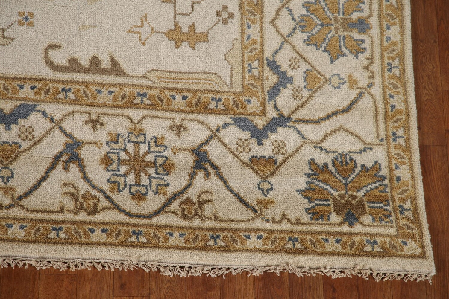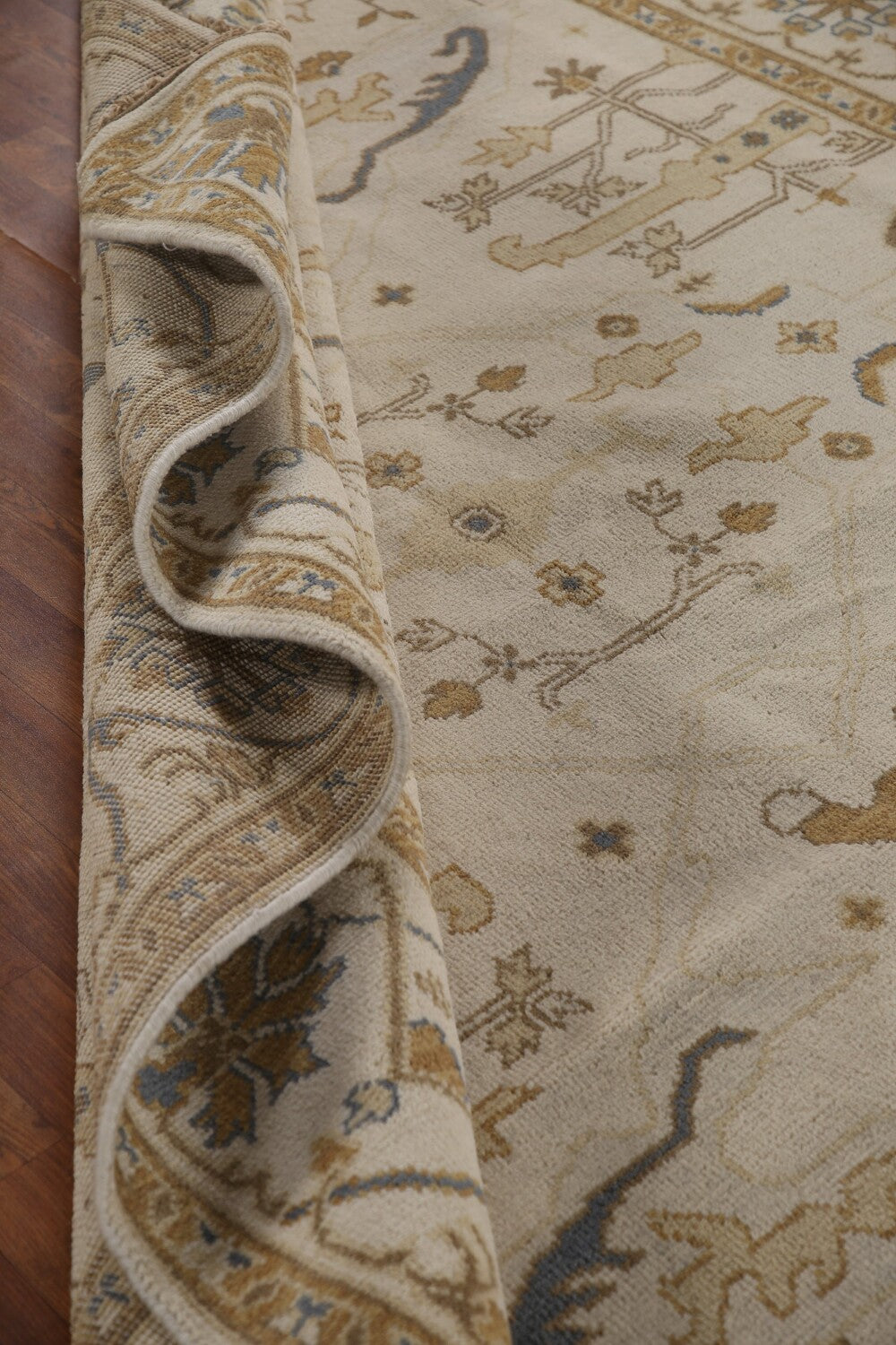 A Beautiful Genuine India Oushak rug is Hand Knotted by skillful weavers in India with 100% Wool Material. This rug is in New, First Quality condition. dimensions are 10' 0'' X 8' 0'' in foot and 305 X 244 in centimeter. the primary color is Beige & Ivories.