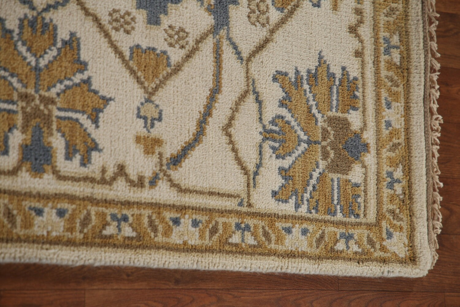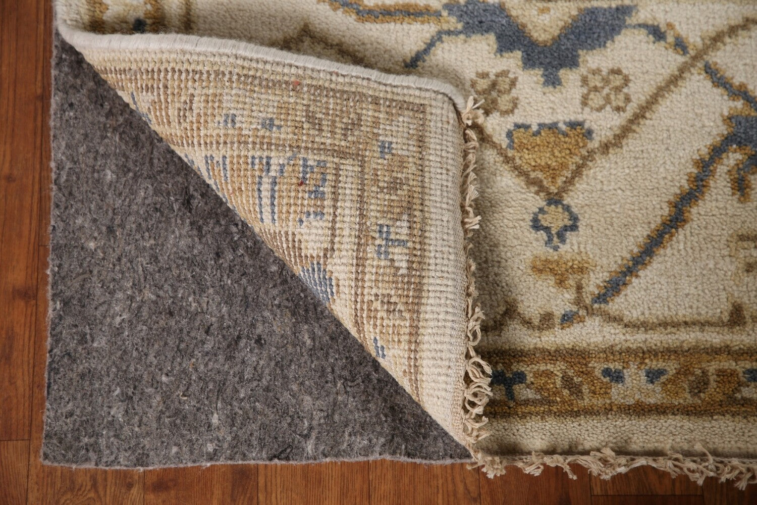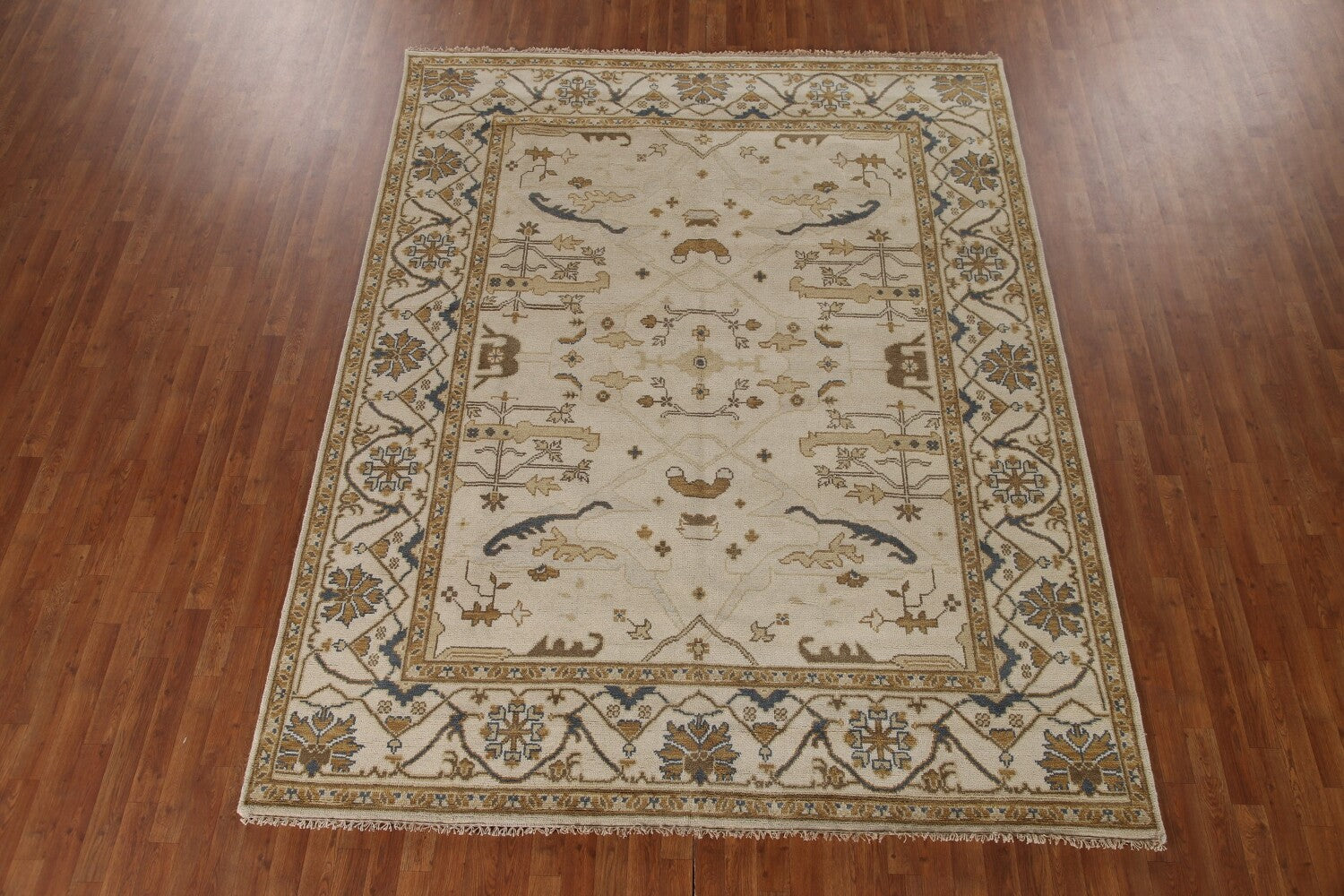 A Beautiful Genuine India Oushak rug is Hand Knotted by skillful weavers in India with 100% Wool Material. This rug is in New, First Quality condition. dimensions are 10' 0'' X 8' 0'' in foot and 305 X 244 in centimeter. the primary color is Beige & Ivories.