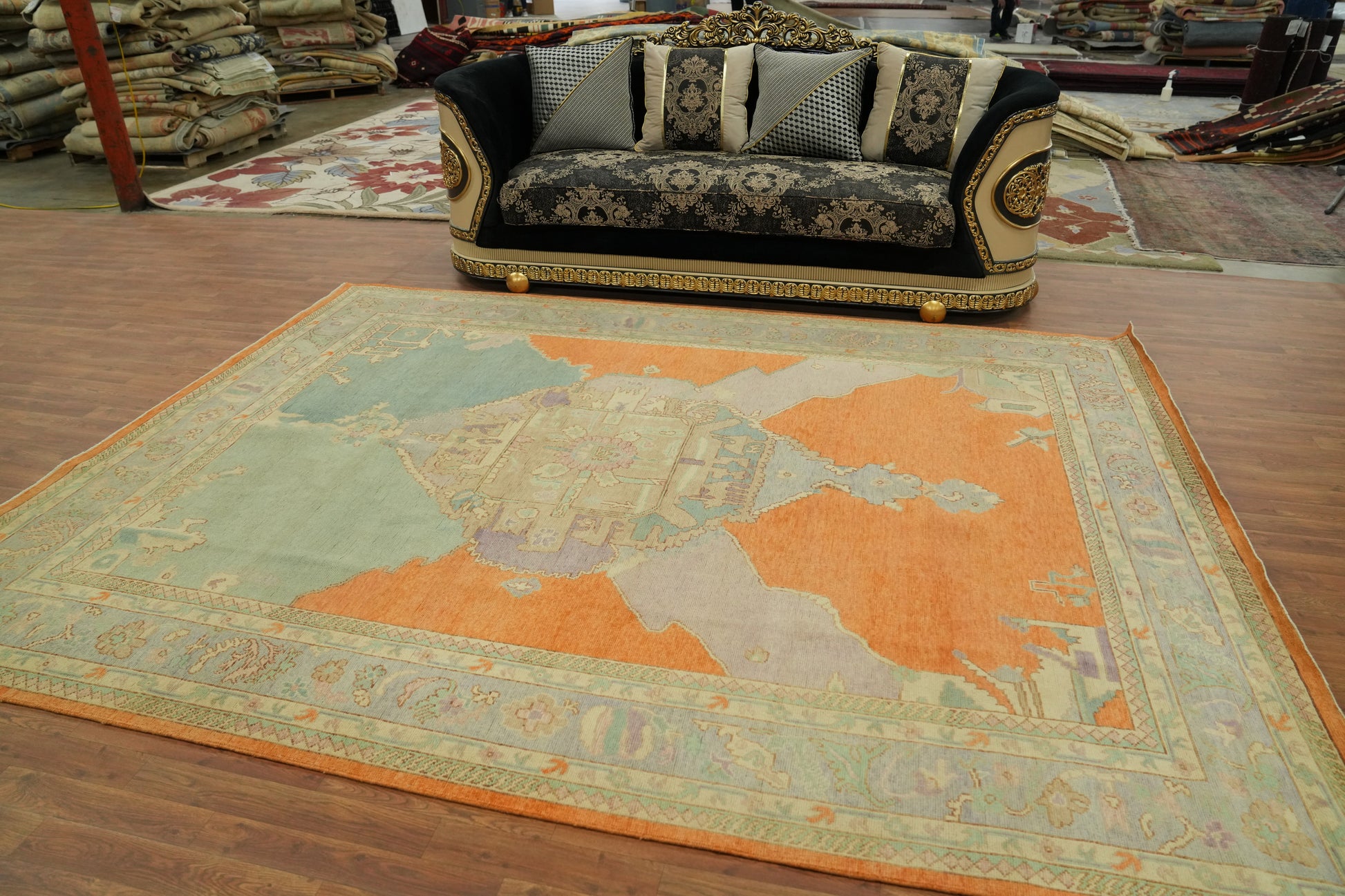 A Beautiful Genuine Turkey Oushak rug is Hand Knotted by skillful weavers in Turkey with 100% Wool Material. This rug is in New, First Quality condition. dimensions are 10' 8'' X 8' 1'' in foot and 325 X 246 in centimeter. the primary color is Multi-Colored.