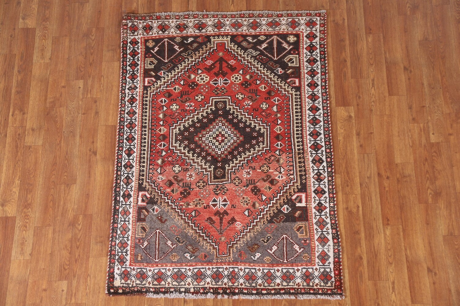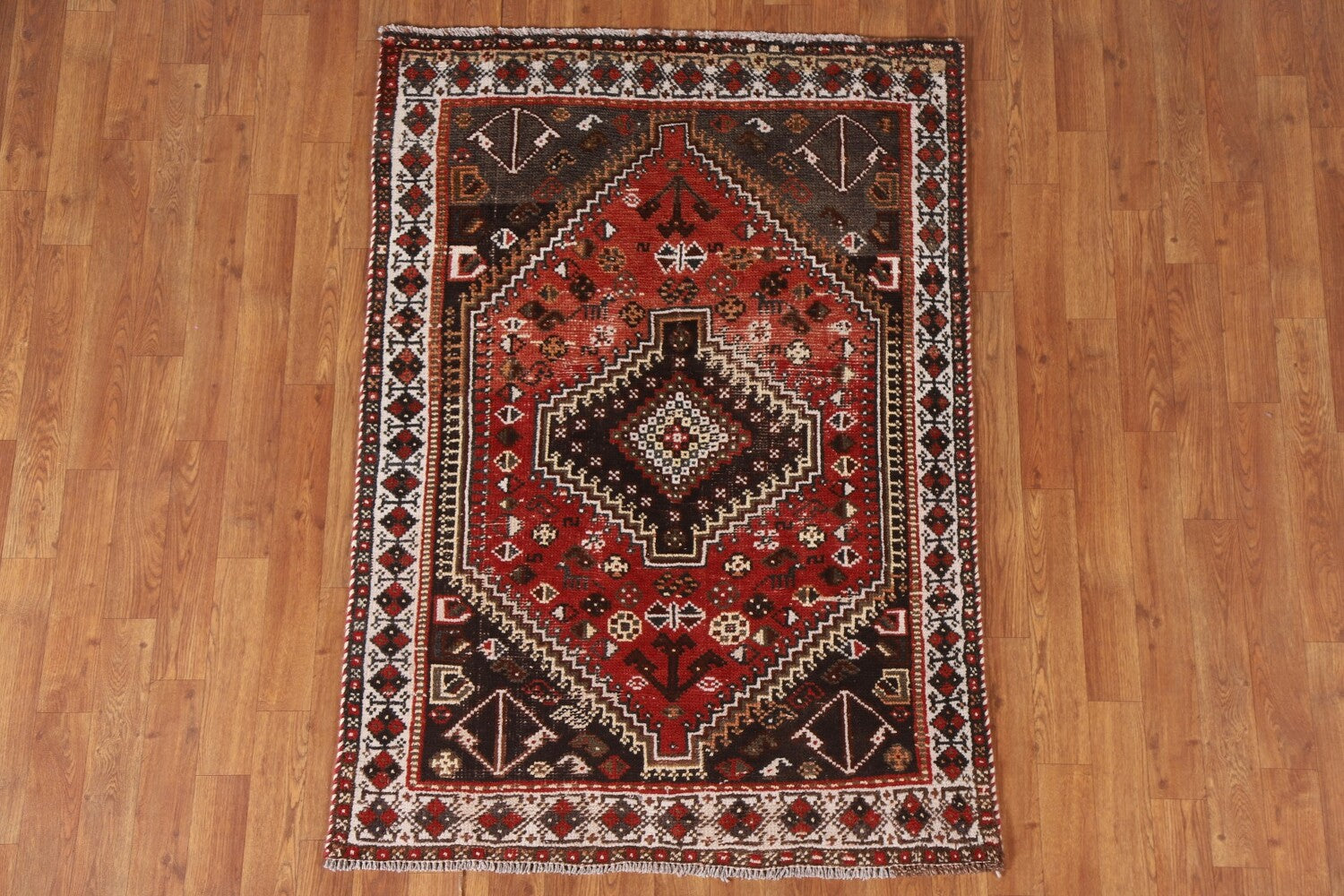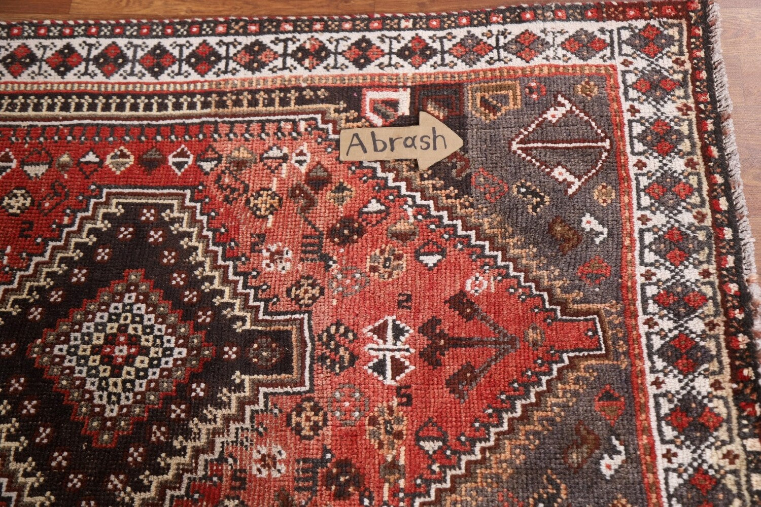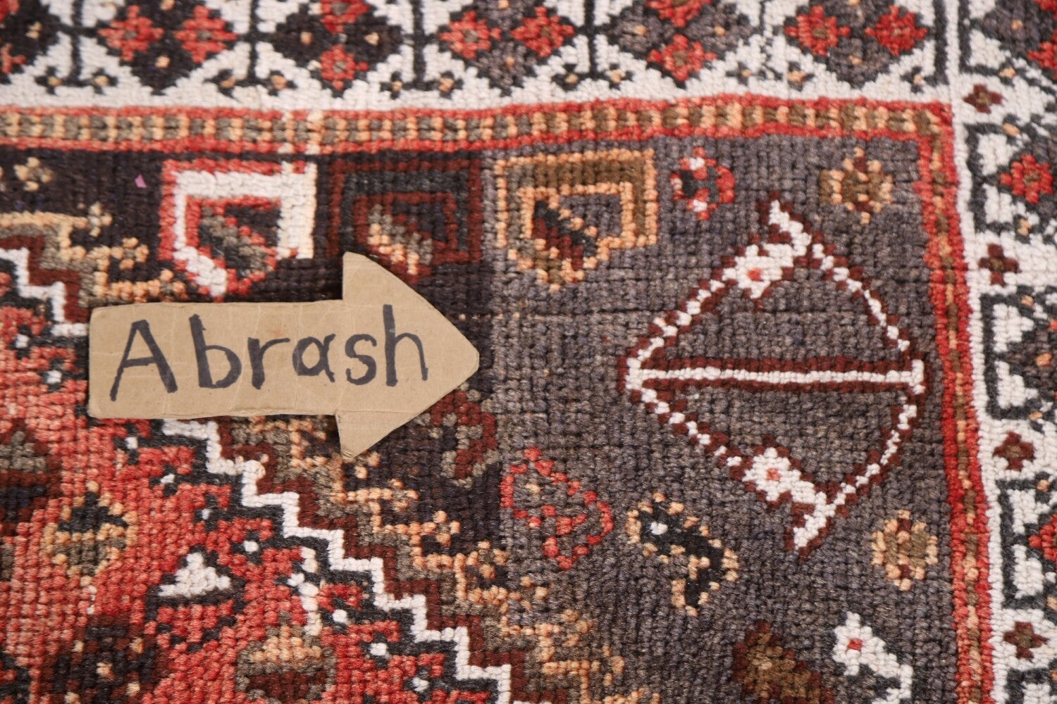 A Beautiful Genuine Persia ( Persia ) Qashqai rug is Hand Knotted by skillful weavers in Persia ( Persia ) with 100% Wool Material. This rug is in Very Good (Evenly Low Pile-Abrash) condition. dimensions are 4' 9'' X 3' 4'' in foot and 145 X 102 in centimeter. the primary color is Red.