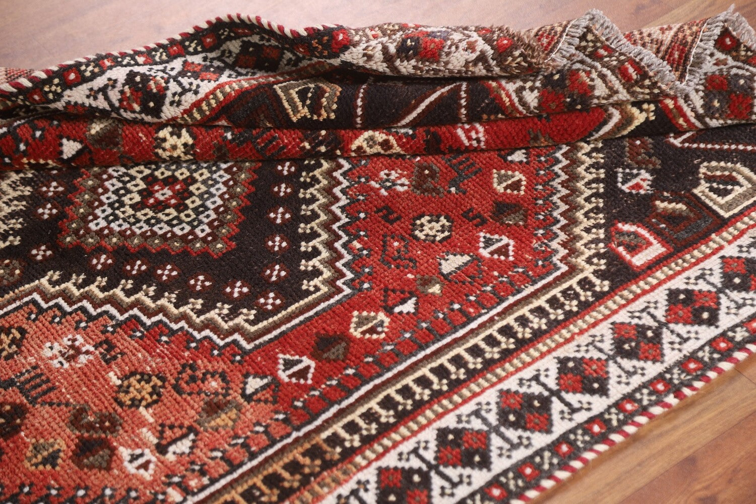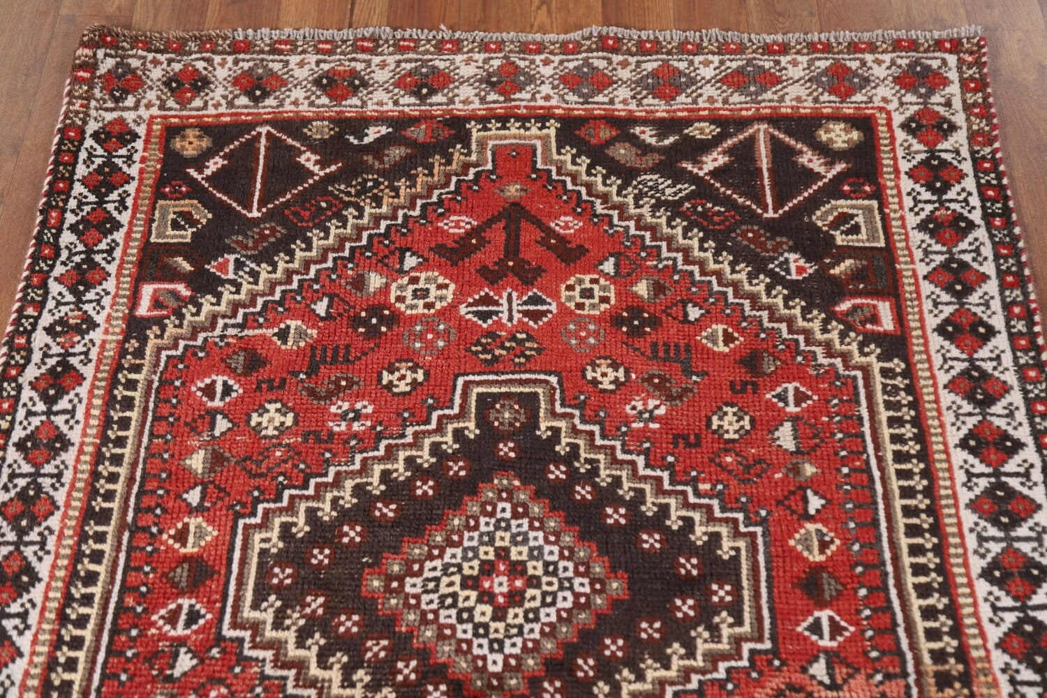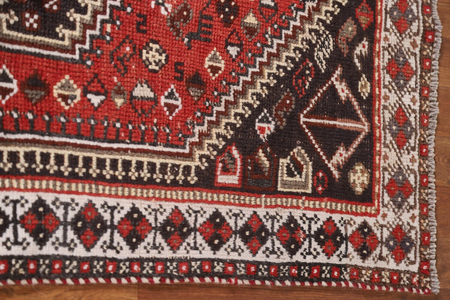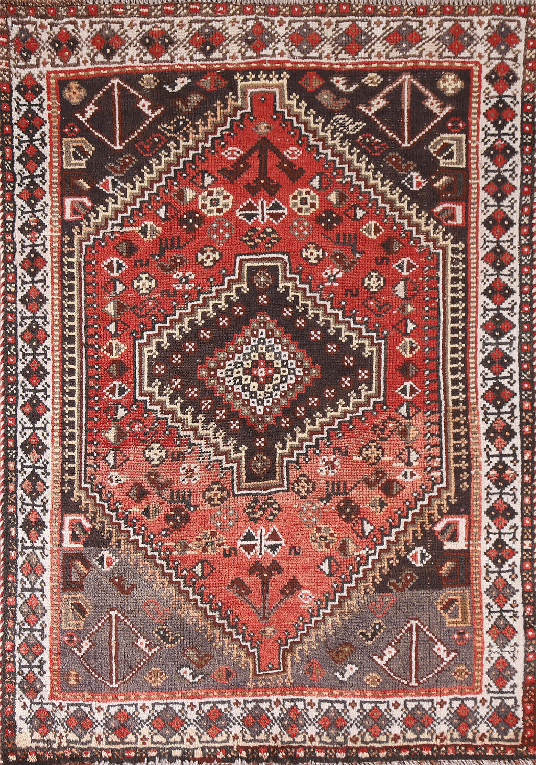 A Beautiful Genuine Persia ( Persia ) Qashqai rug is Hand Knotted by skillful weavers in Persia ( Persia ) with 100% Wool Material. This rug is in Very Good (Evenly Low Pile-Abrash) condition. dimensions are 4' 9'' X 3' 4'' in foot and 145 X 102 in centimeter. the primary color is Red.
