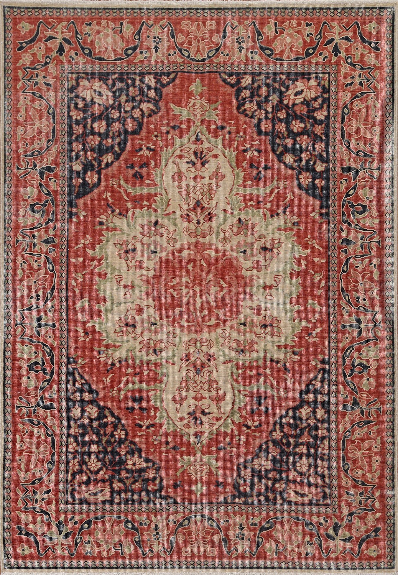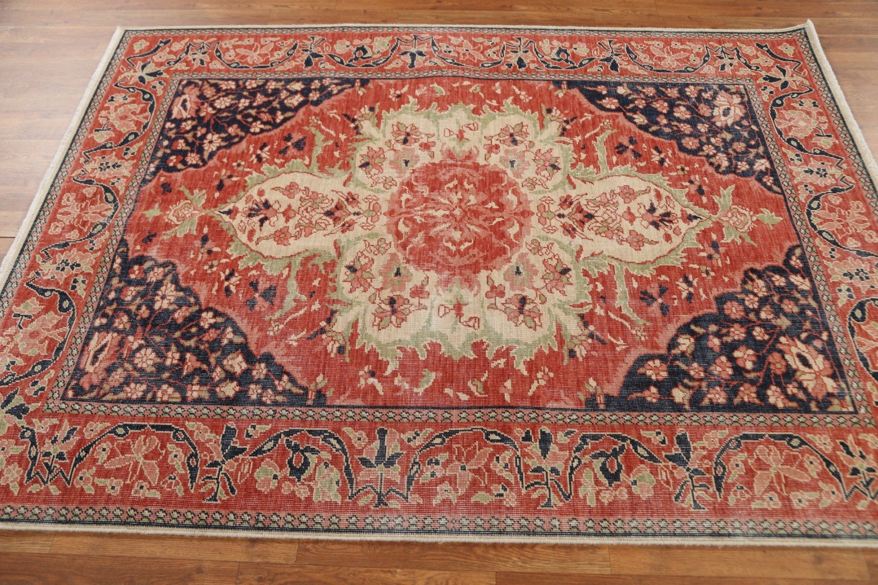 A Beautiful Genuine Turkey Sarouk (Farahan) rug is Hand Knotted by skillful weavers in Turkey with 100% Wool Material. This rug is in New, First Quality condition. dimensions are 6' 10'' X 5' 0'' in foot and 208 X 152 in centimeter. the primary color is Red.