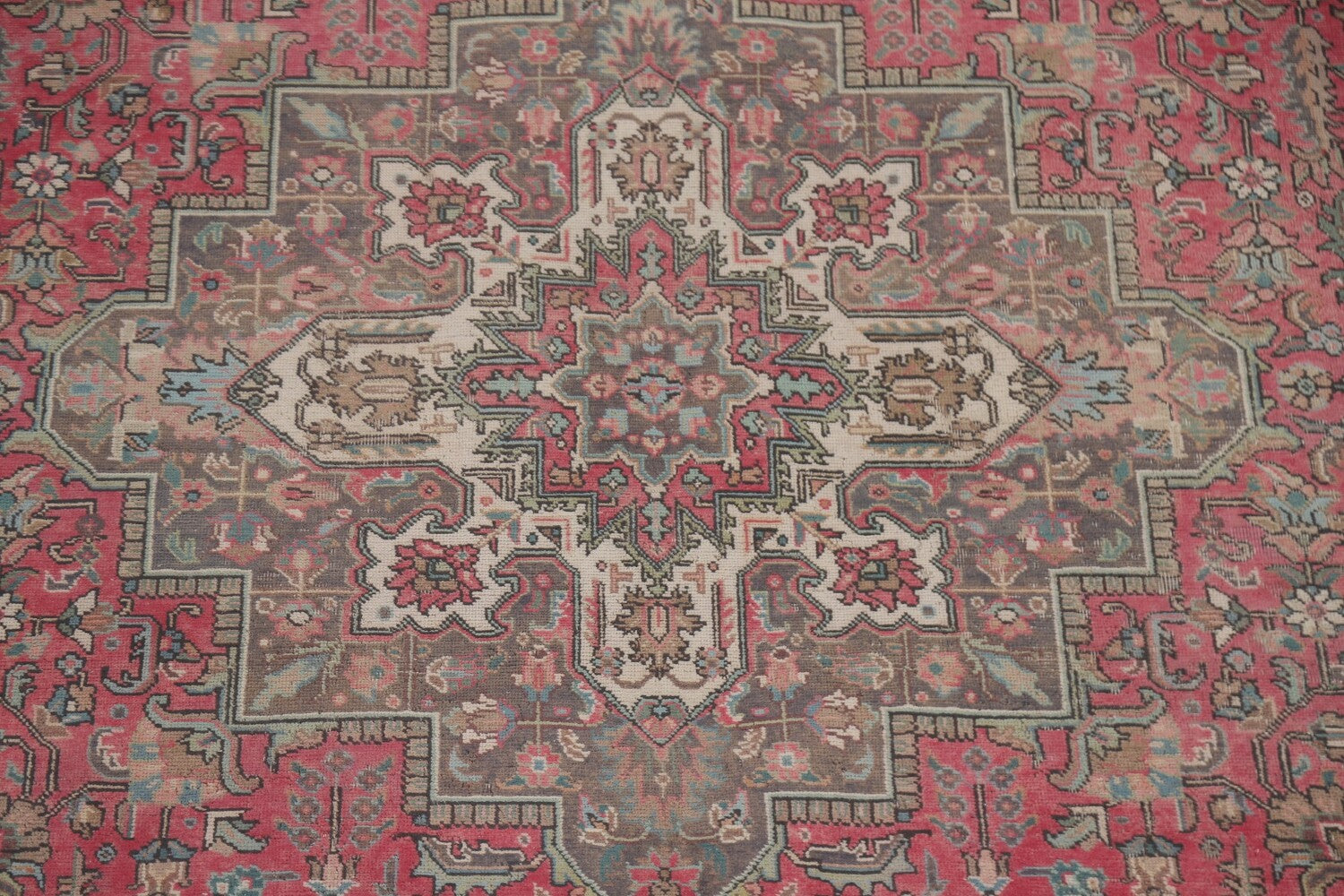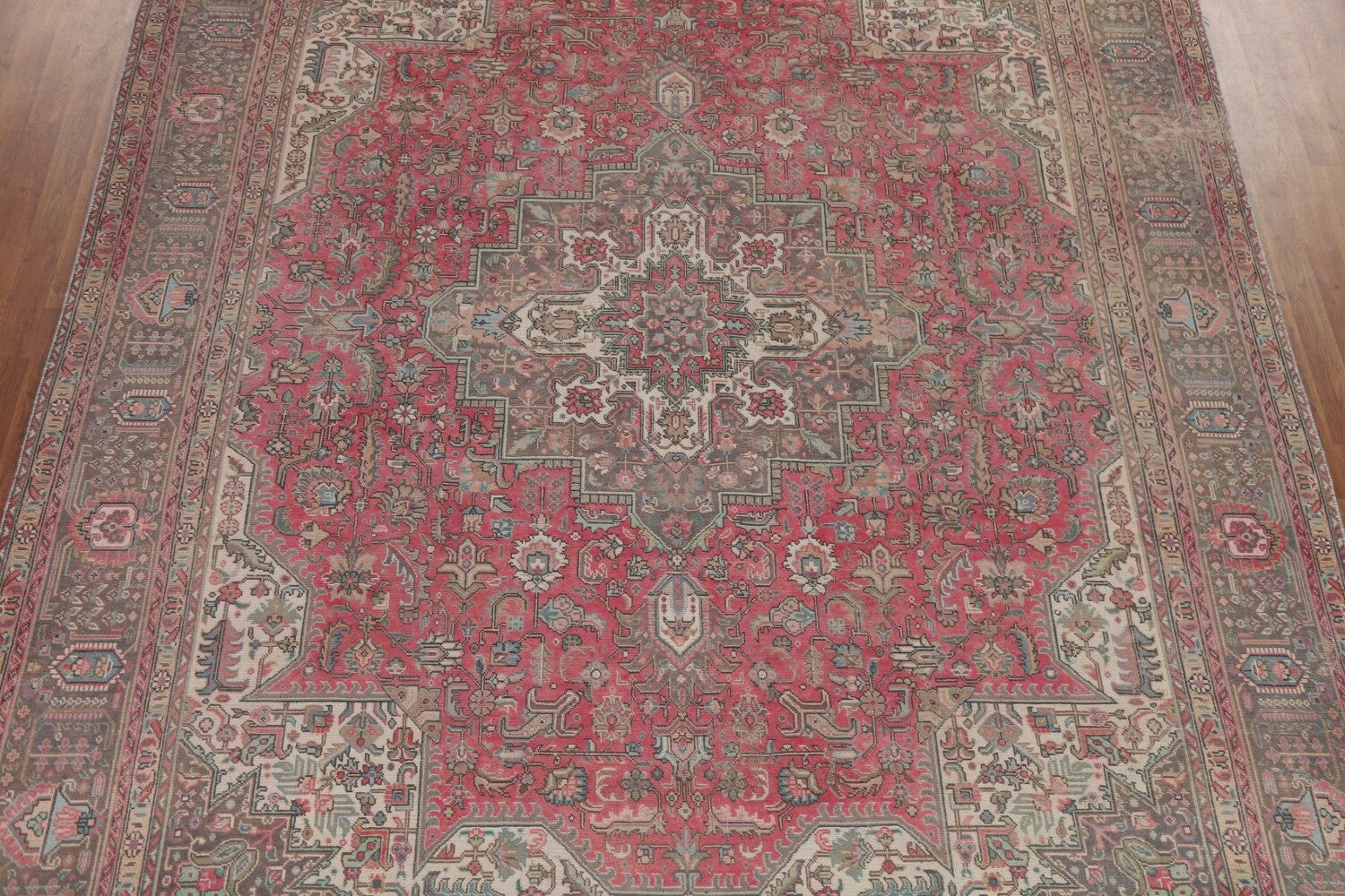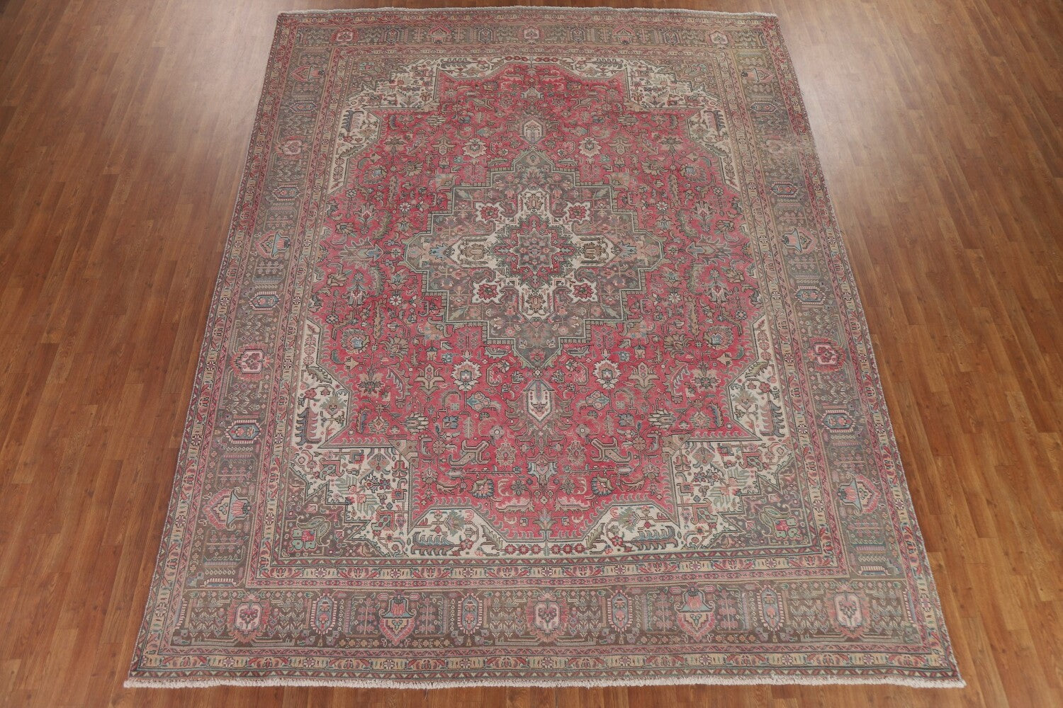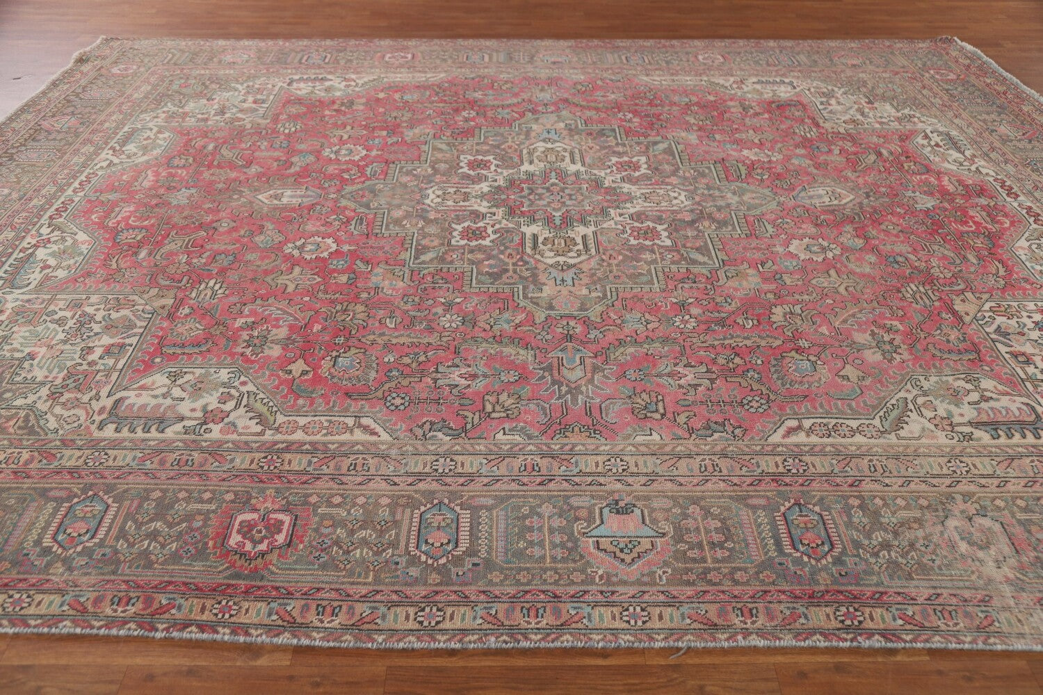 A Beautiful Genuine Persia ( Persia ) Tabriz rug is Hand Knotted by skillful weavers in Persia ( Persia ) with 100% Wool Material. This rug is in Very Good (Low Pile) condition. dimensions are 12' 3'' X 9' 7'' in foot and 373 X 292 in centimeter. the primary color is Pink.