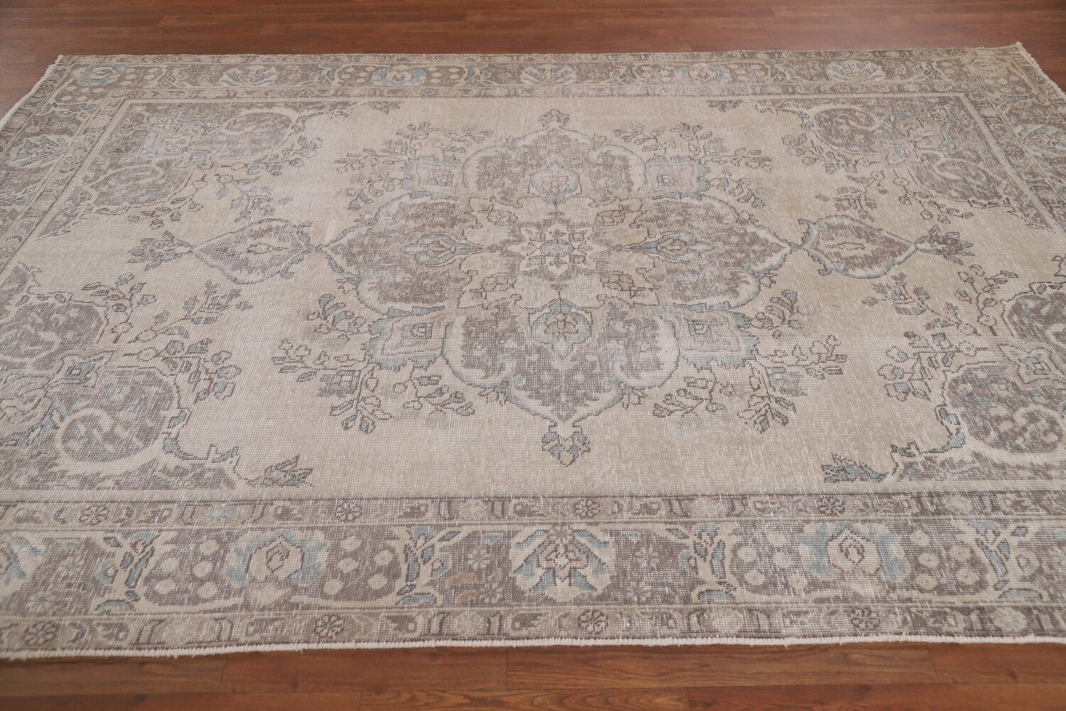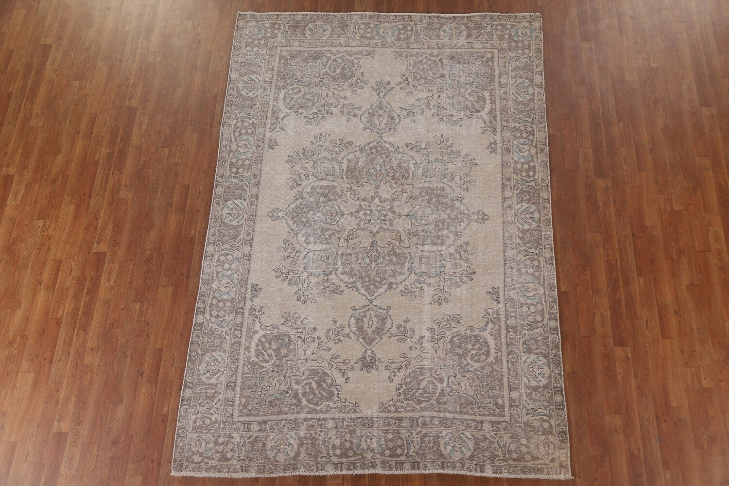 A Beautiful Genuine Persia ( Persia ) Tabriz rug is Hand Knotted by skillful weavers in Persia ( Persia ) with 100% Wool Material. This rug is in Very Good (Evenly Low Pile) condition. dimensions are 9' 6'' X 6' 5'' in foot and 290 X 196 in centimeter. the primary color is Beige & Ivories.