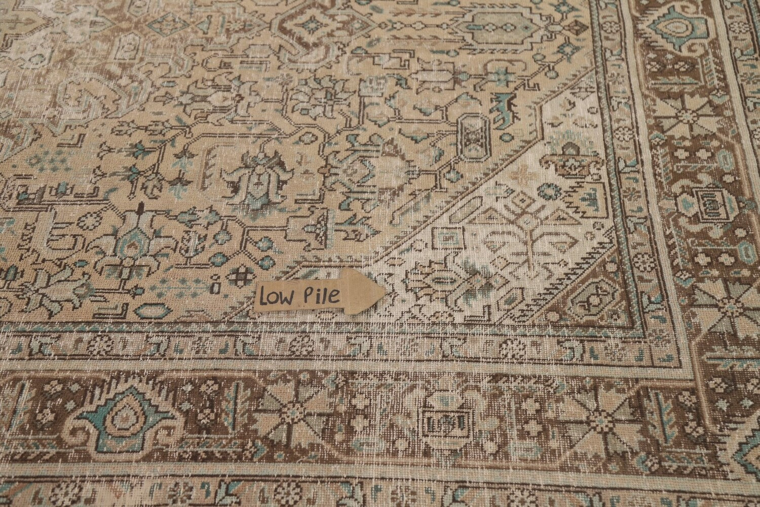 A Beautiful Genuine Persia ( Persia ) Tabriz rug is Hand Knotted by skillful weavers in Persia ( Persia ) with 100% Wool Material. This rug is in Very Good (Low Pile) condition. dimensions are 9' 6'' X 6' 5'' in foot and 290 X 196 in centimeter. the primary color is Beige & Ivories.