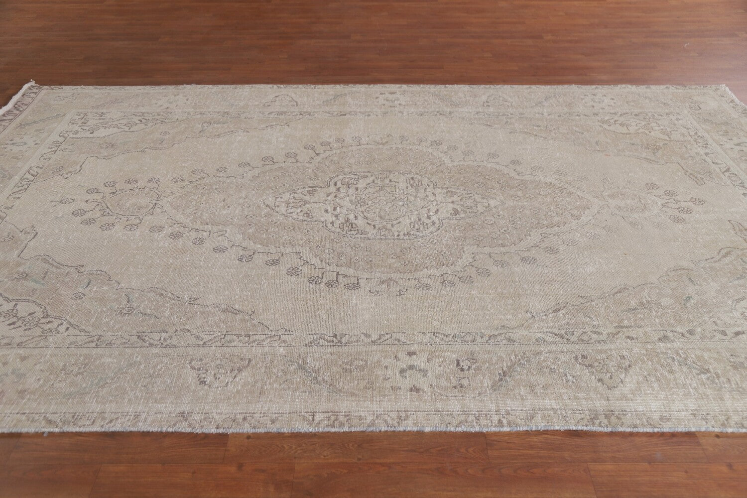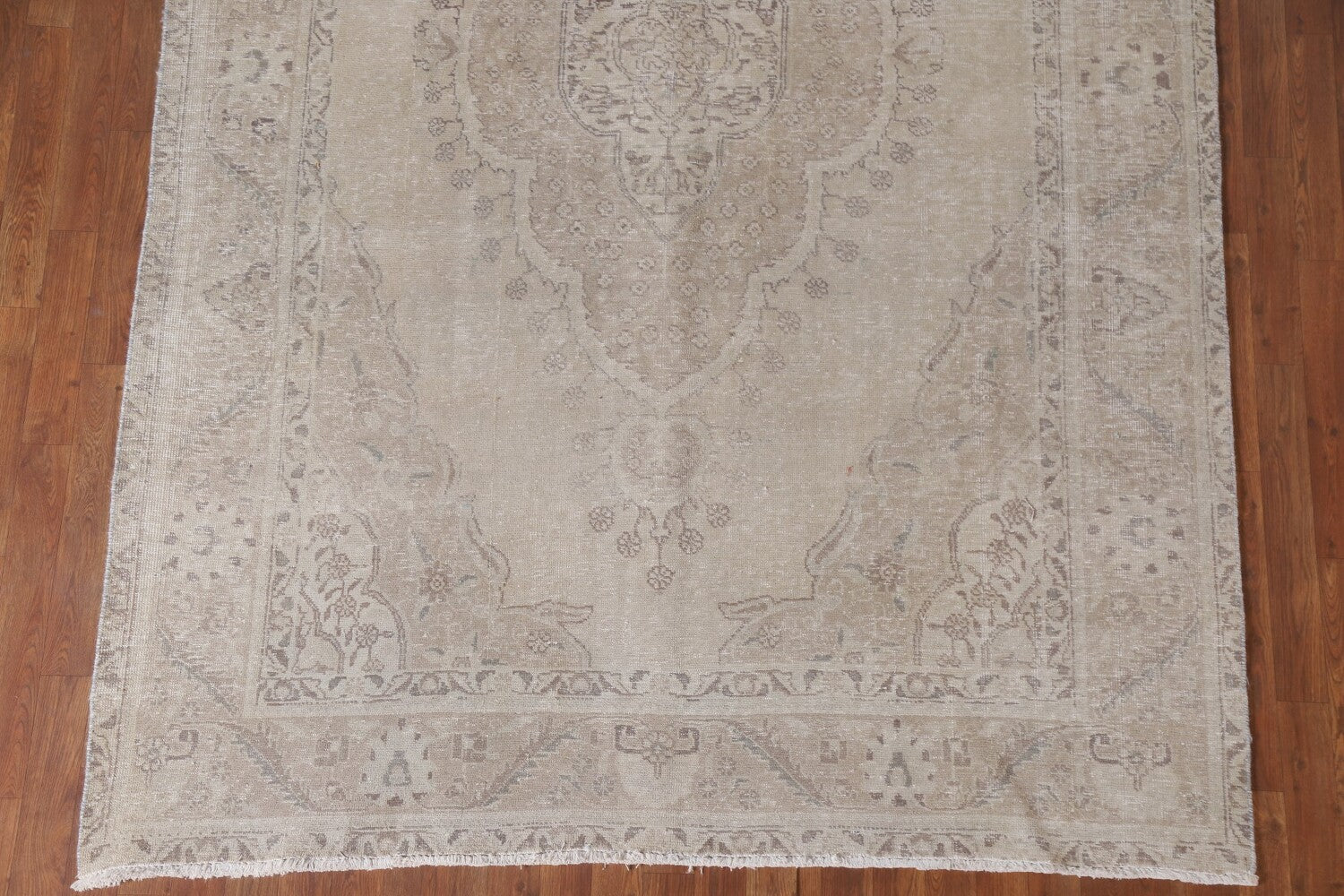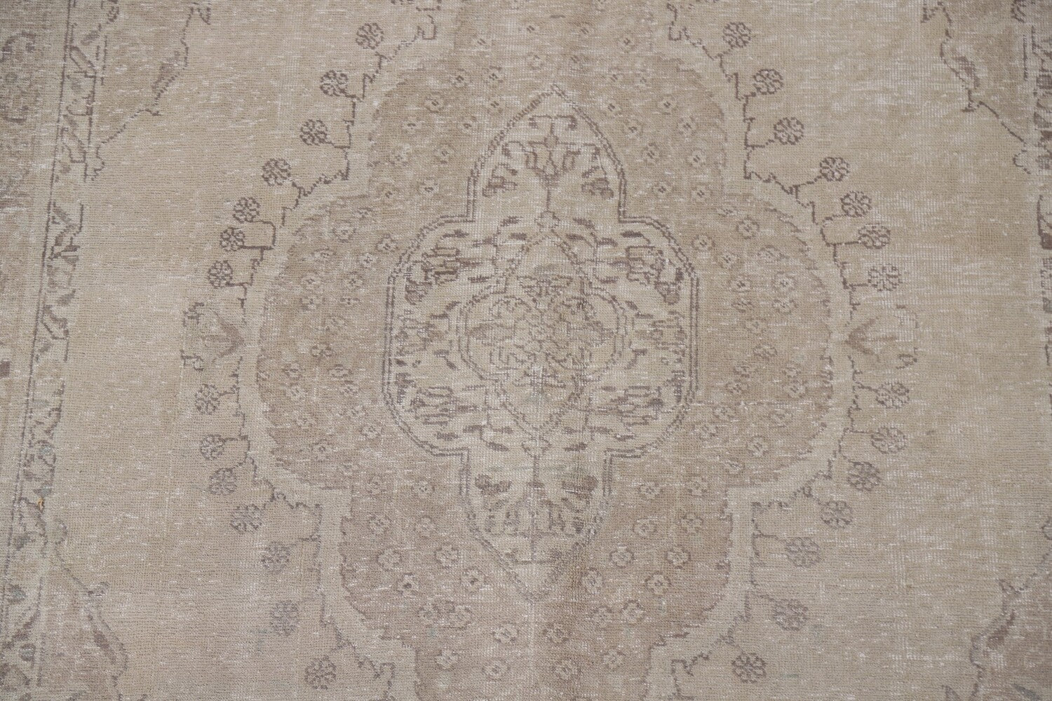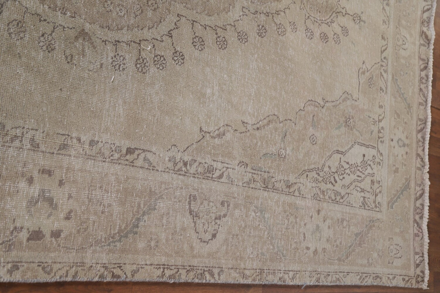 A Beautiful Genuine Persia ( Persia ) Tabriz rug is Hand Knotted by skillful weavers in Persia ( Persia ) with 100% Wool Material. This rug is in Very Good (Evenly Low Pile) condition. dimensions are 9' 11'' X 6' 3'' in foot and 302 X 191 in centimeter. the primary color is Beige & Ivories.