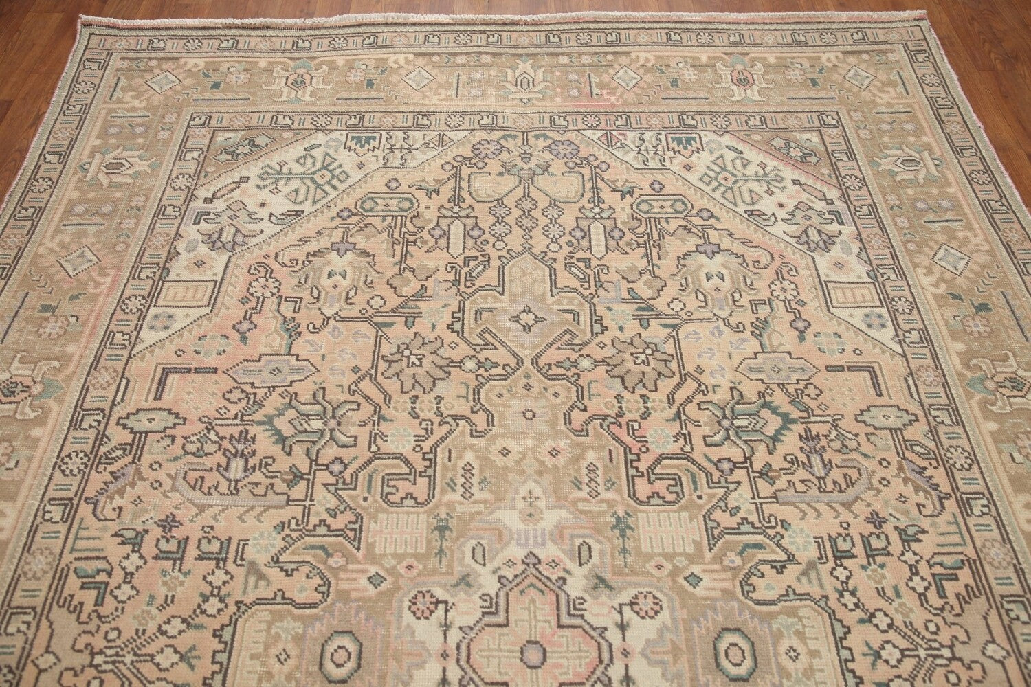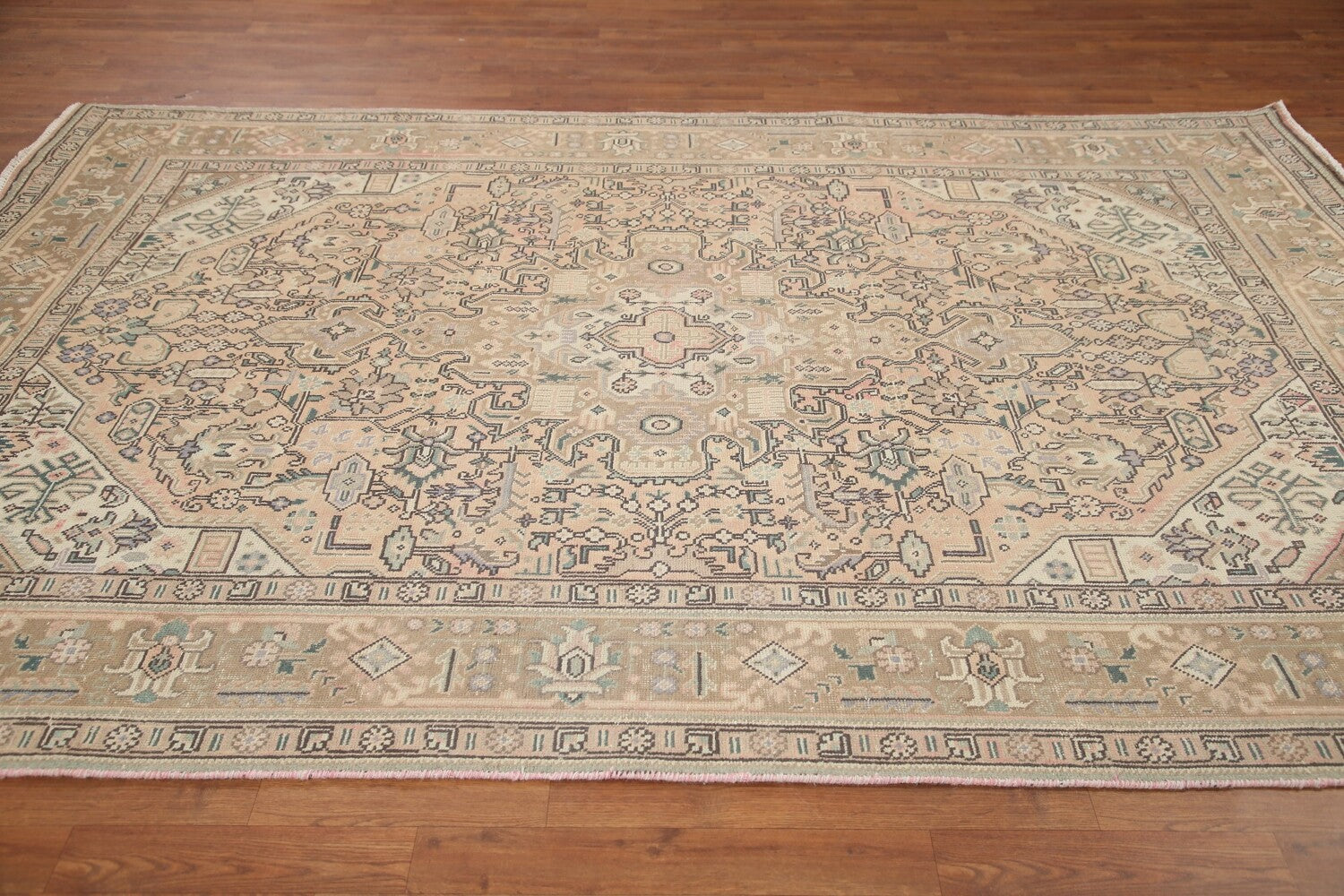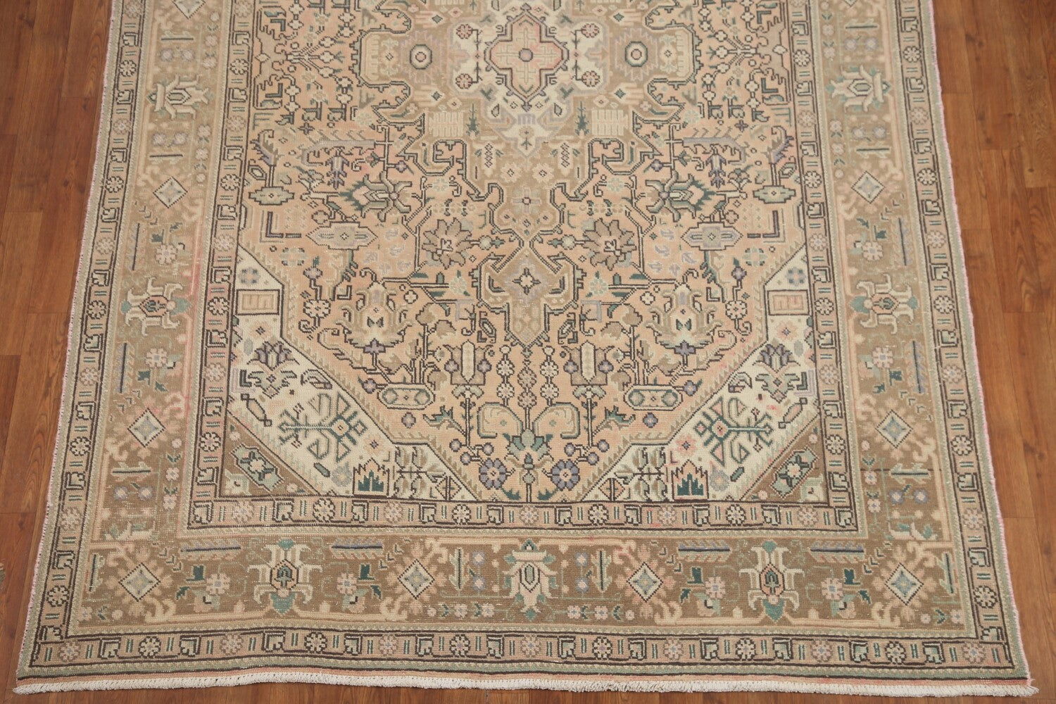 A Beautiful Genuine Persia ( Persia ) Tabriz rug is Hand Knotted by skillful weavers in Persia ( Persia ) with 100% Wool Material. This rug is in Very Good (Evenly Low Pile) condition. dimensions are 9' 10'' X 6' 4'' in foot and 300 X 193 in centimeter. the primary color is Peach.