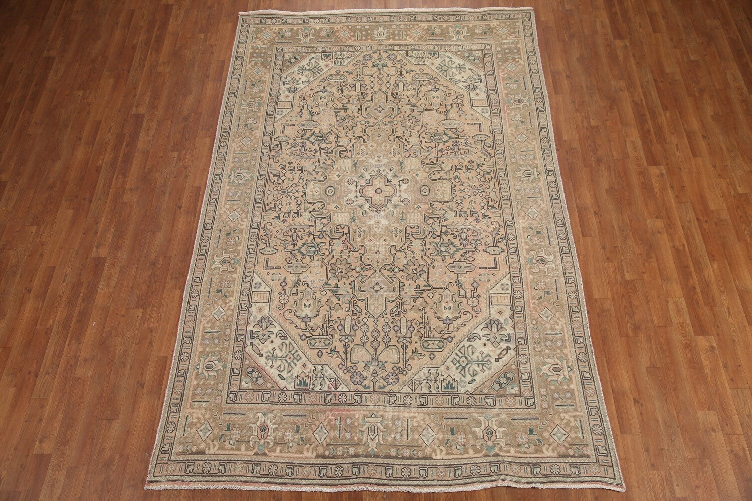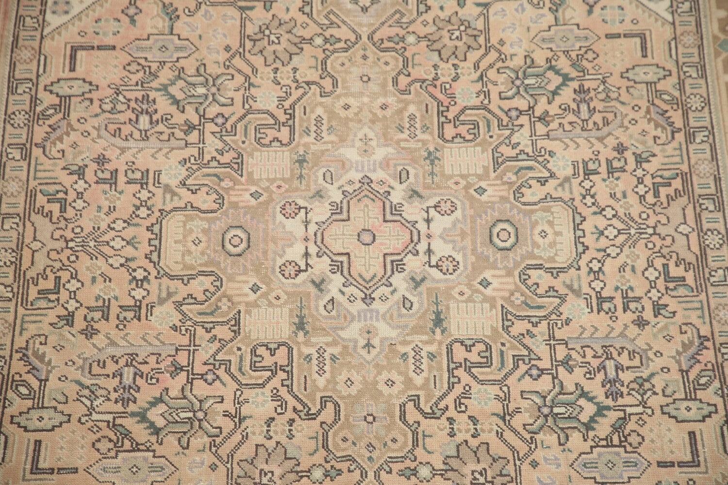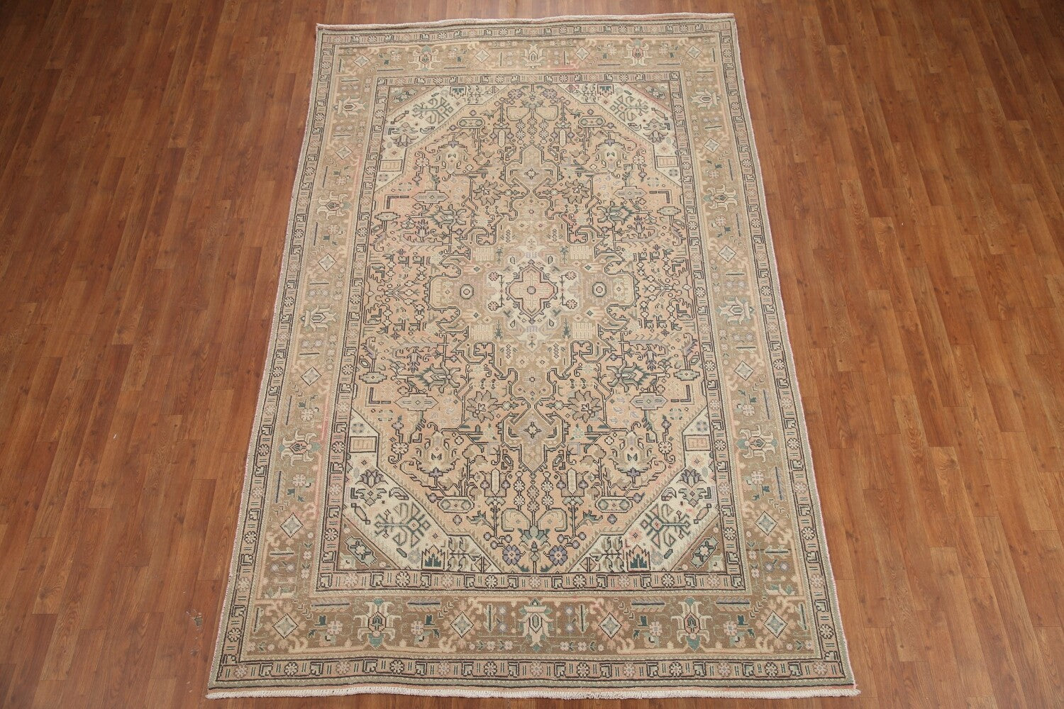 A Beautiful Genuine Persia ( Persia ) Tabriz rug is Hand Knotted by skillful weavers in Persia ( Persia ) with 100% Wool Material. This rug is in Very Good (Evenly Low Pile) condition. dimensions are 9' 10'' X 6' 4'' in foot and 300 X 193 in centimeter. the primary color is Peach.