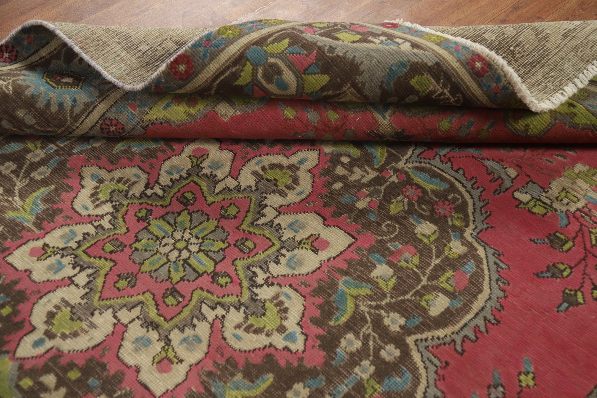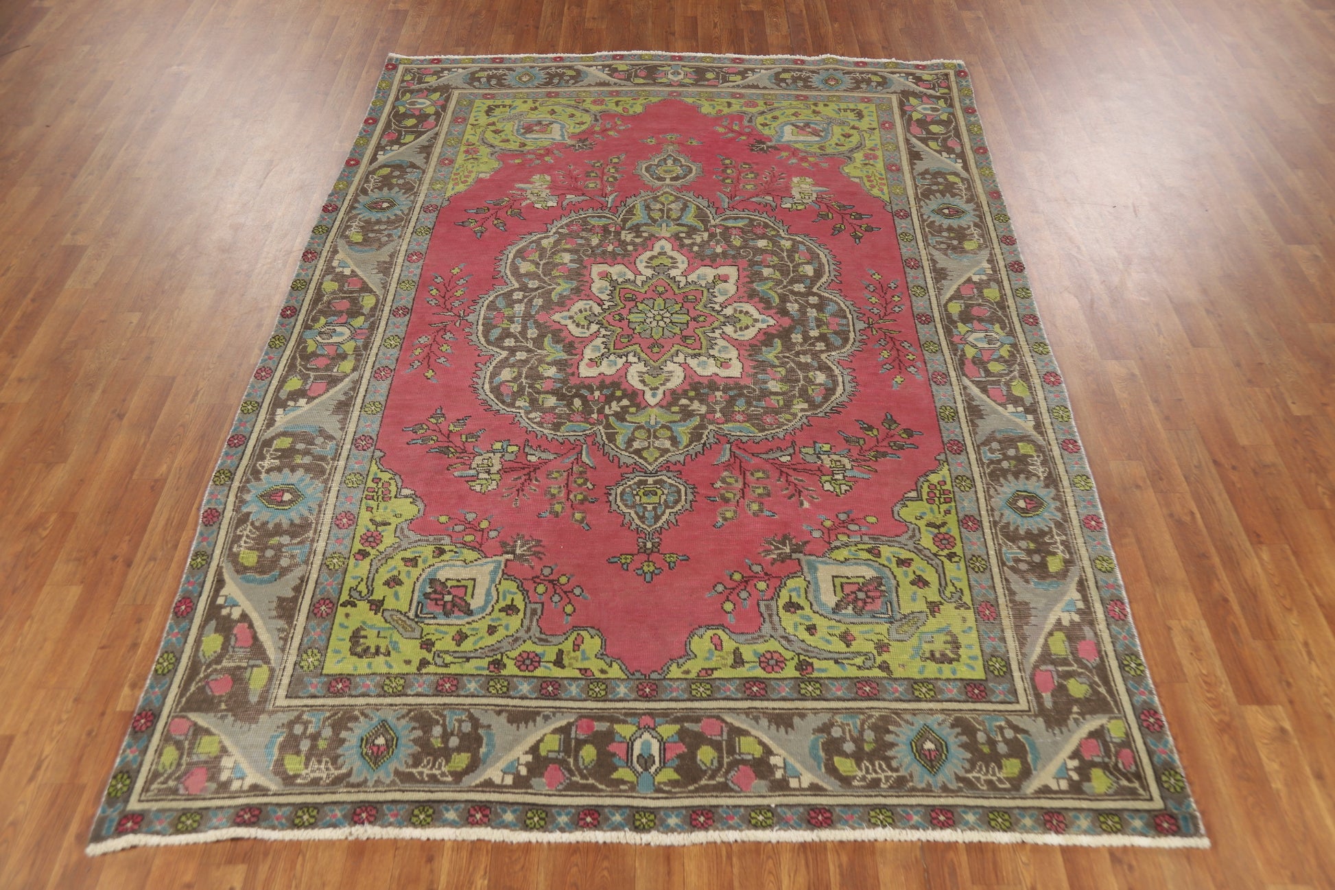 A Beautiful Genuine Persia ( Persia ) Tabriz rug is Hand Knotted by skillful weavers in Persia ( Persia ) with 100% Wool Material. This rug is in Very Good (Evenly Low Pile) condition. dimensions are 9' 5'' X 6' 8'' in foot and 287 X 203 in centimeter. the primary color is Pink.