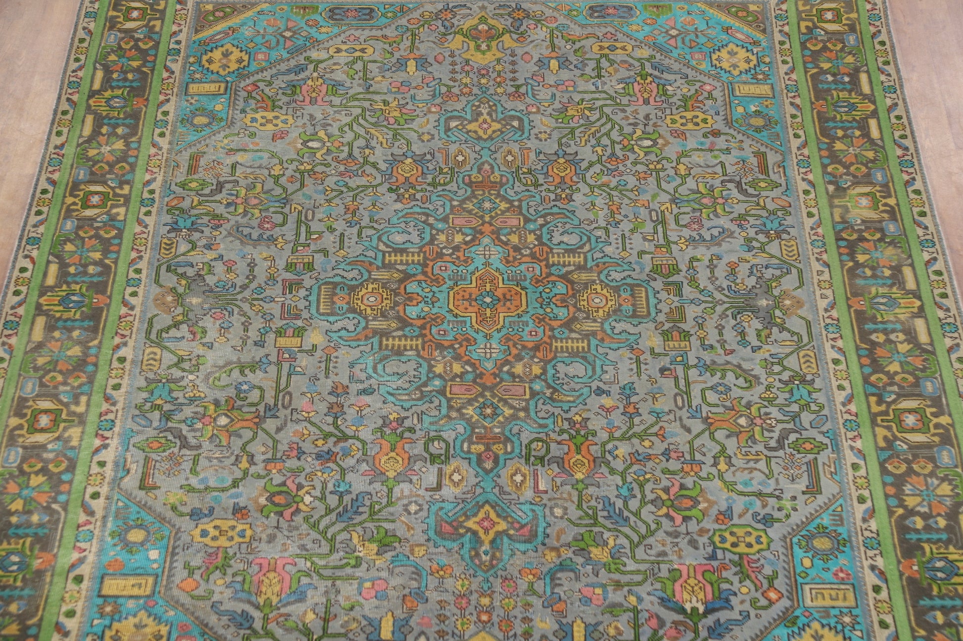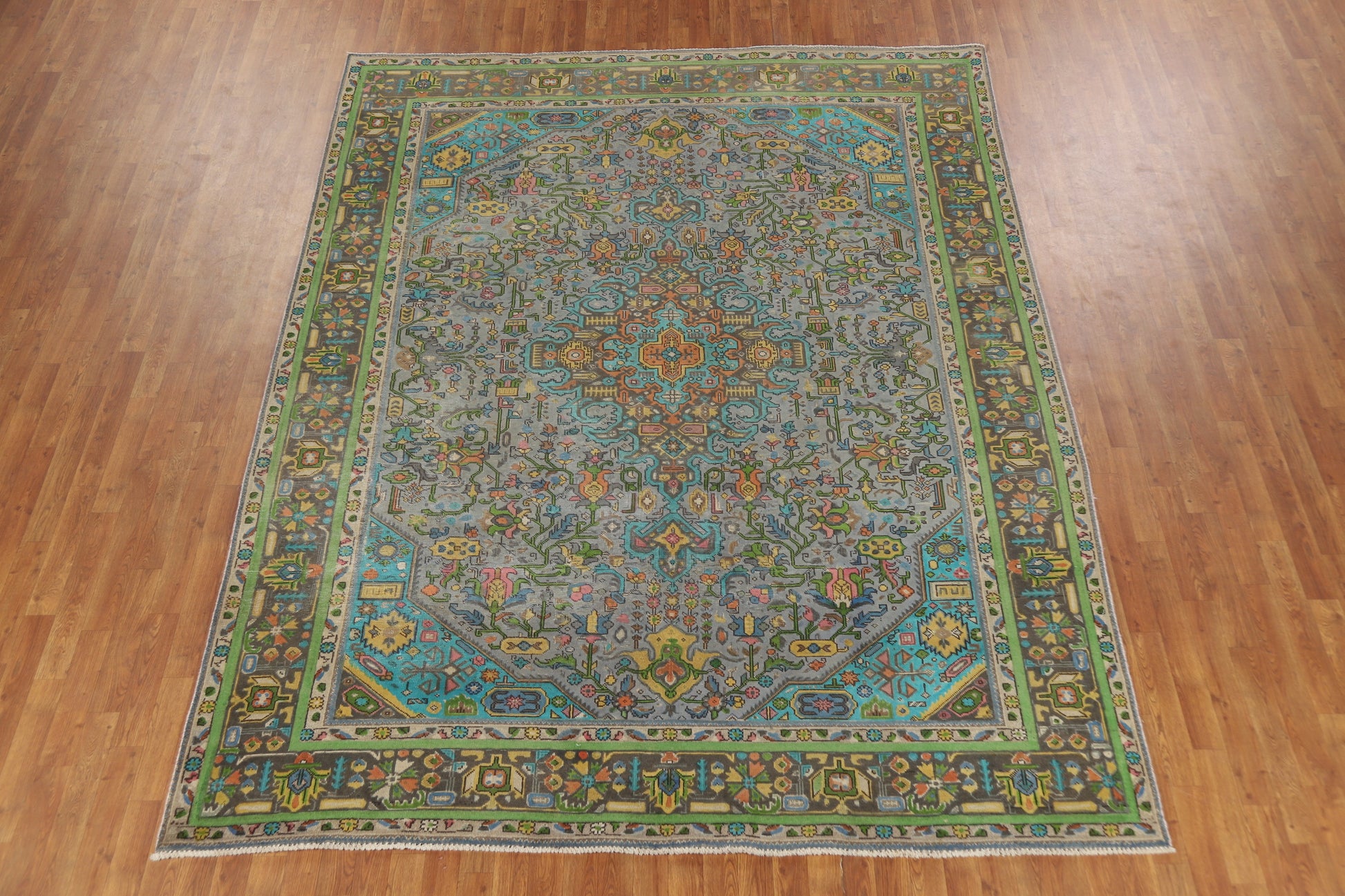 A Beautiful Genuine Persia ( Persia ) Tabriz rug is Hand Knotted by skillful weavers in Persia ( Persia ) with 100% Wool Material. This rug is in Very Good (Evenly Low Pile) condition. dimensions are 10' 11'' X 8' 3'' in foot and 333 X 251 in centimeter. the primary color is Greys & Charcoal.