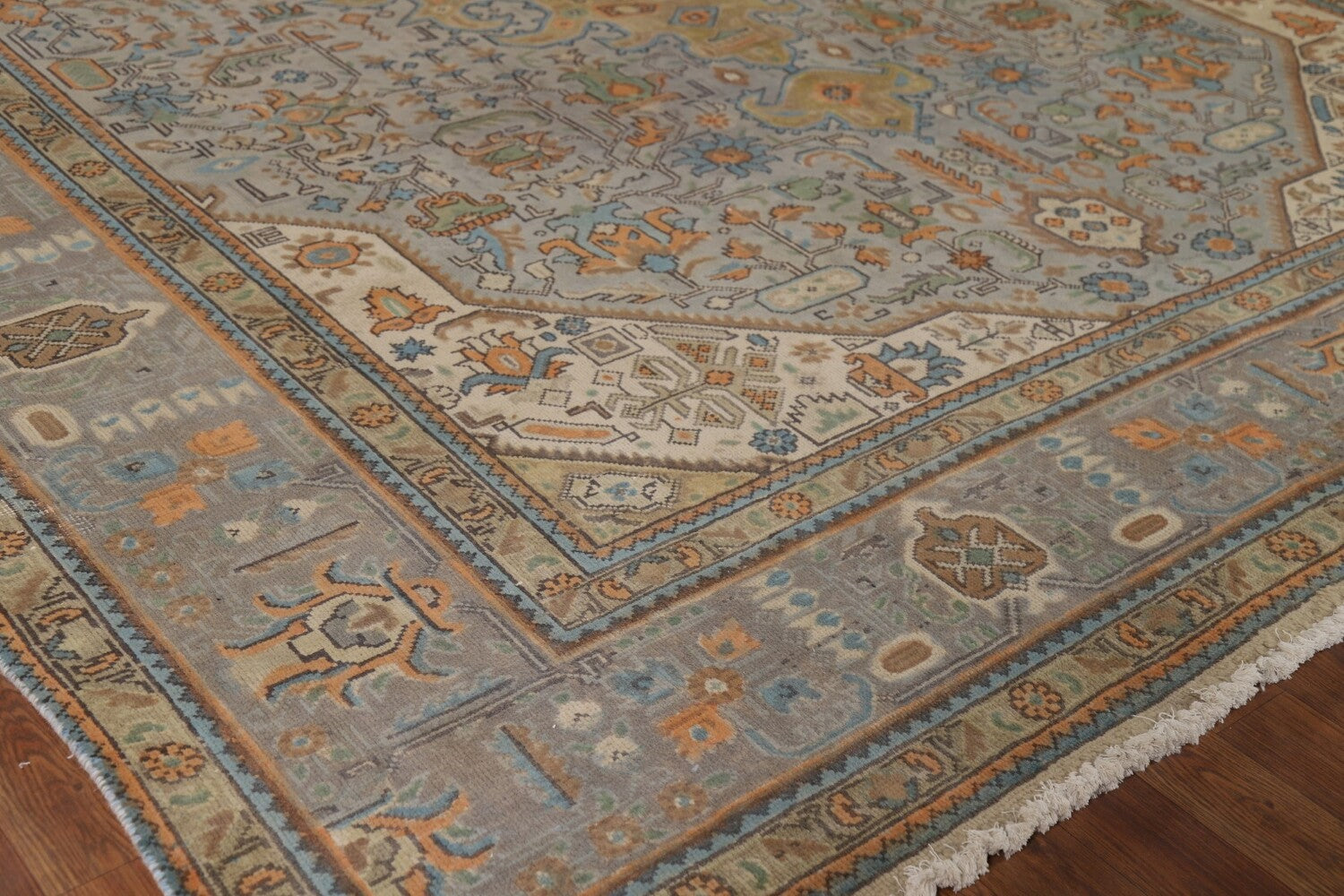 A Beautiful Genuine Persia ( Persia ) Tabriz rug is Hand Knotted by skillful weavers in Persia ( Persia ) with 100% Wool Material. This rug is in Very Good (Evenly Low Pile) condition. dimensions are 11' 3'' X 8' 1'' in foot and 343 X 246 in centimeter. the primary color is Greys & Charcoal.