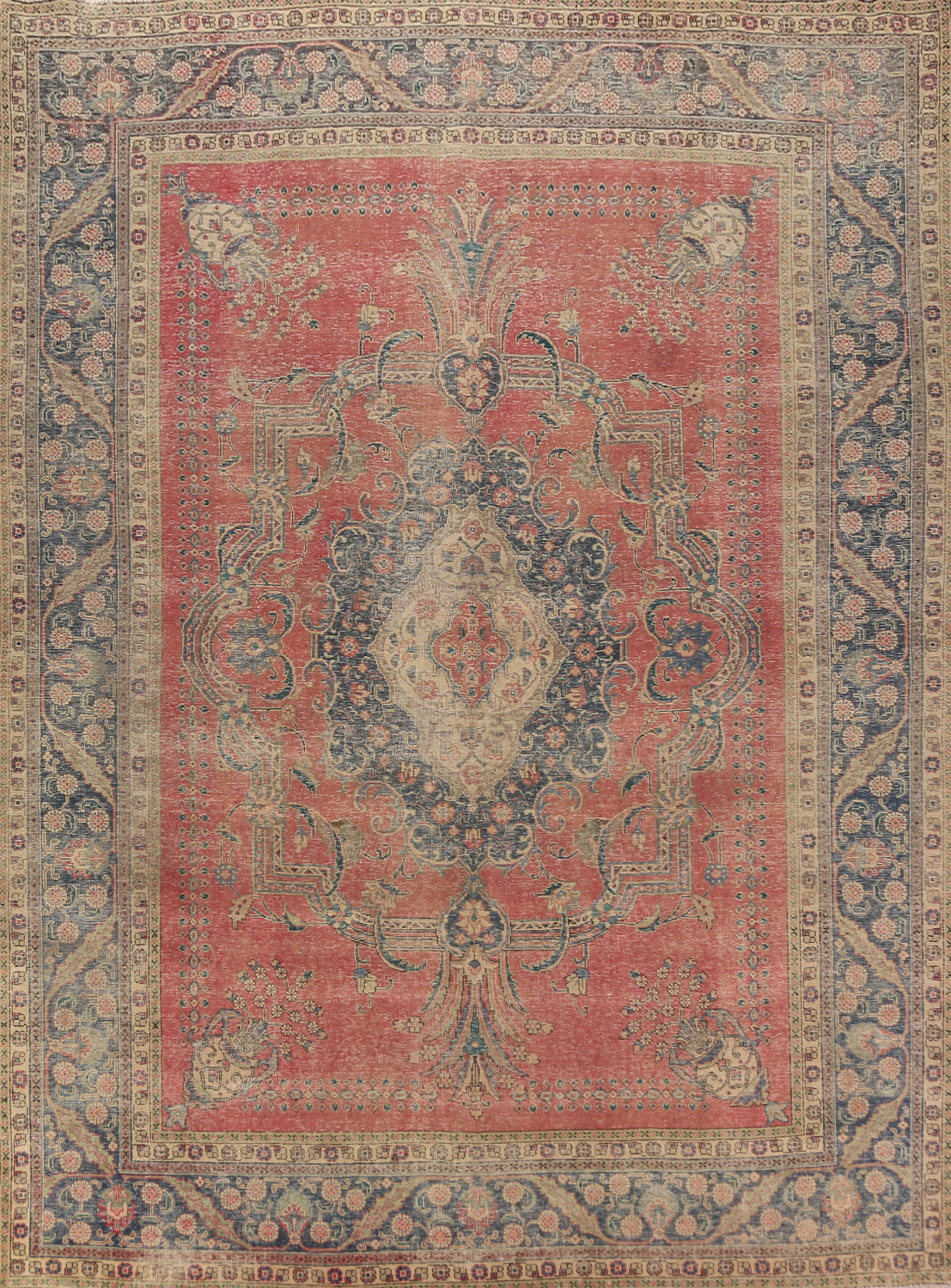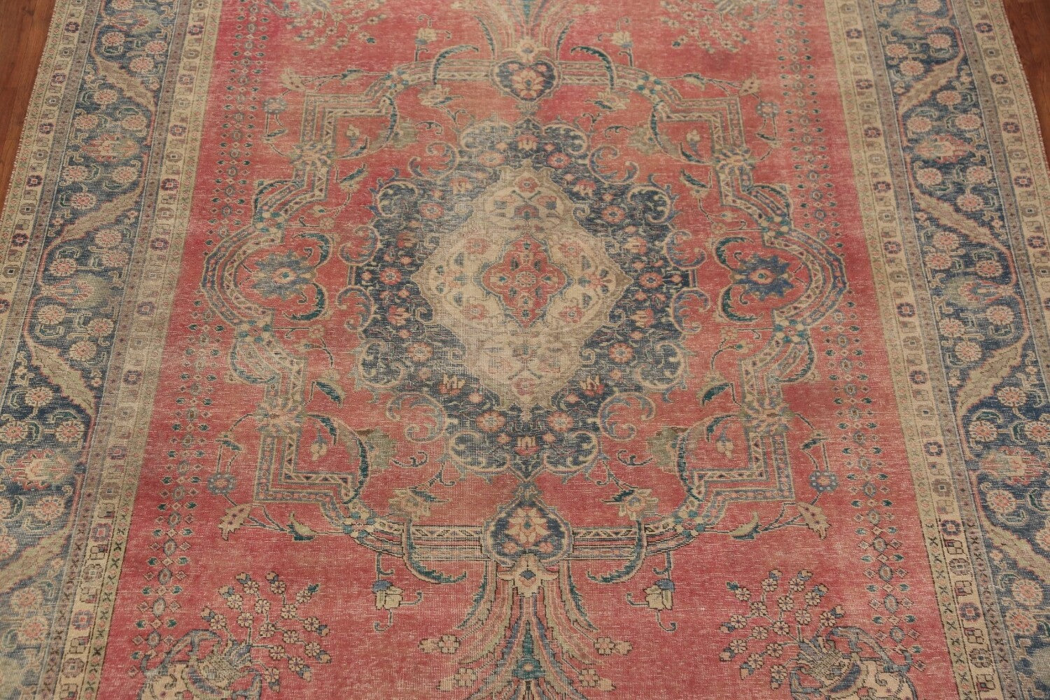 A Beautiful Genuine Persia ( Persia ) Tabriz rug is Hand Knotted by skillful weavers in Persia ( Persia ) with 100% Wool Material. This rug is in Very Good ( Low Pile ) condition. dimensions are 11' 9'' X 9' 3'' in foot and 358 X 282 in centimeter. the primary color is Coral.