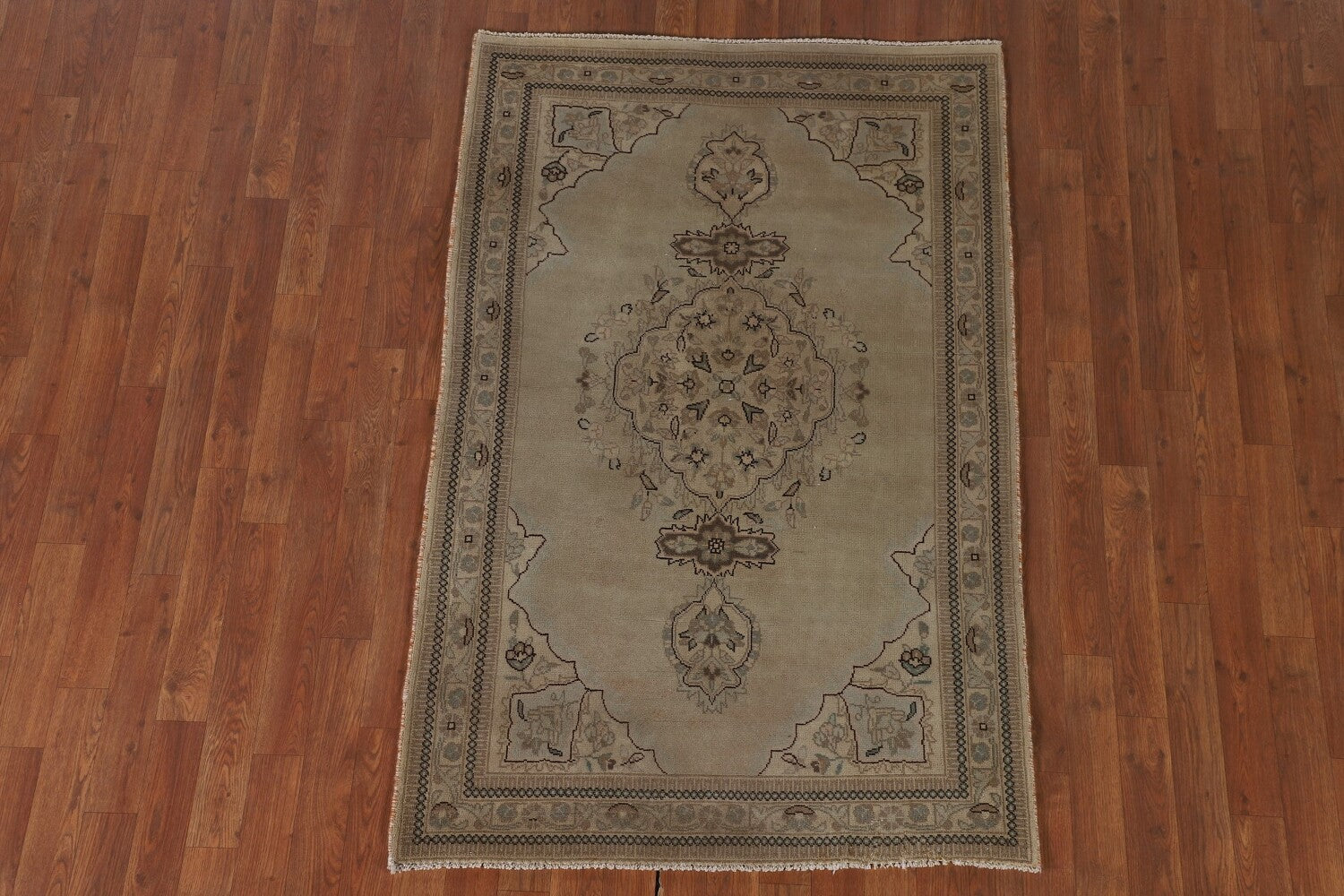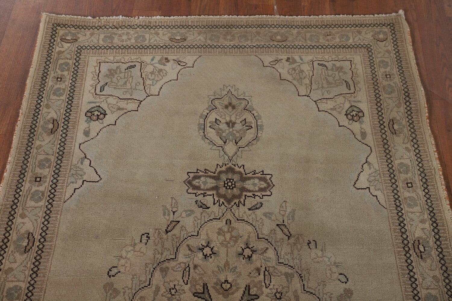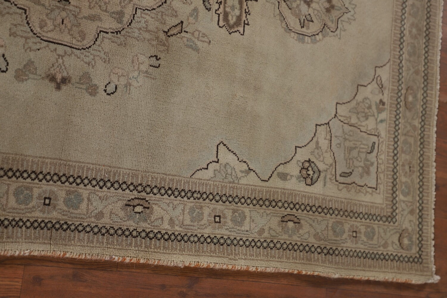 A Beautiful Genuine Persia ( Persia ) Tabriz rug is Hand Knotted by skillful weavers in Persia ( Persia ) with 100% Wool Material. This rug is in Very Good (Evenly Low Pile) condition. dimensions are 5' 3'' X 3' 6'' in foot and 160 X 107 in centimeter. the primary color is Beige & Ivories.