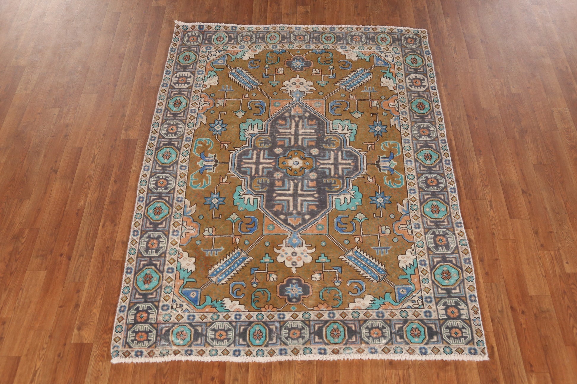 A Beautiful Genuine Persia ( Persia ) Tabriz rug is Hand Knotted by skillful weavers in Persia ( Persia ) with 100% Wool Material. This rug is in Very Good (Evenly Low Pile) condition. dimensions are 6' 2'' X 4' 8'' in foot and 188 X 142 in centimeter. the primary color is Brown.