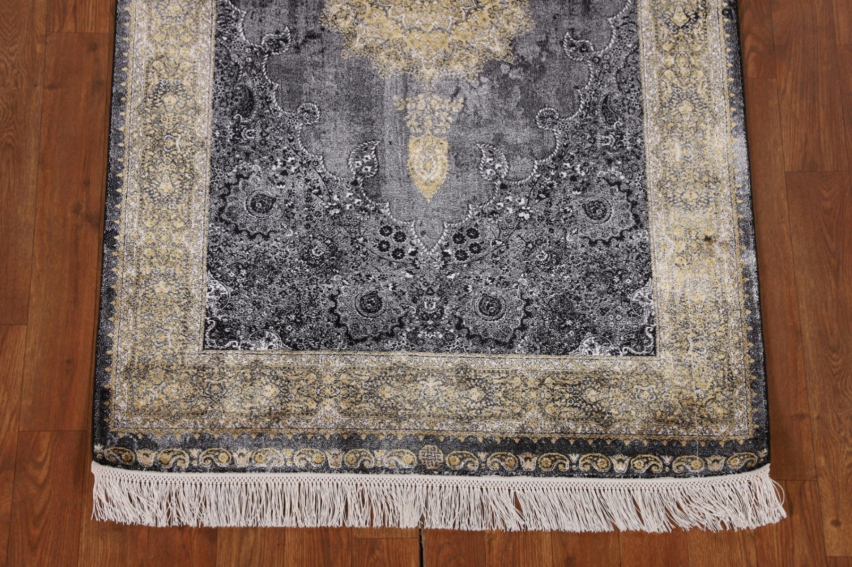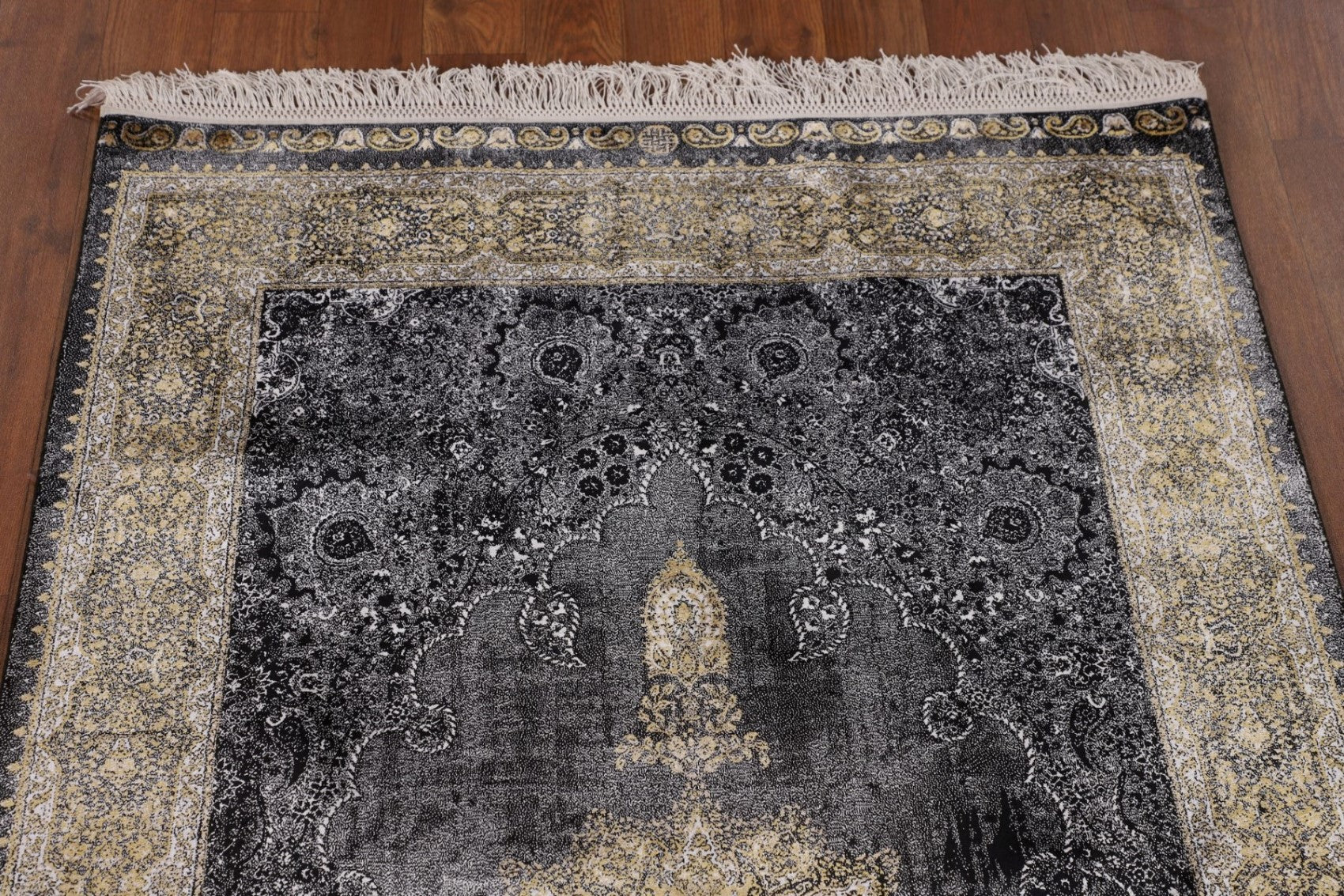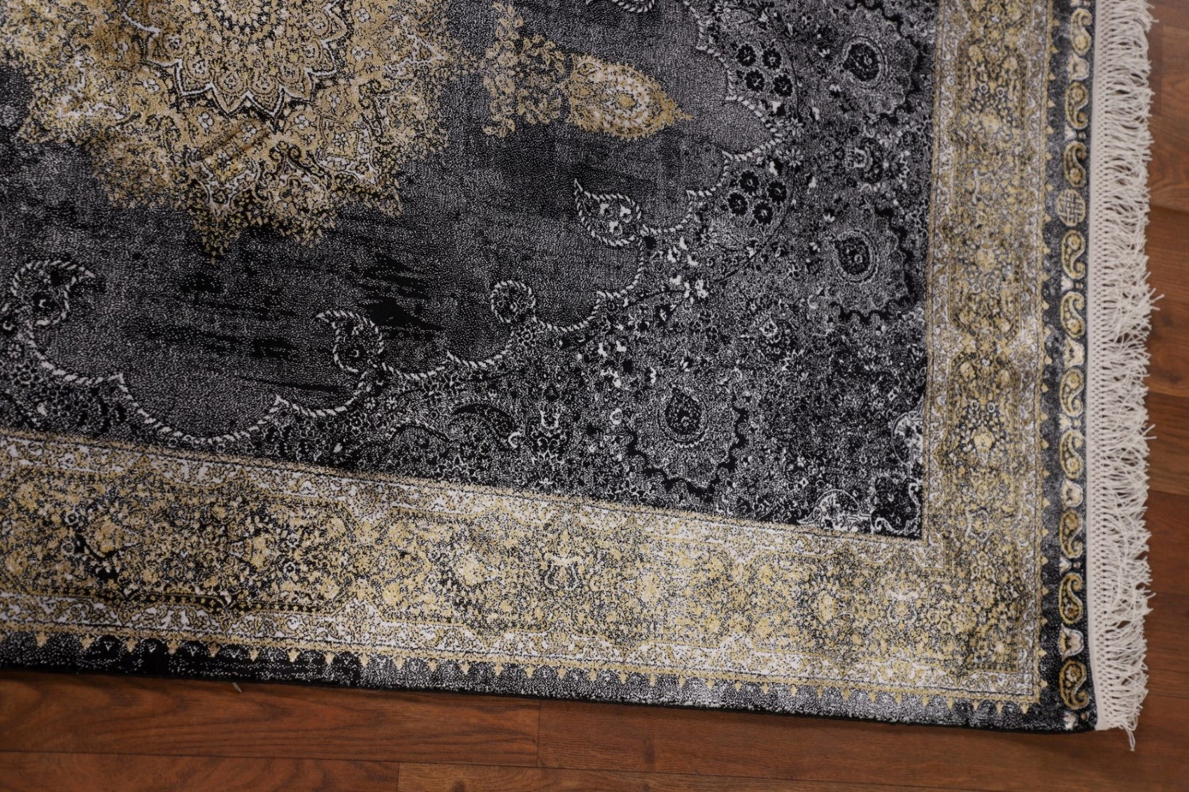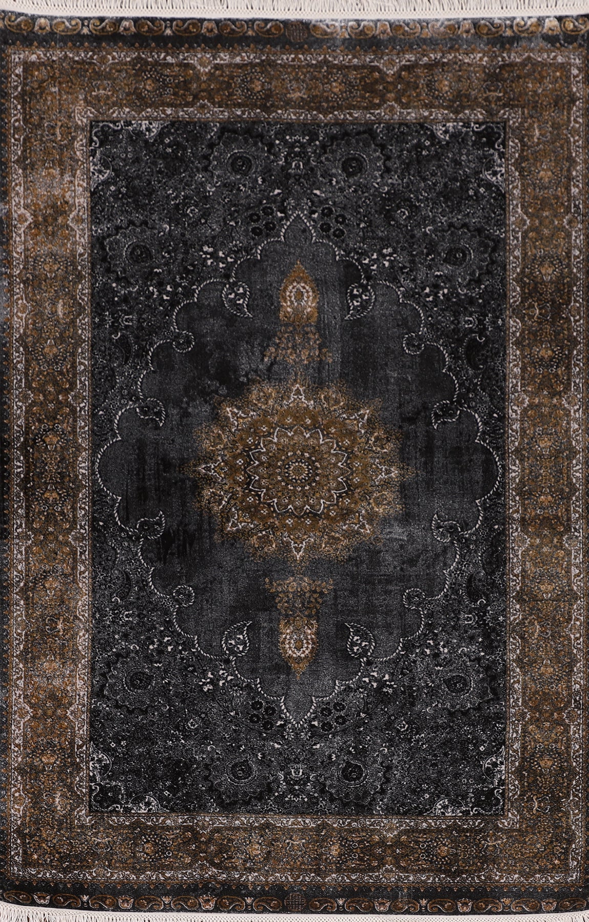 Gray & Black Traditional Floral Qum Turkish Rugs
