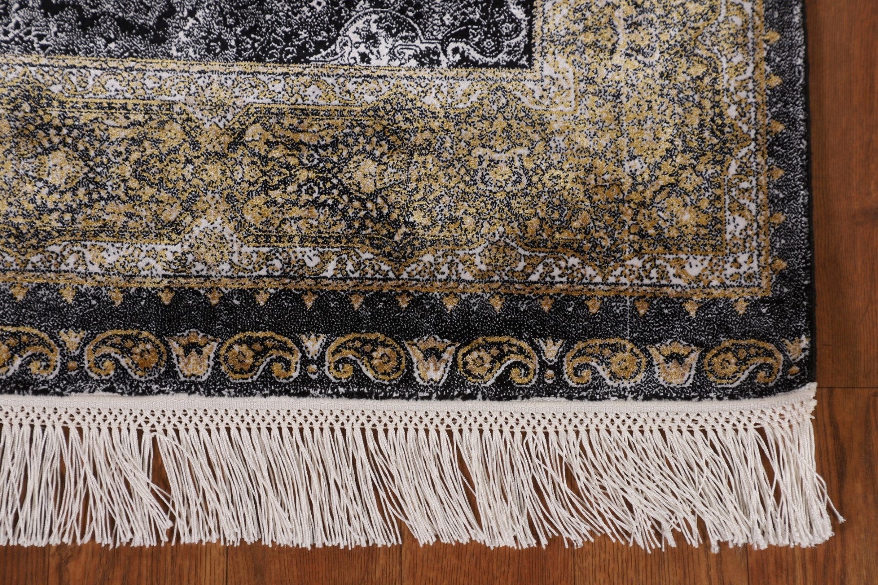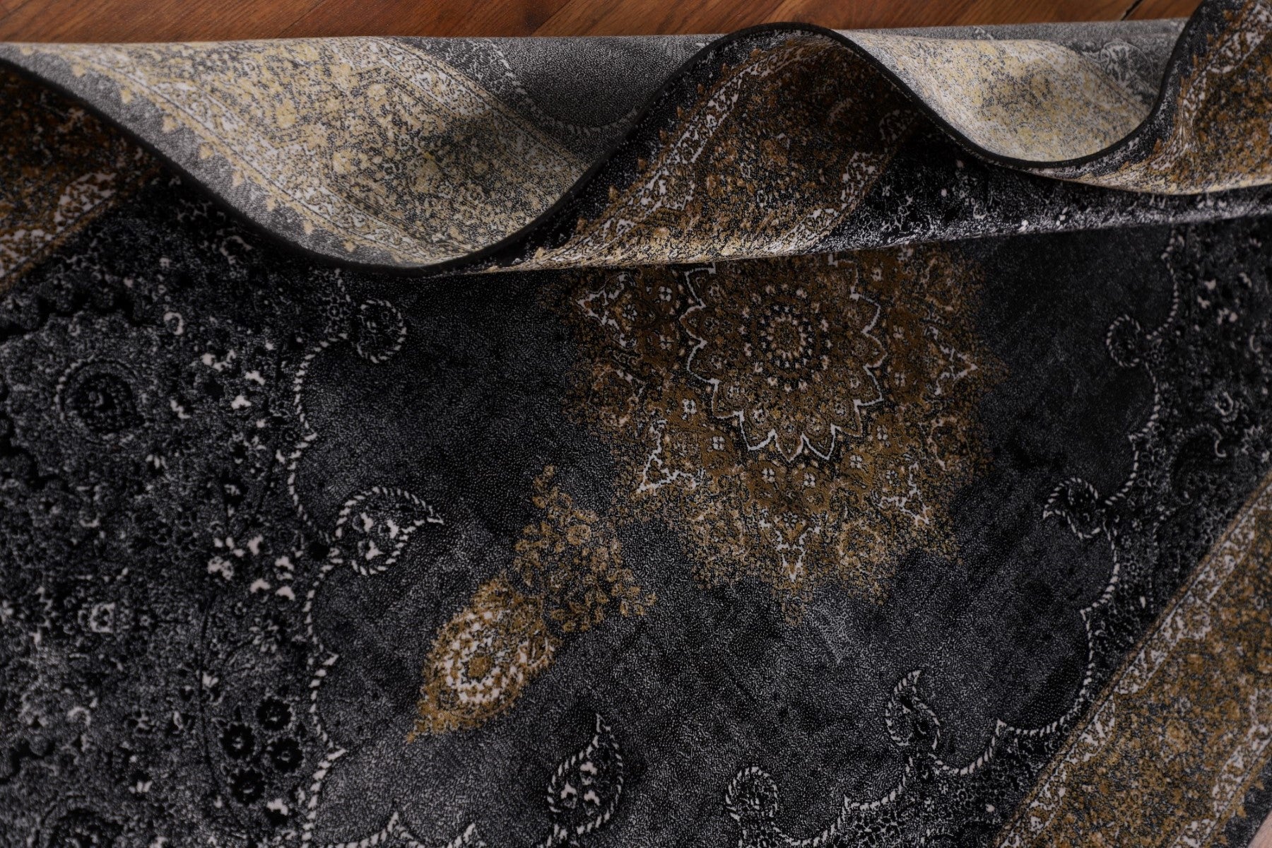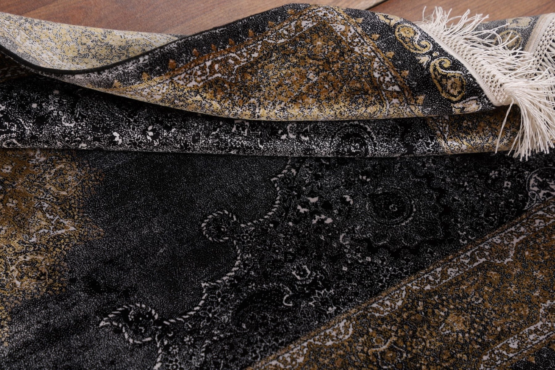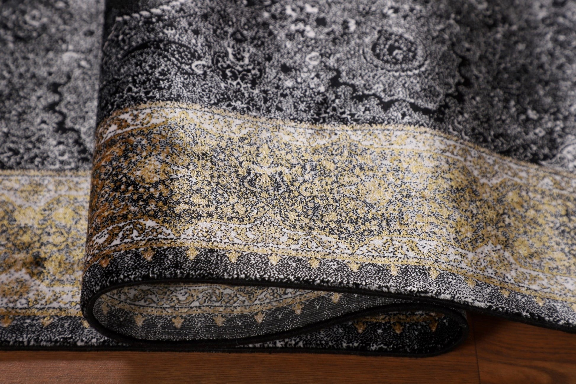 Gray & Black Traditional Floral Qum Turkish Rugs