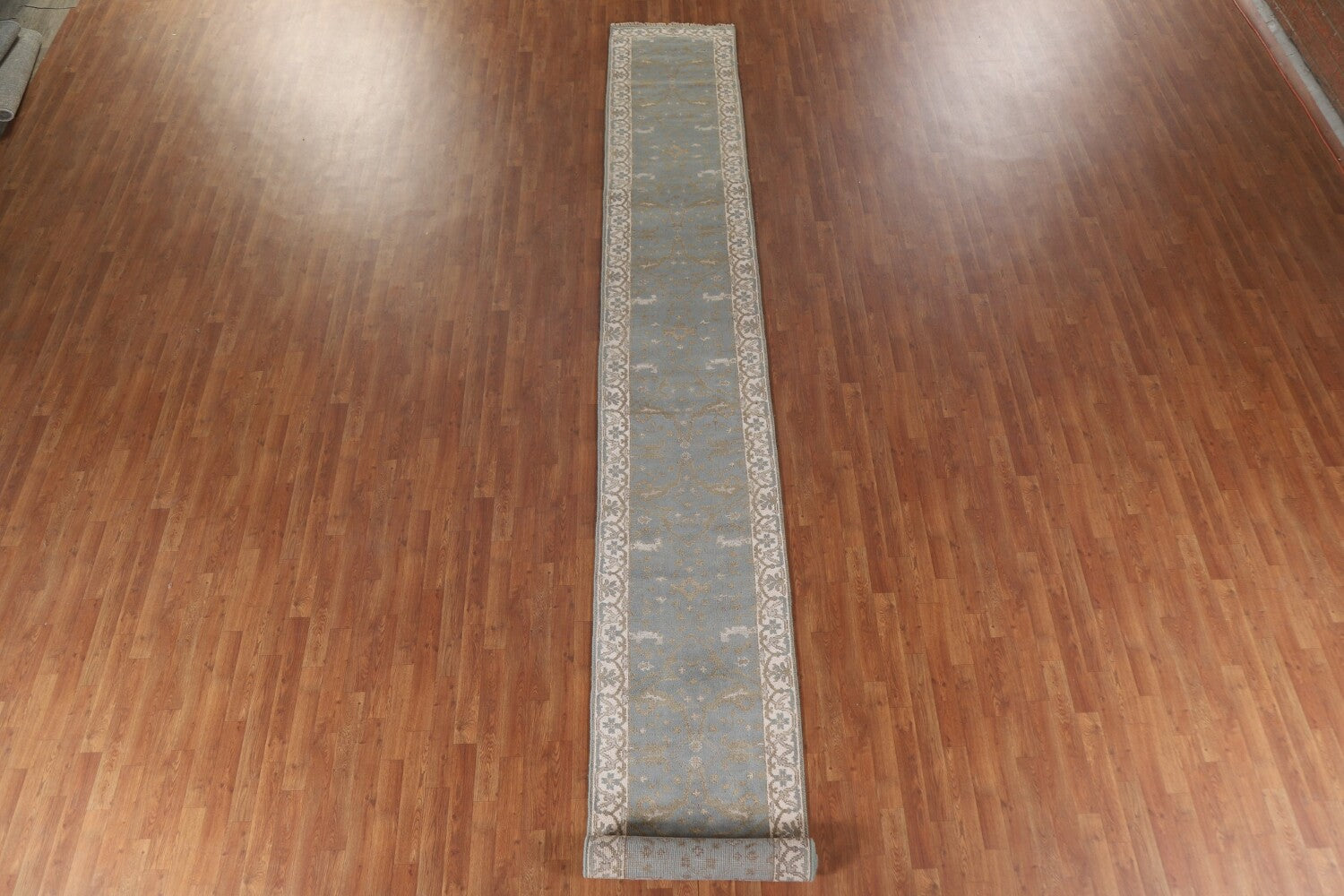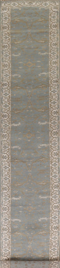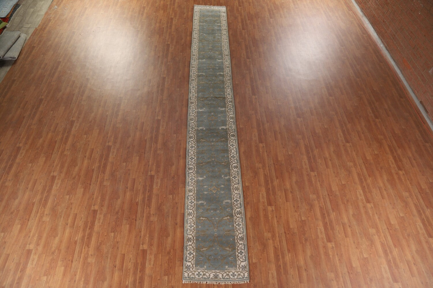 Gray Blue Oushak Oriental Runner Rug 3x19