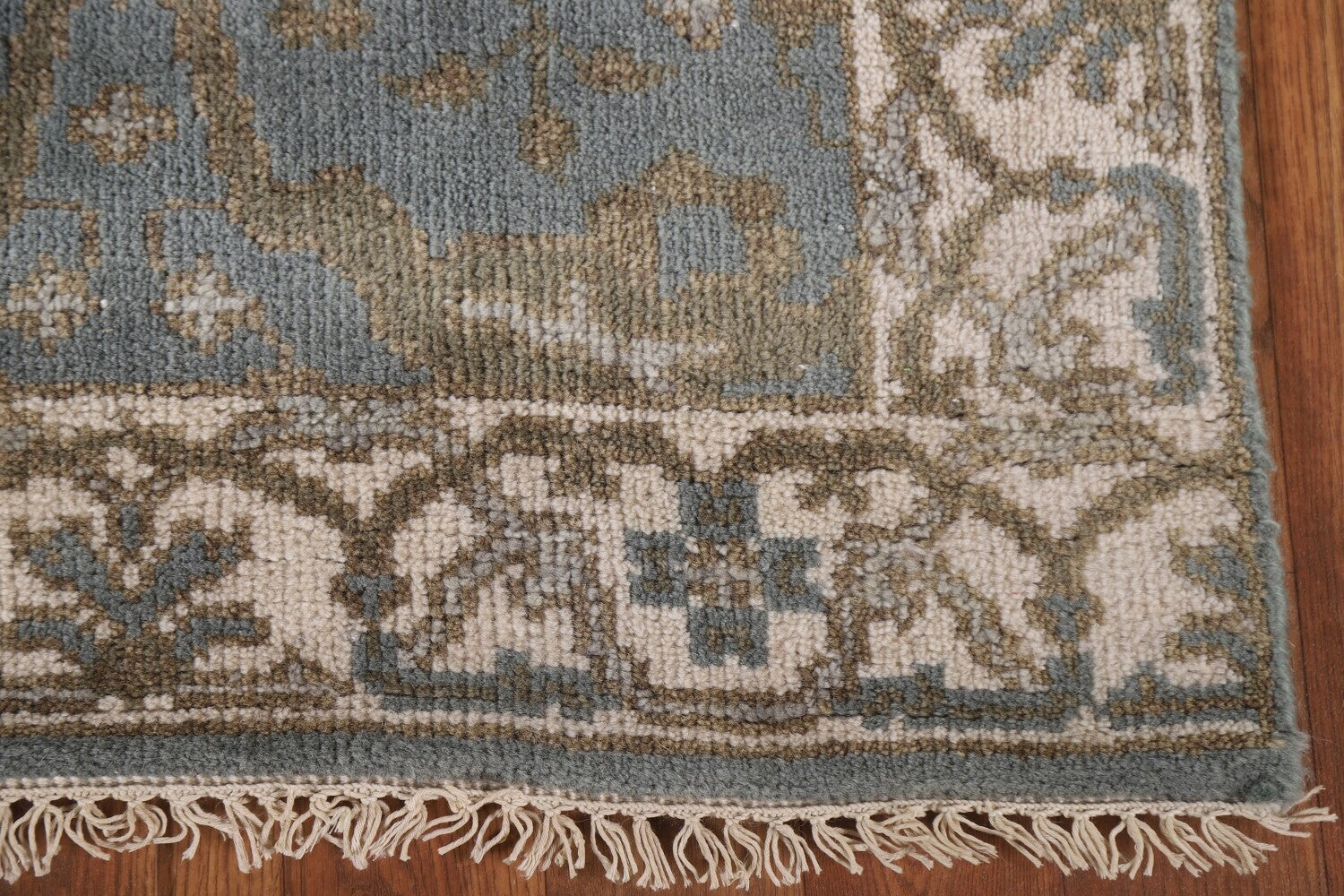 A Beautiful Genuine India Oushak rug is Hand Knotted by skillful weavers in India with 100% Wool Material. This rug is in New, First Quality condition. dimensions are 19' 3'' X 2' 6'' in foot and 587 X 76 in centimeter. the primary color is Navy Blue & Blues.