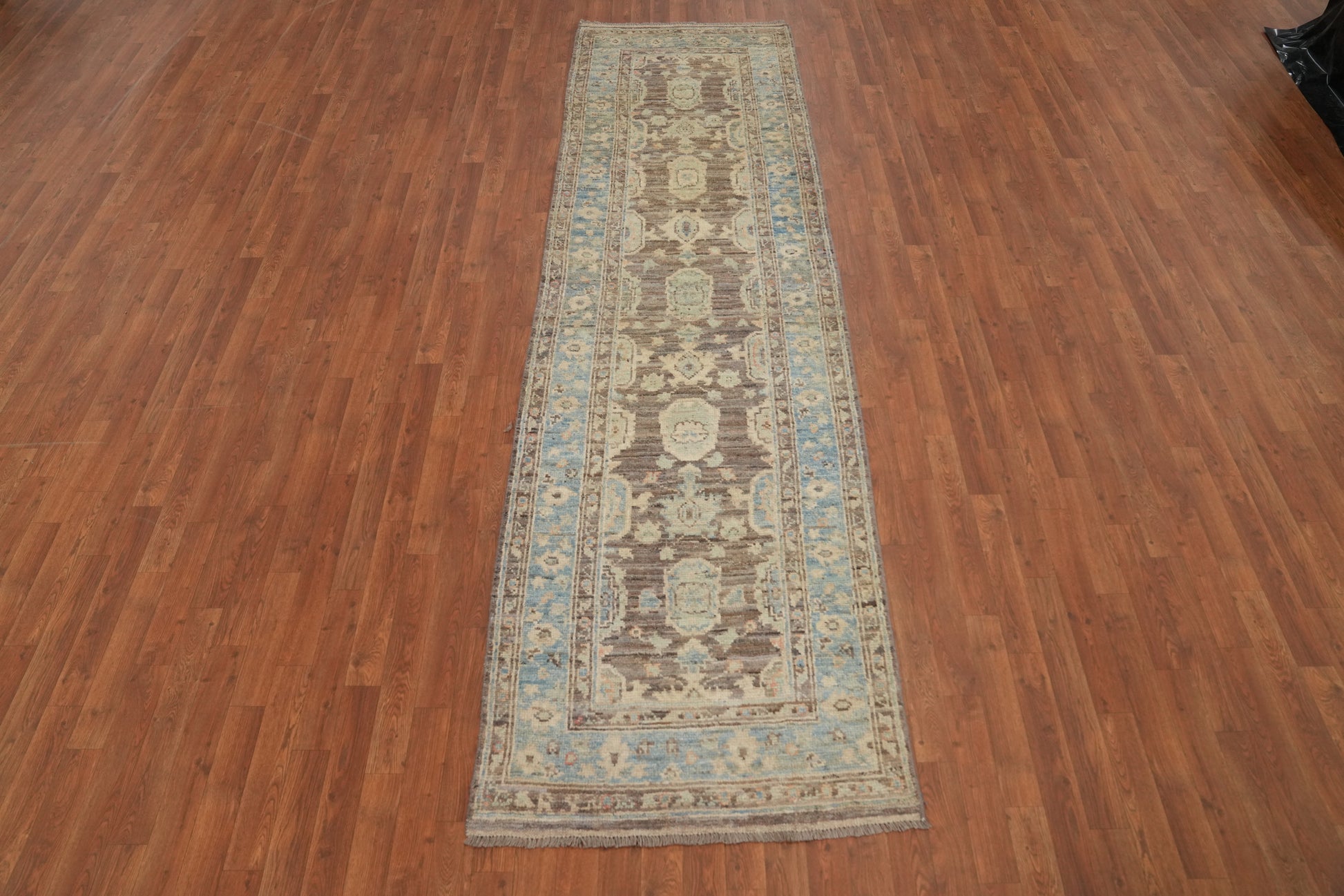 Gray/ Brown Oushak Vegetable Dye Runner Rug 3x11