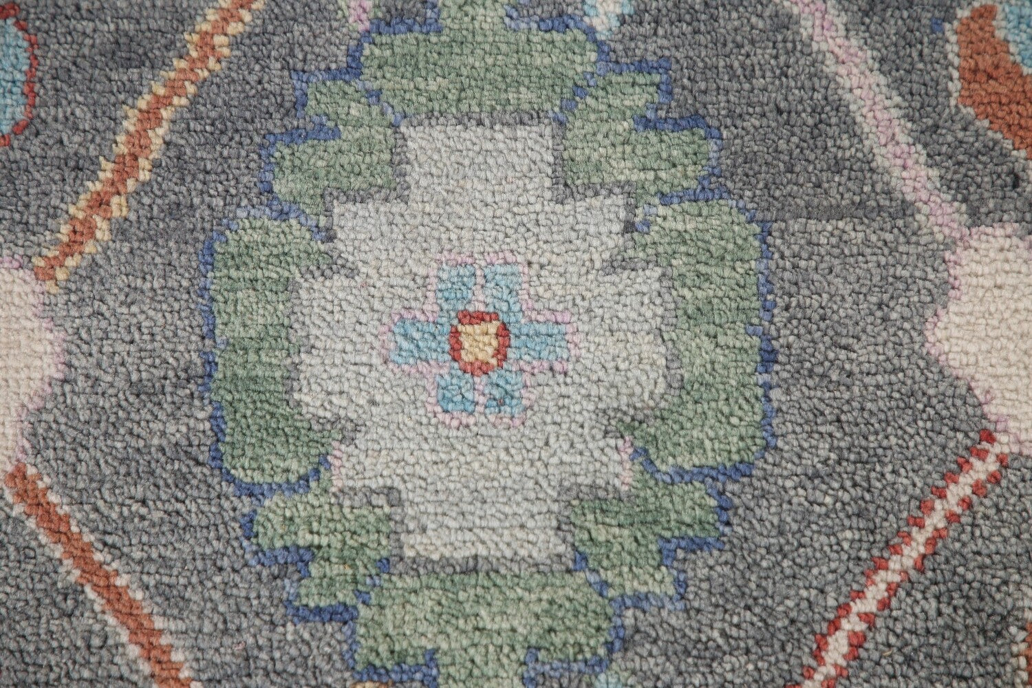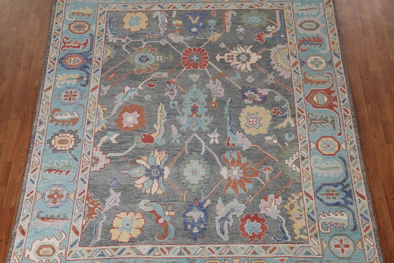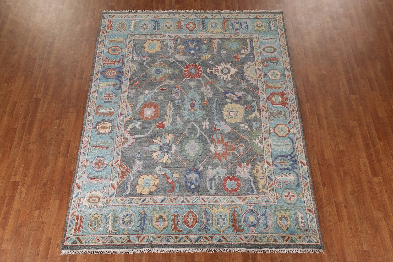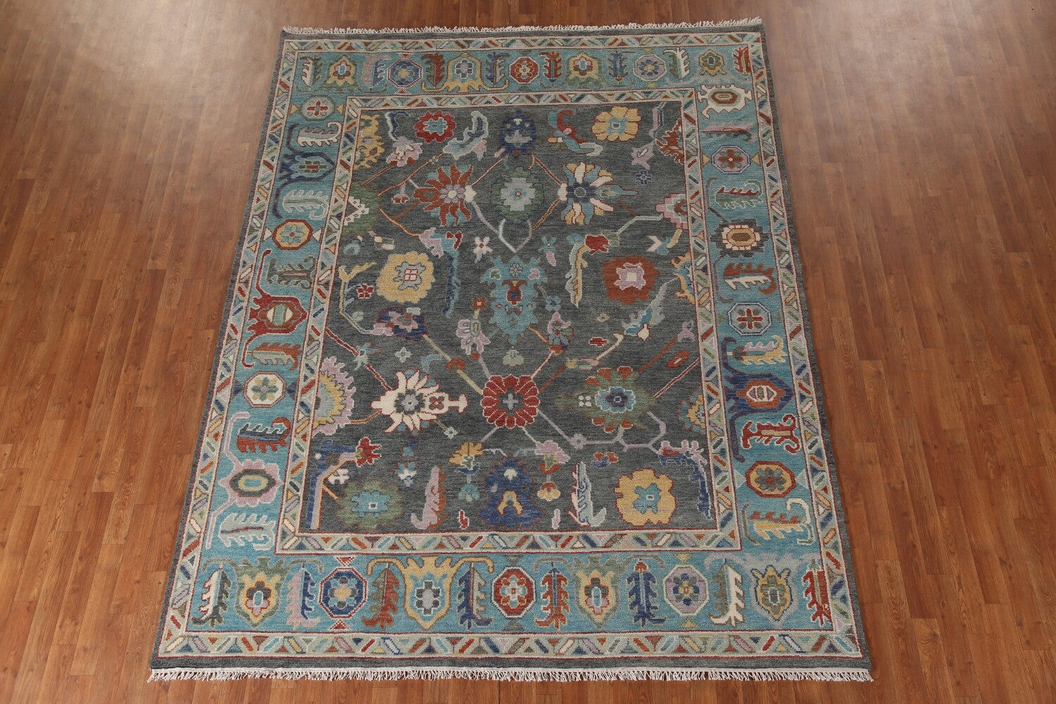 A Beautiful Genuine India Oushak rug is Hand Knotted by skillful weavers in India with 100% Wool Material. This rug is in New, First Quality condition. dimensions are 9' 11'' X 7' 9'' in foot and 302 X 236 in centimeter. the primary color is Greys & Charcoal.