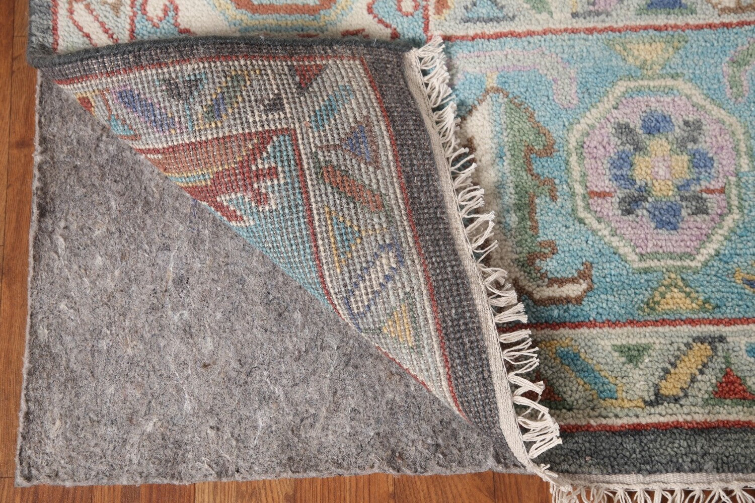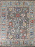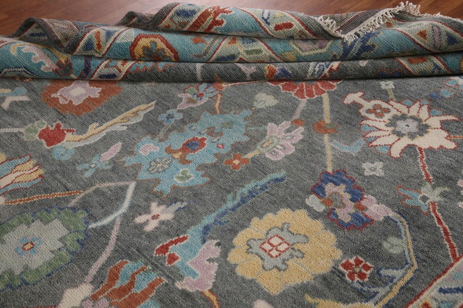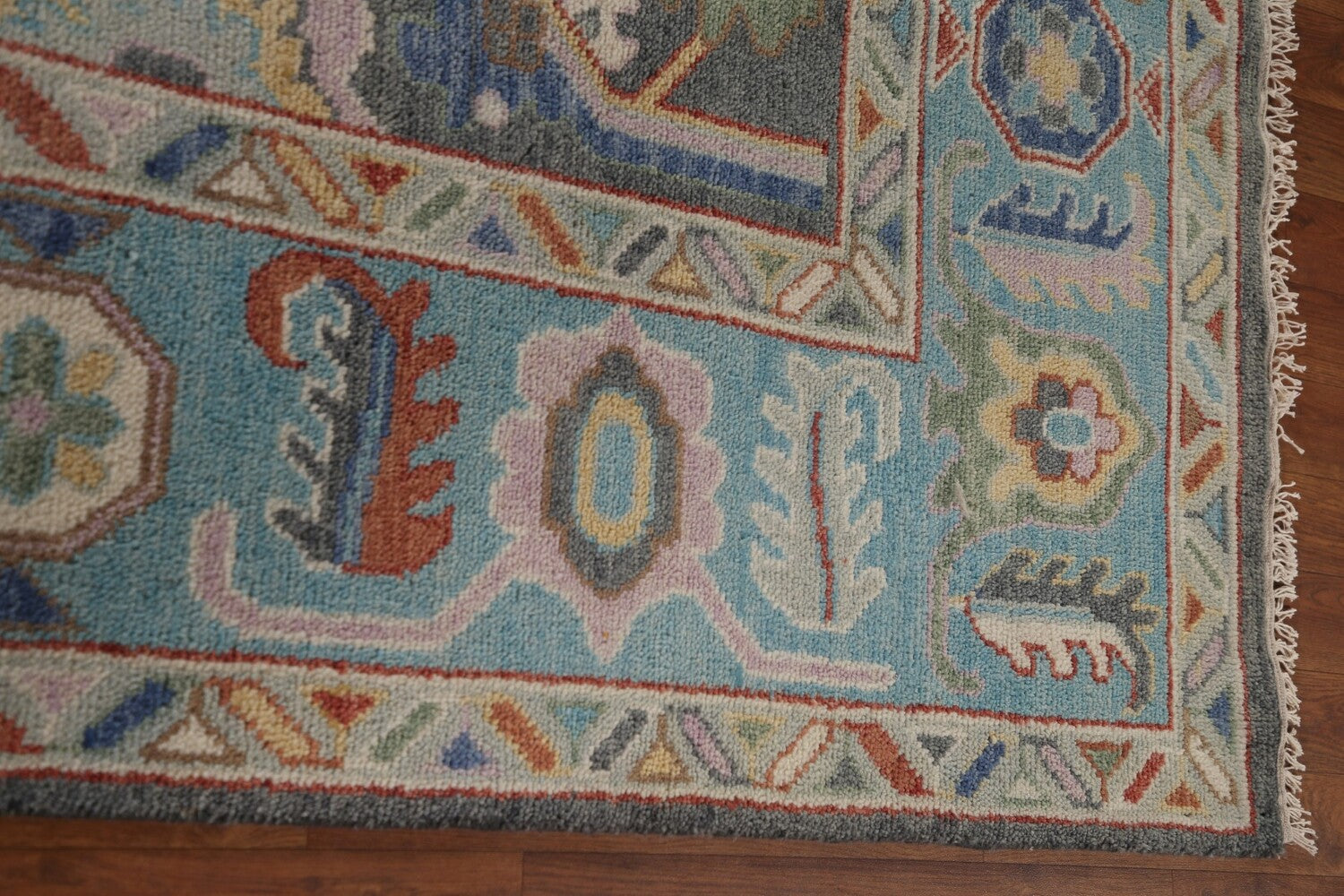 A Beautiful Genuine India Oushak rug is Hand Knotted by skillful weavers in India with 100% Wool Material. This rug is in New, First Quality condition. dimensions are 9' 11'' X 7' 9'' in foot and 302 X 236 in centimeter. the primary color is Greys & Charcoal.