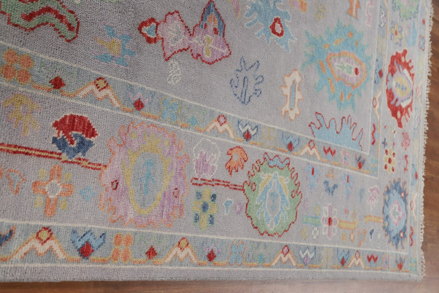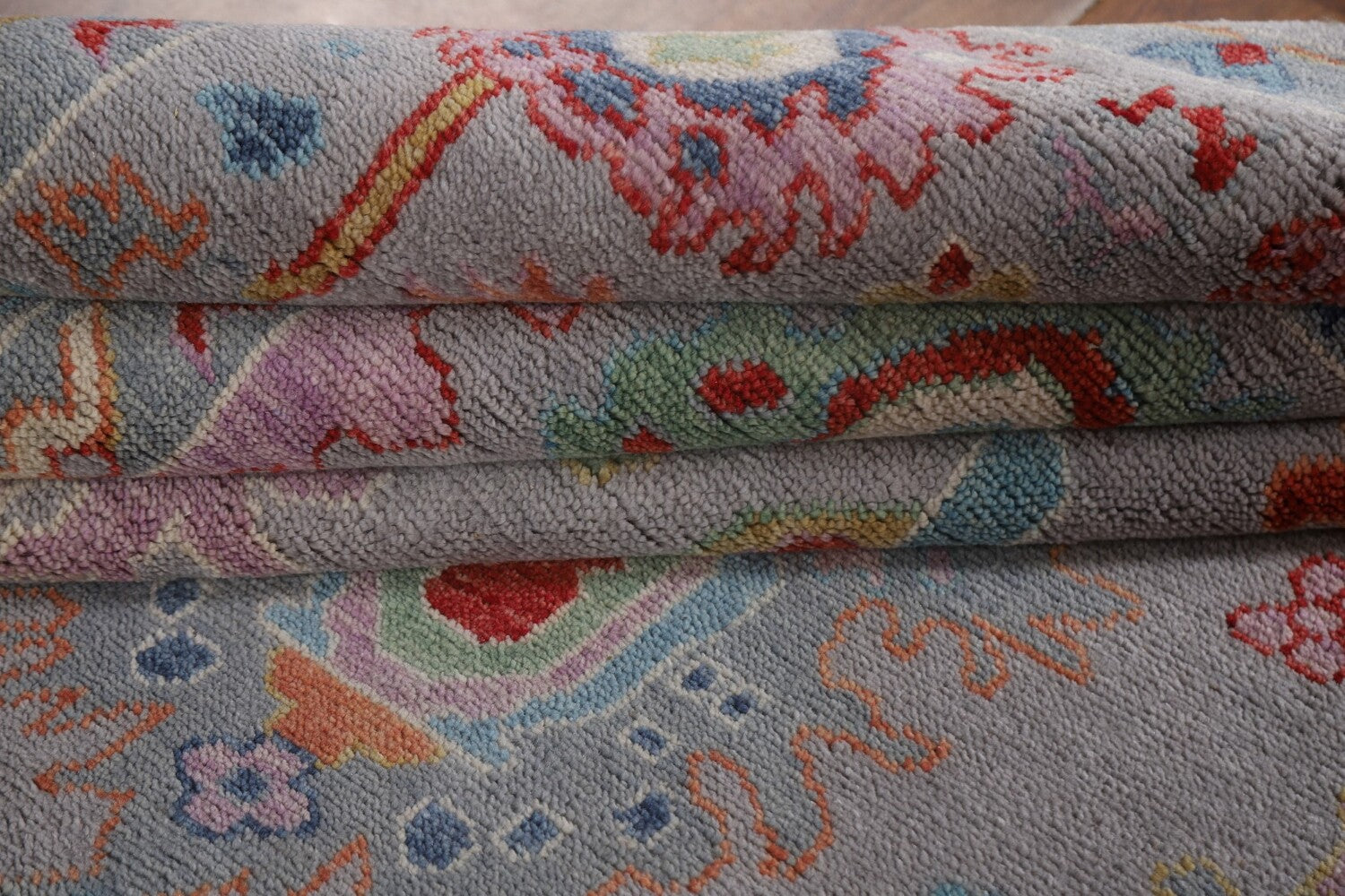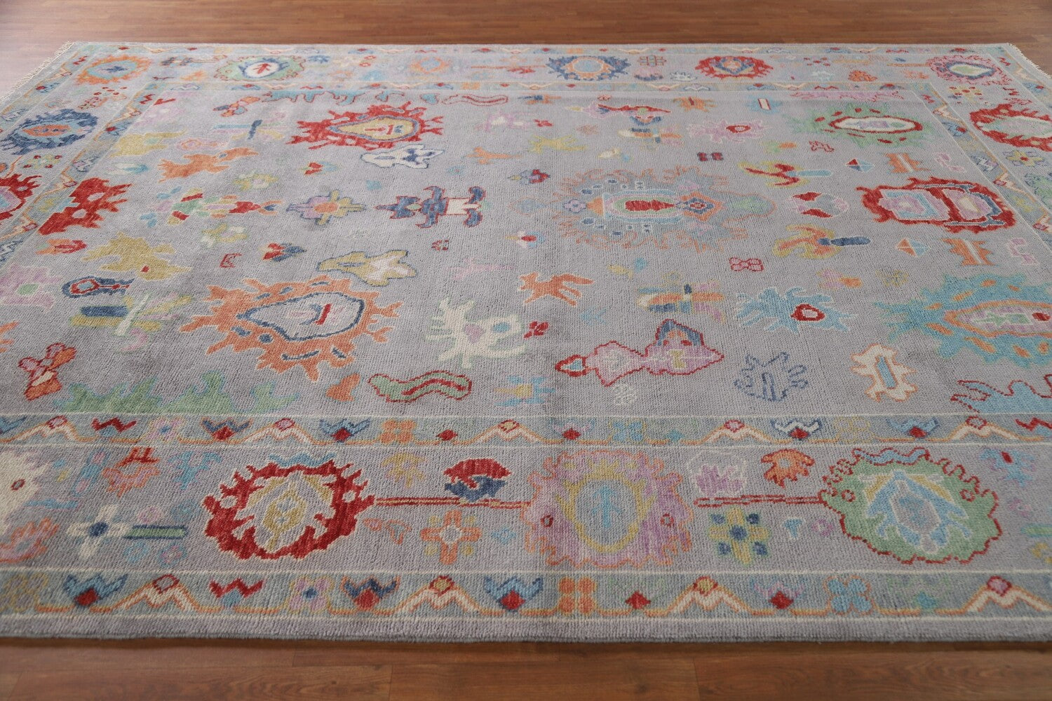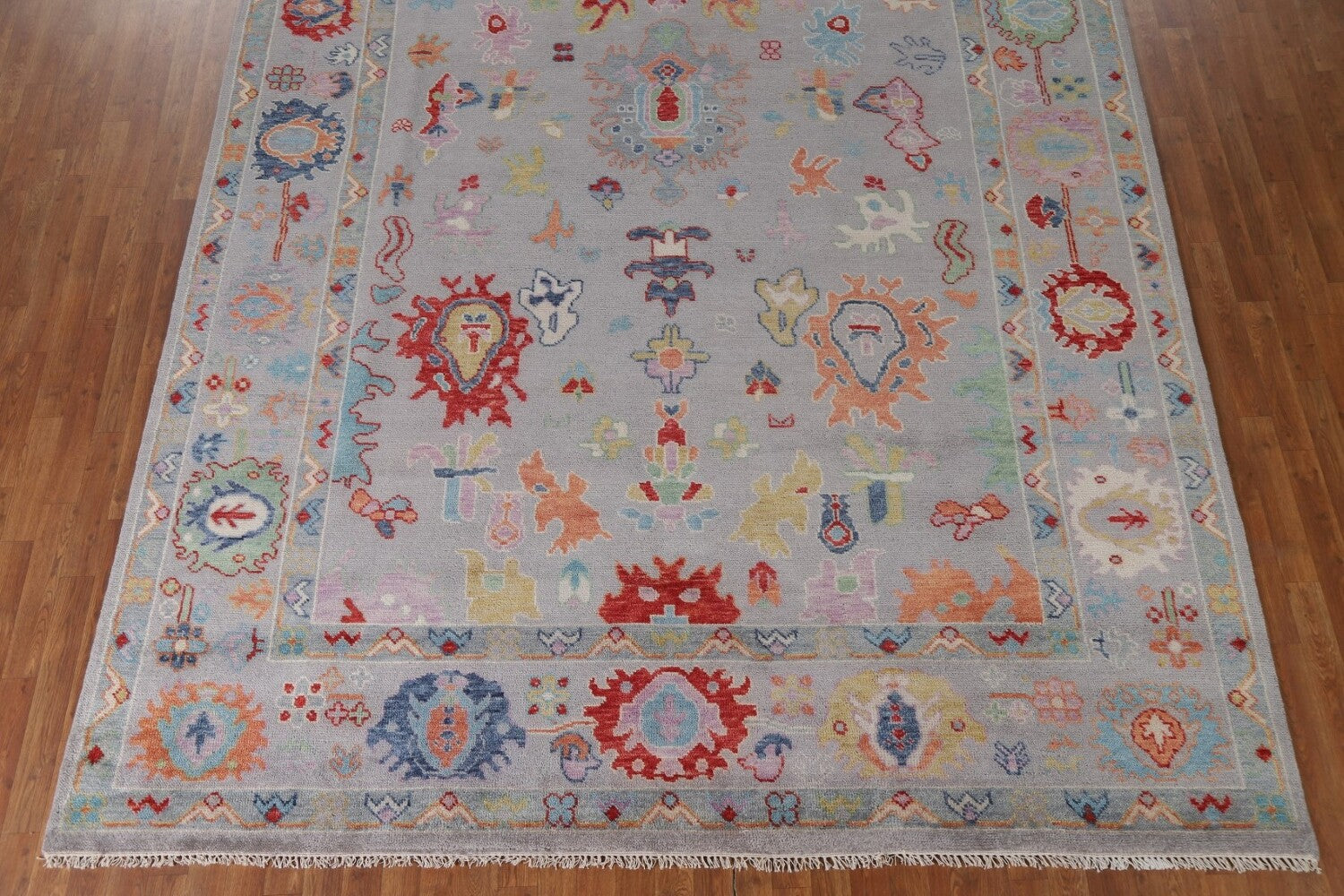 A Beautiful Genuine India Oushak rug is Hand Knotted by skillful weavers in India with 100% Wool Material. This rug is in New, First Quality condition. dimensions are 11' 11'' X 8' 11'' in foot and 363 X 272 in centimeter. the primary color is Greys & Charcoal.