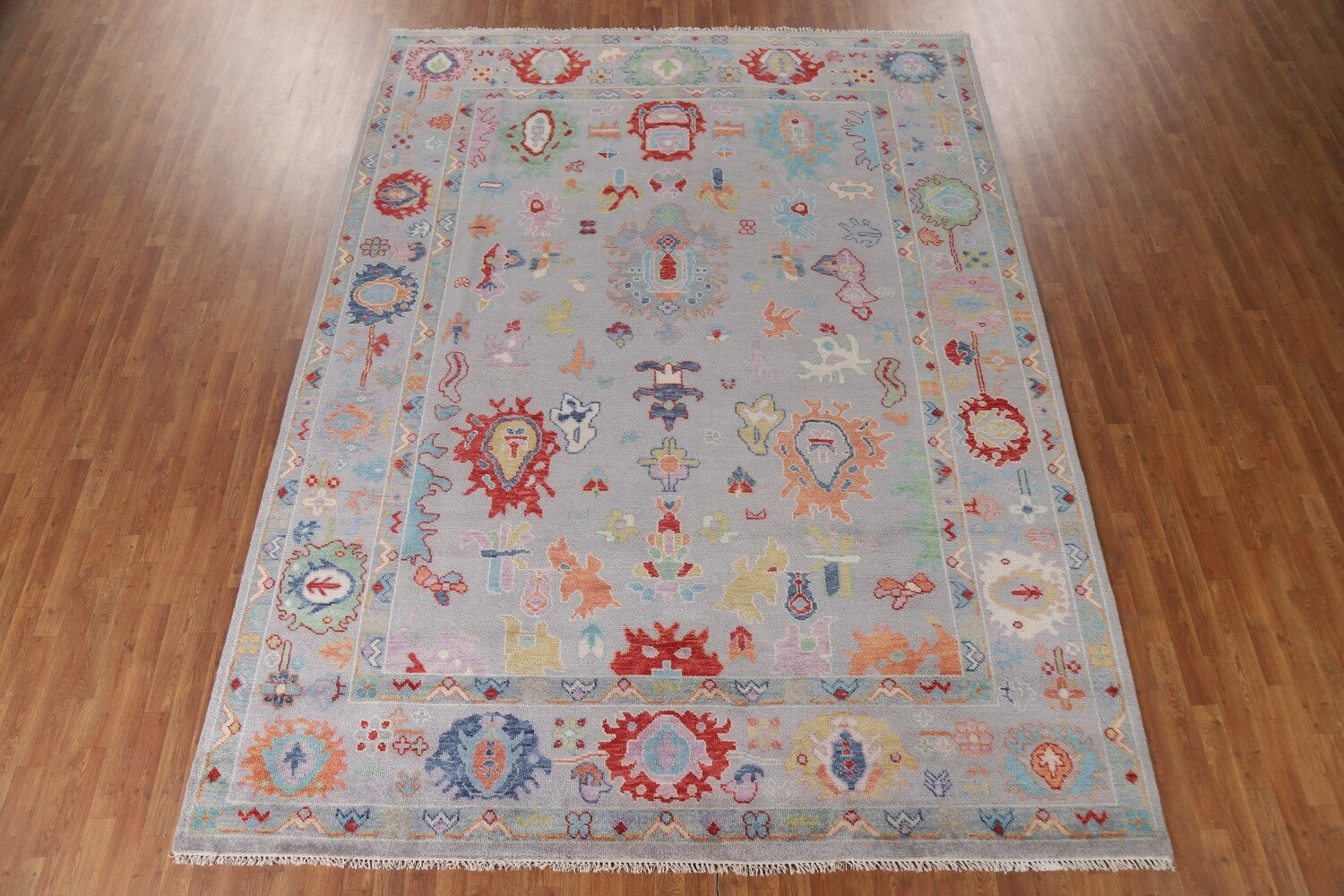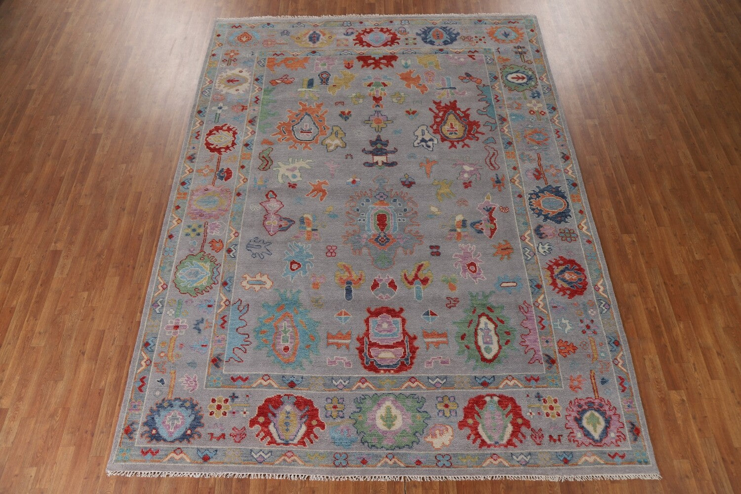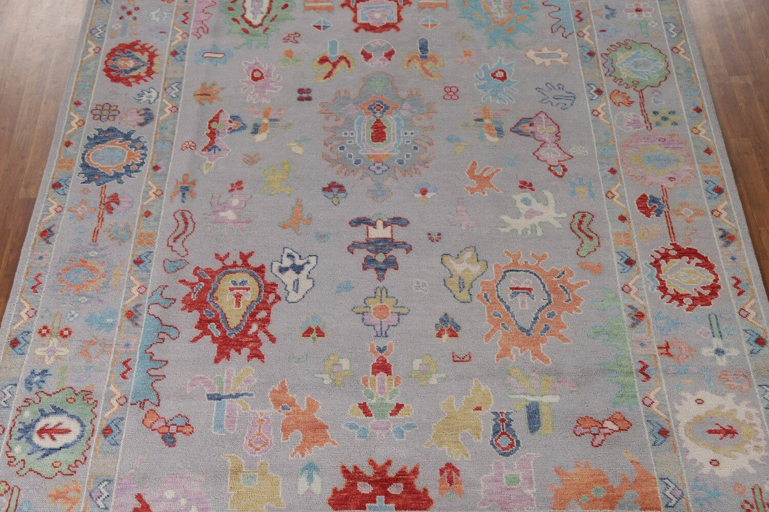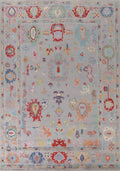 A Beautiful Genuine India Oushak rug is Hand Knotted by skillful weavers in India with 100% Wool Material. This rug is in New, First Quality condition. dimensions are 11' 11'' X 8' 11'' in foot and 363 X 272 in centimeter. the primary color is Greys & Charcoal.