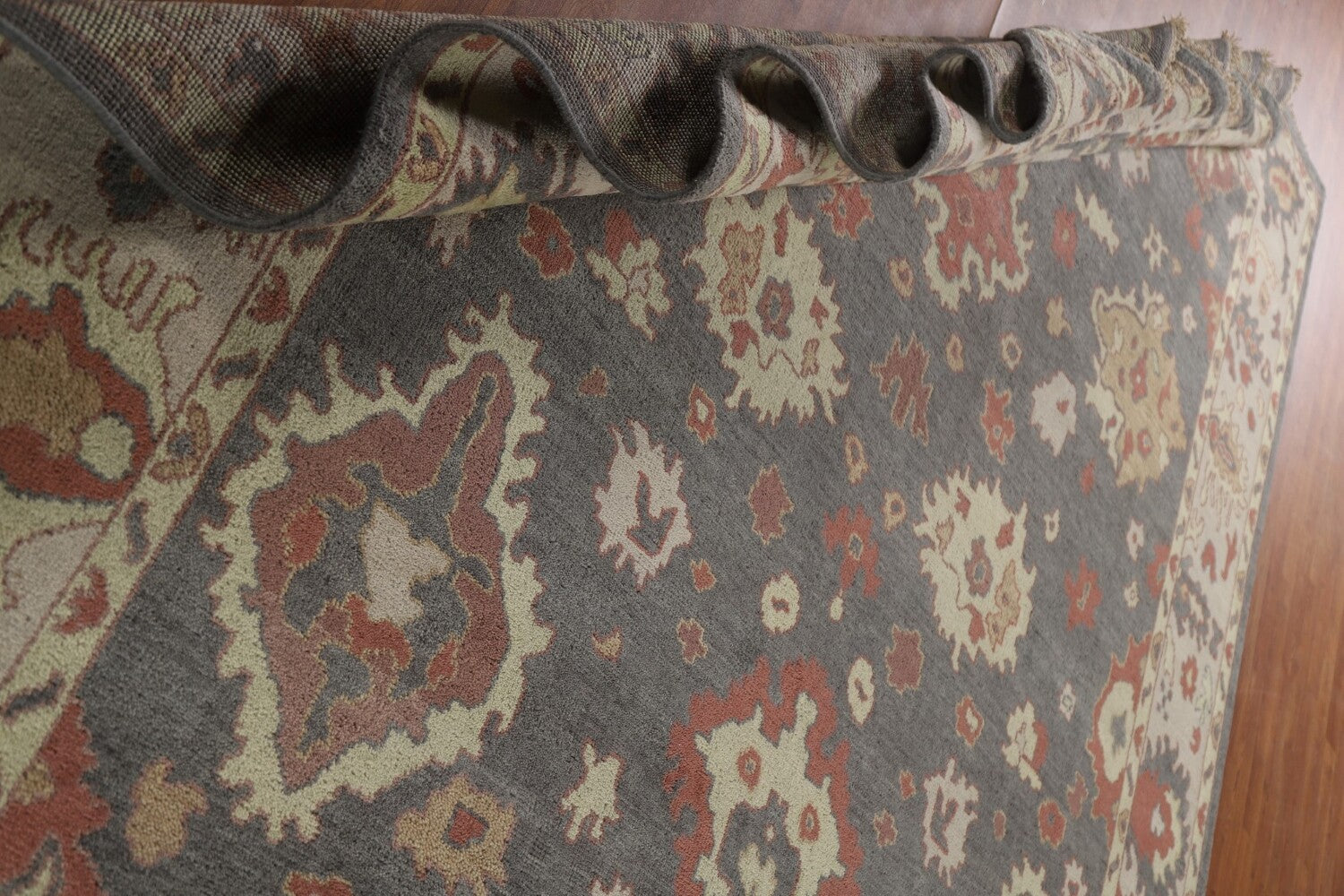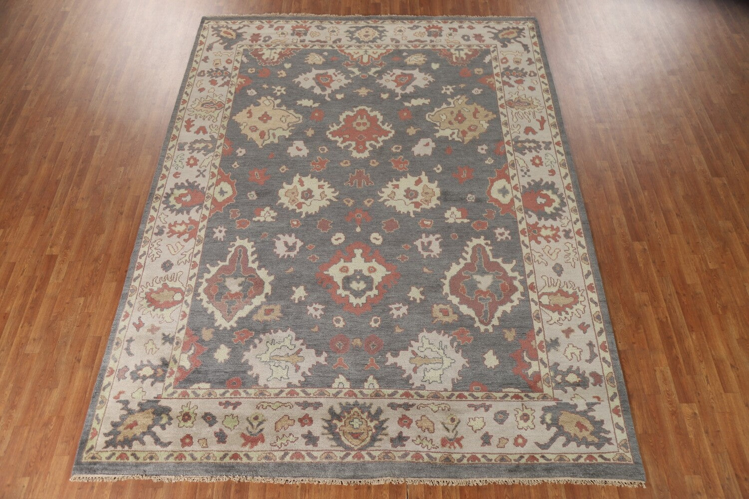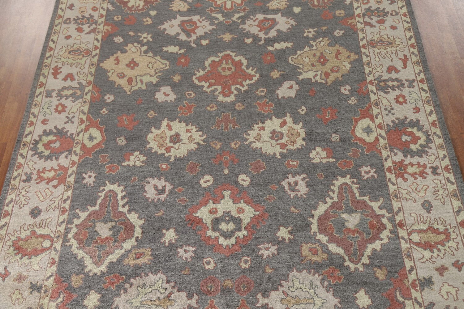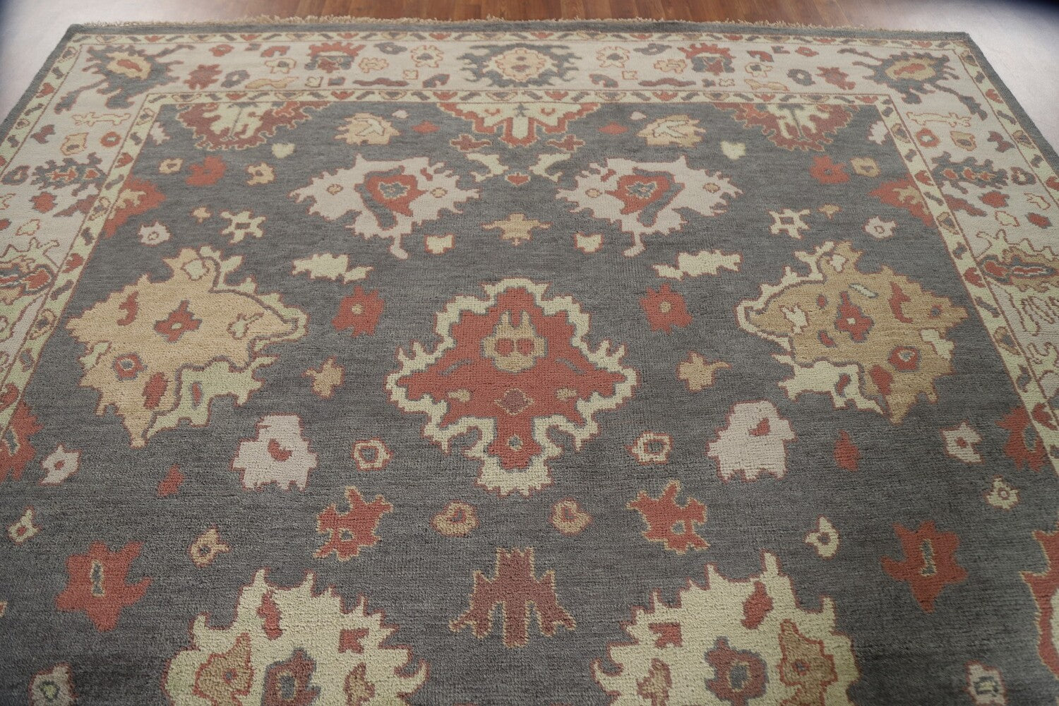 A Beautiful Genuine India Oushak rug is Hand Knotted by skillful weavers in India with 100% Wool Material. This rug is in New, First Quality condition. dimensions are 11' 9'' X 9' 2'' in foot and 358 X 279 in centimeter. the primary color is Greys & Charcoal.