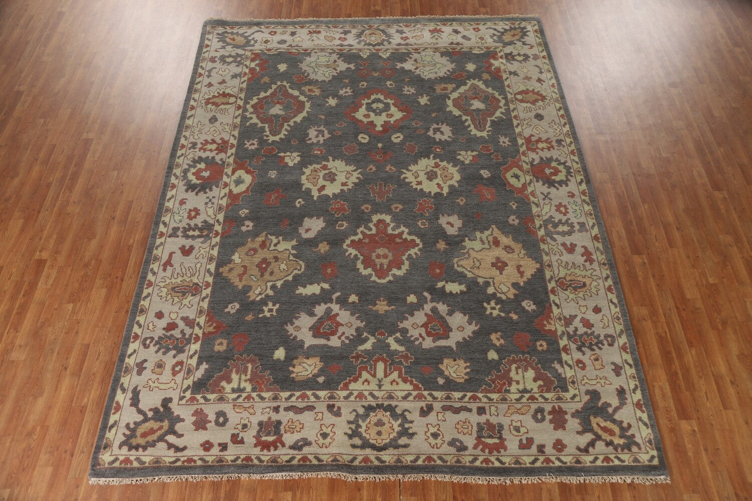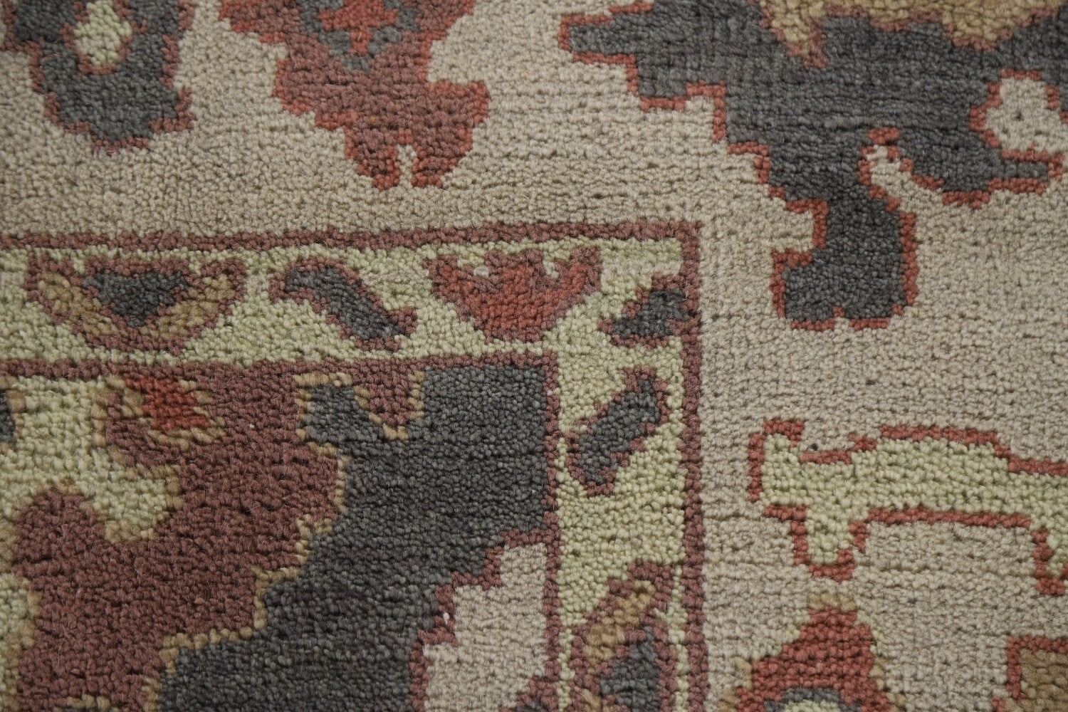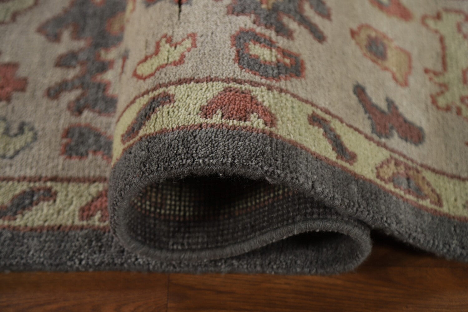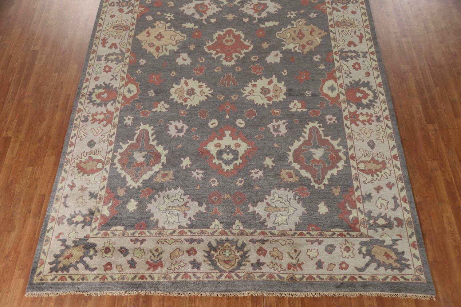 A Beautiful Genuine India Oushak rug is Hand Knotted by skillful weavers in India with 100% Wool Material. This rug is in New, First Quality condition. dimensions are 11' 9'' X 9' 2'' in foot and 358 X 279 in centimeter. the primary color is Greys & Charcoal.