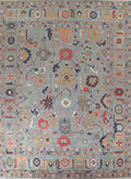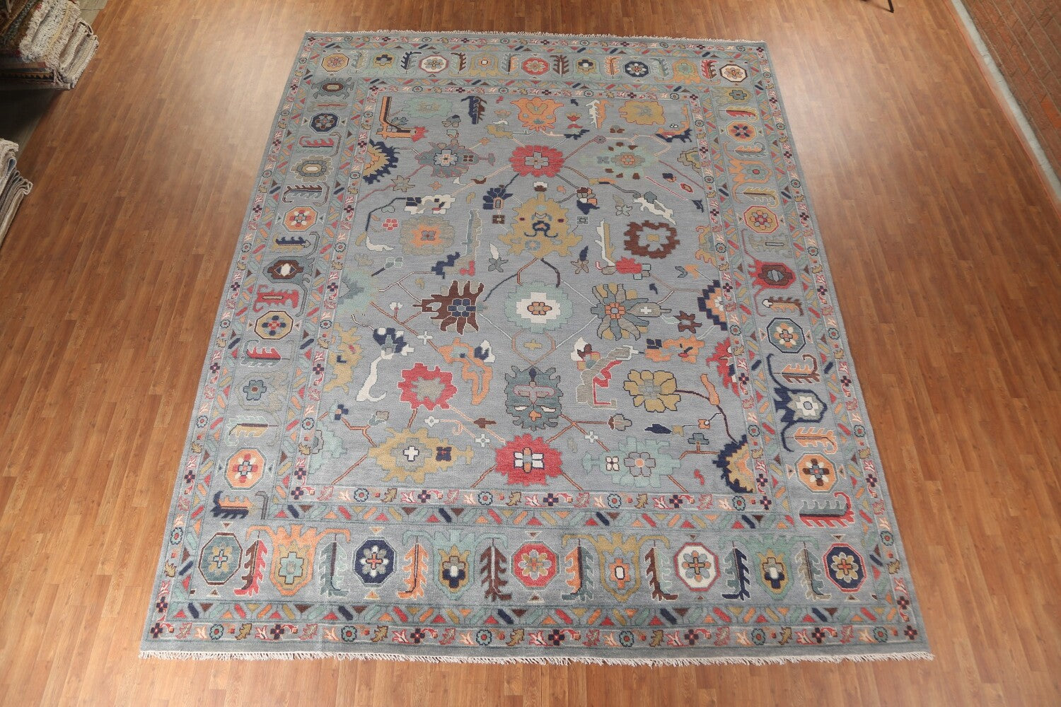 A Beautiful Genuine India Oushak rug is Hand Knotted by skillful weavers in India with 100% Wool Material. This rug is in New, First Quality condition. dimensions are 14' 11'' X 12' 2'' in foot and 455 X 371 in centimeter. the primary color is Greys & Charcoal.