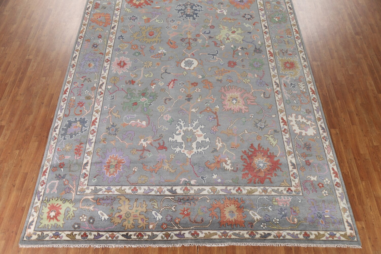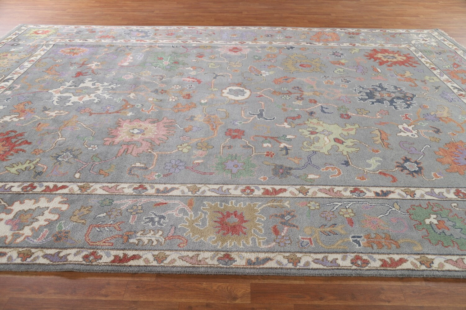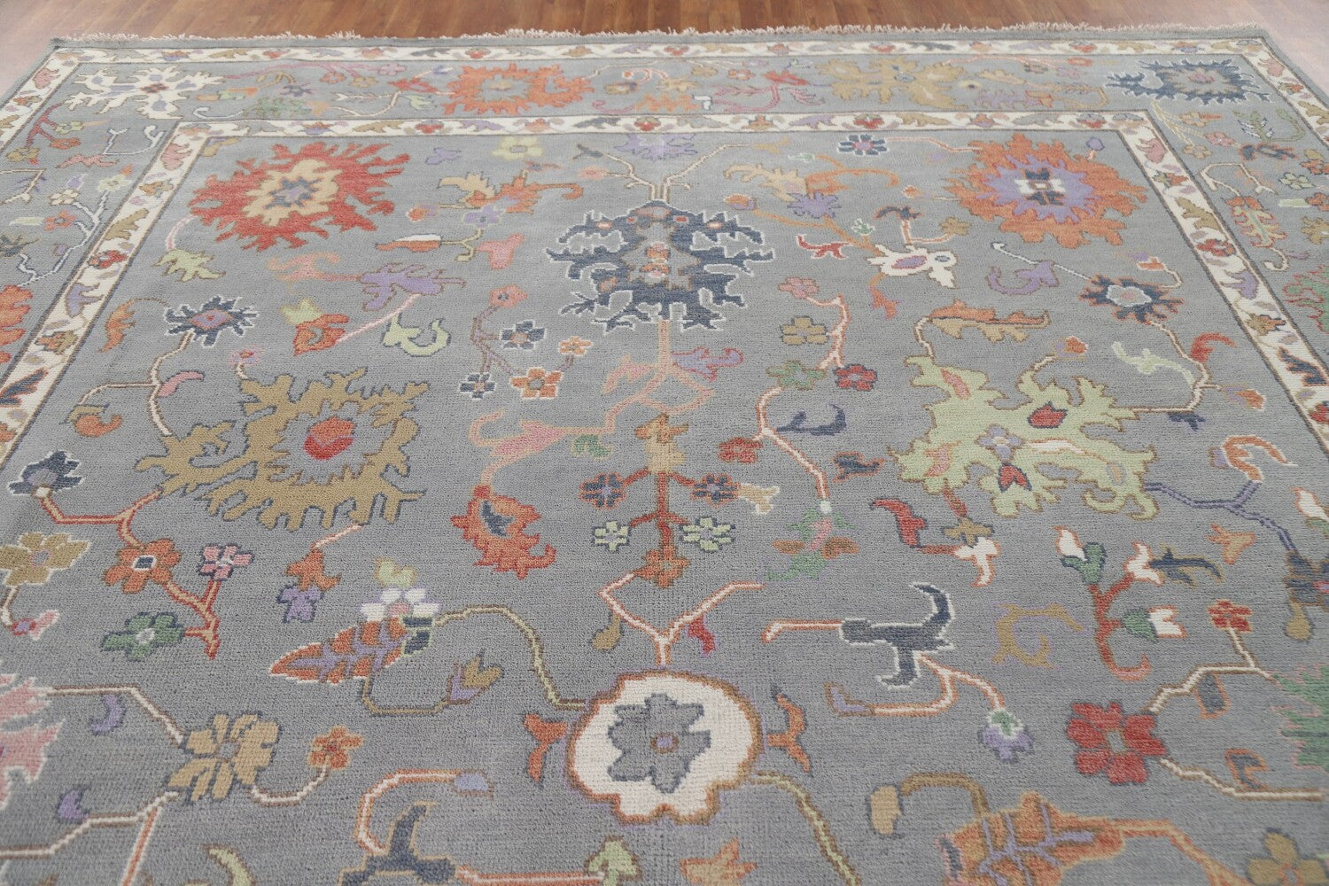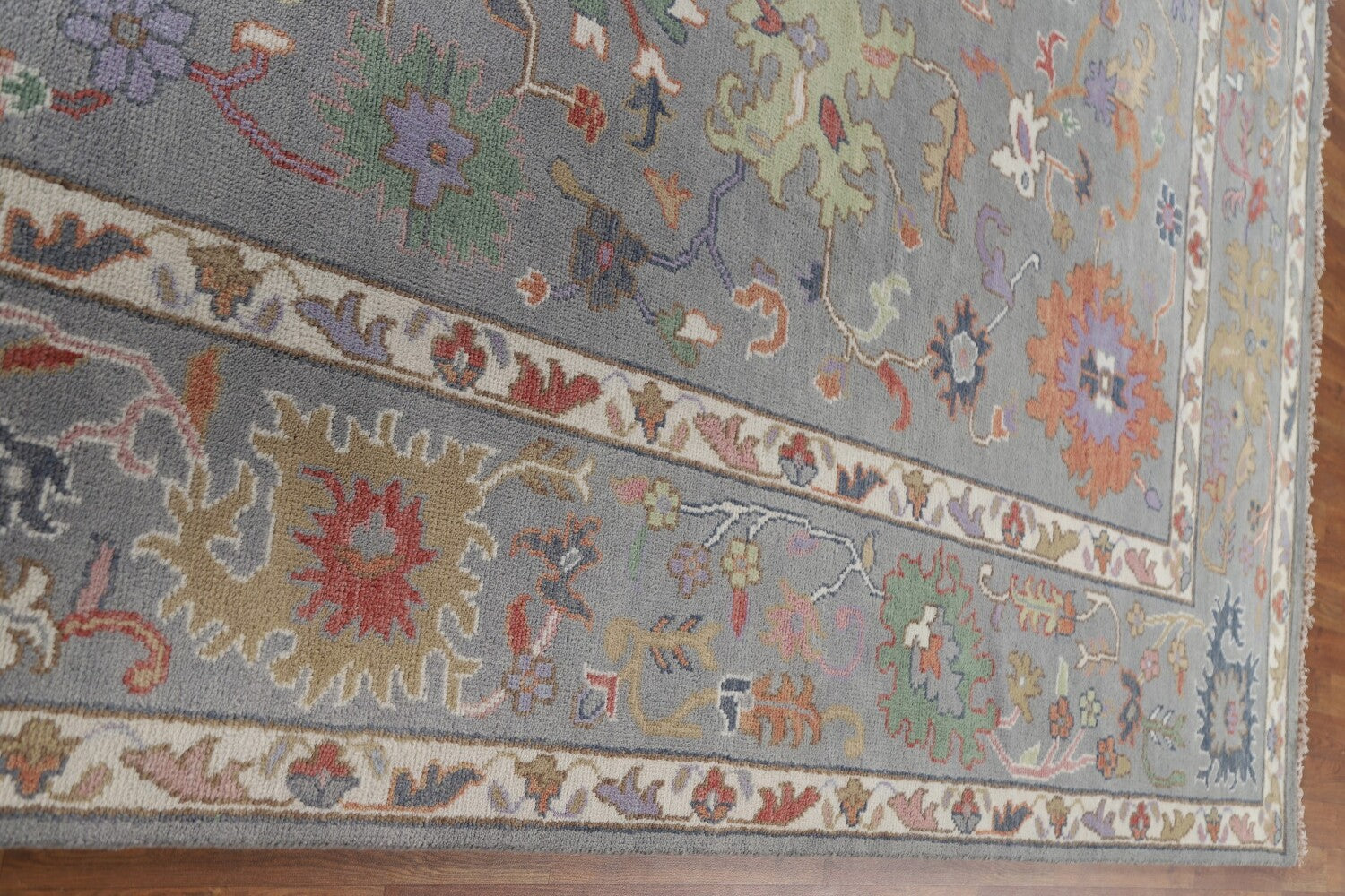 A Beautiful Genuine India Oushak rug is Hand Knotted by skillful weavers in India with 100% Wool Material. This rug is in New, First Quality condition. dimensions are 13' 10'' X 9' 9'' in foot and 422 X 297 in centimeter. the primary color is Greys & Charcoal.