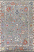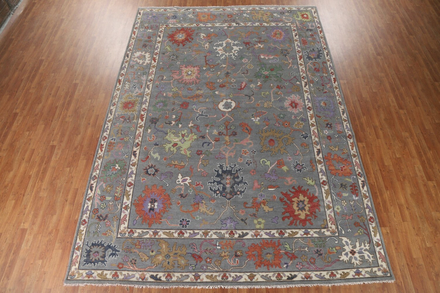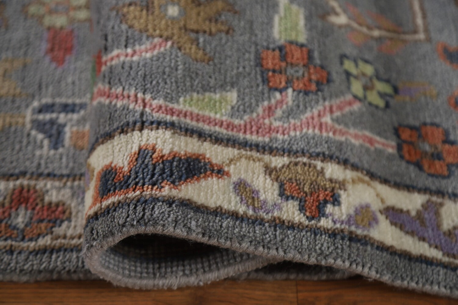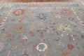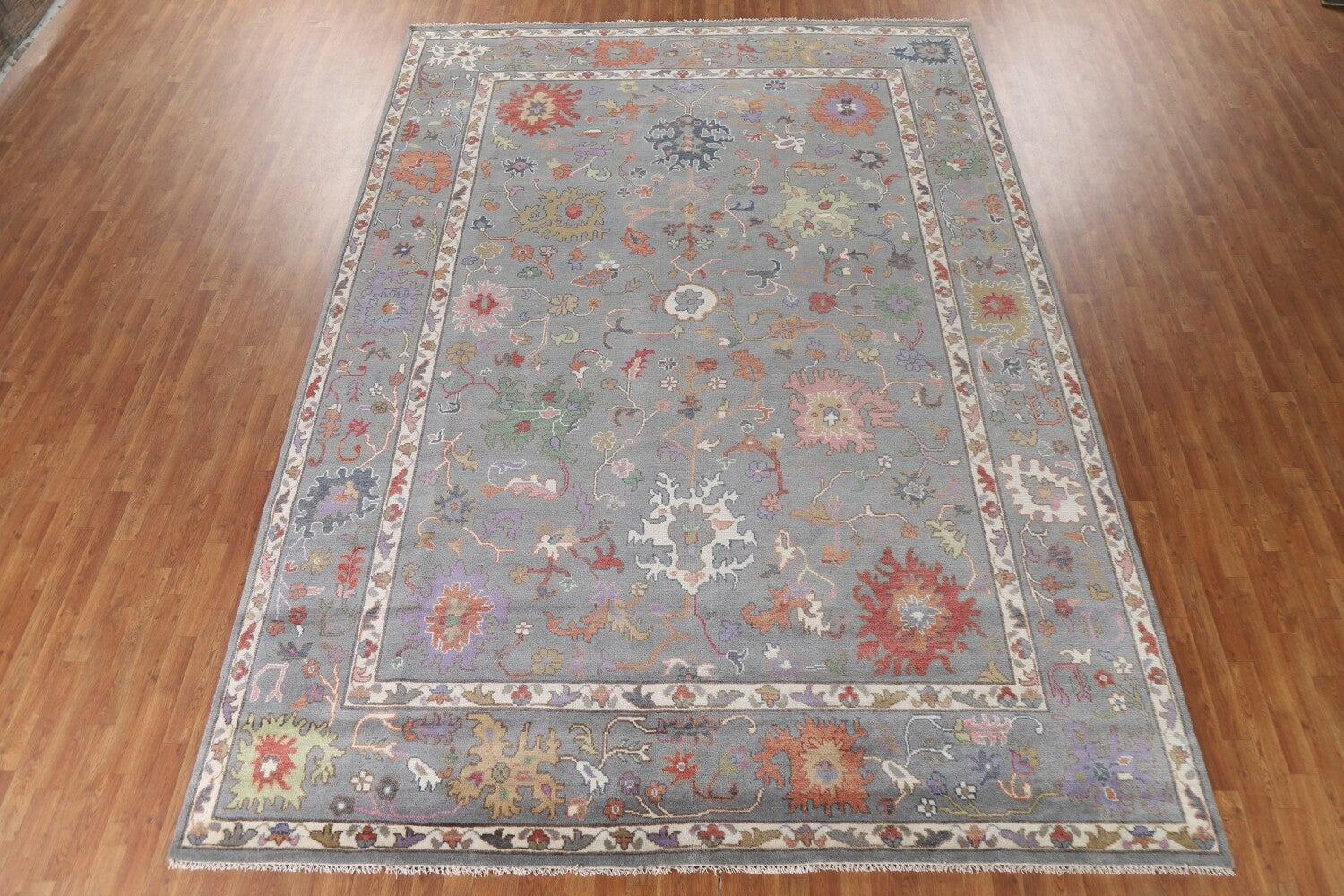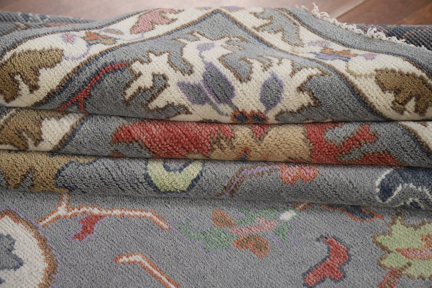 A Beautiful Genuine India Oushak rug is Hand Knotted by skillful weavers in India with 100% Wool Material. This rug is in New, First Quality condition. dimensions are 13' 10'' X 9' 9'' in foot and 422 X 297 in centimeter. the primary color is Greys & Charcoal.