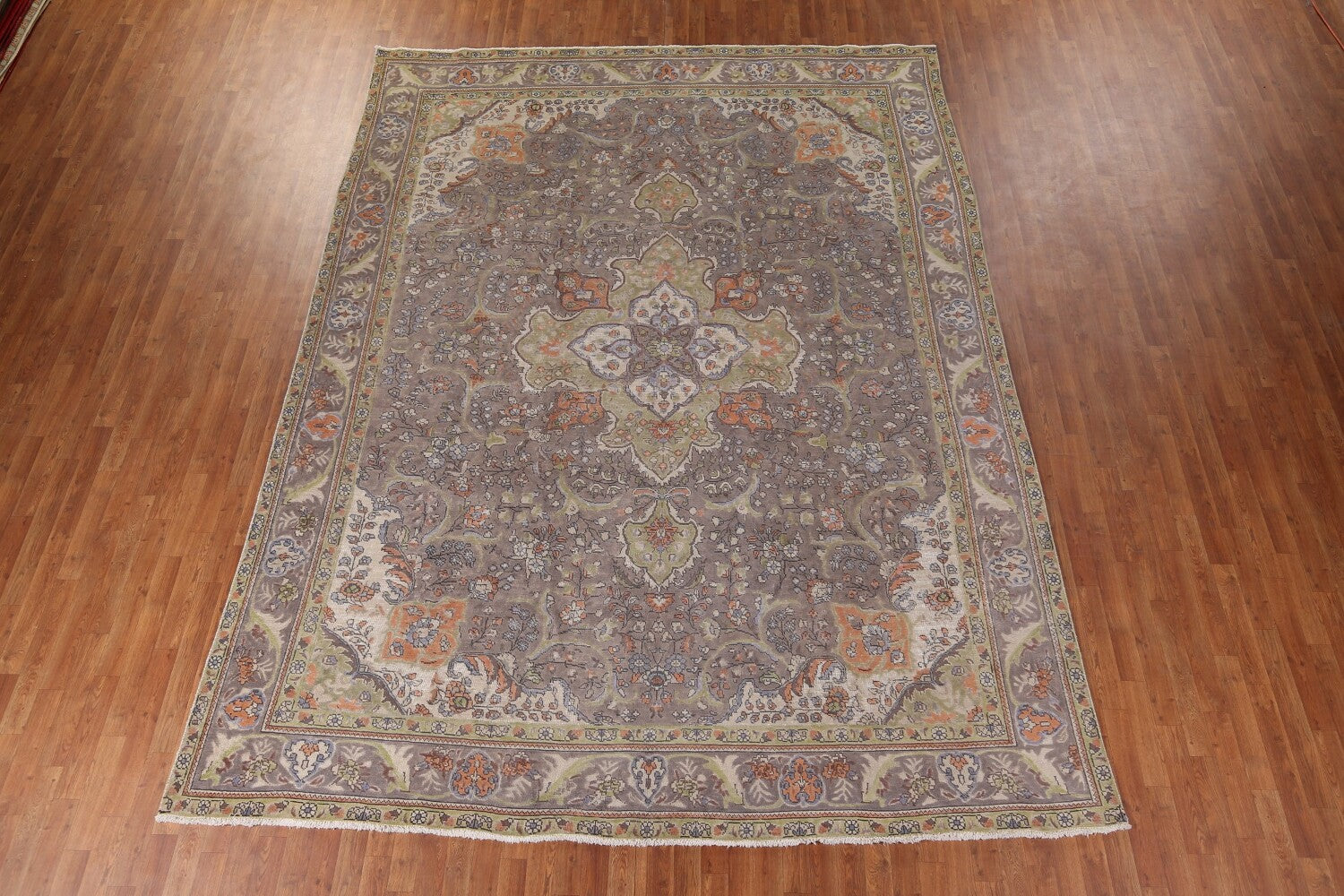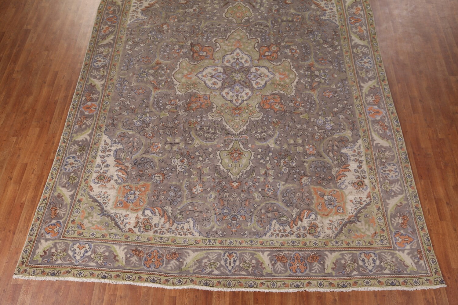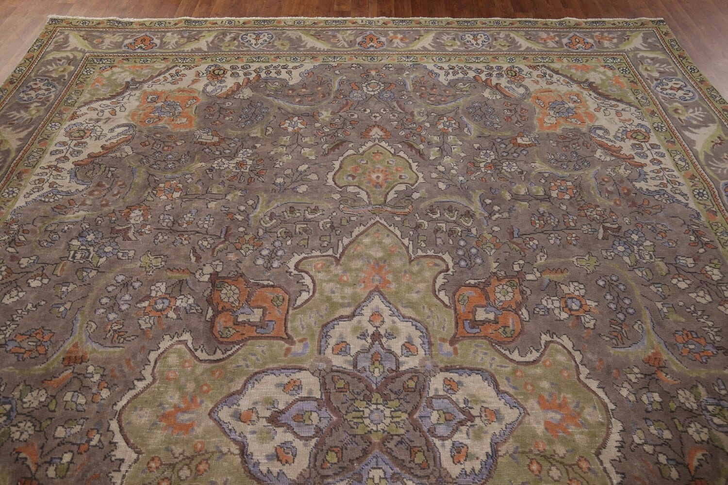 A Beautiful Genuine Persia ( Persia ) Tabriz rug is Hand Knotted by skillful weavers in Persia ( Persia ) with 100% Wool Material. This rug is in Very Good (Evenly Low Pile) condition. dimensions are 12' 9'' X 9' 7'' in foot and 389 X 292 in centimeter. the primary color is Greys & Charcoal.