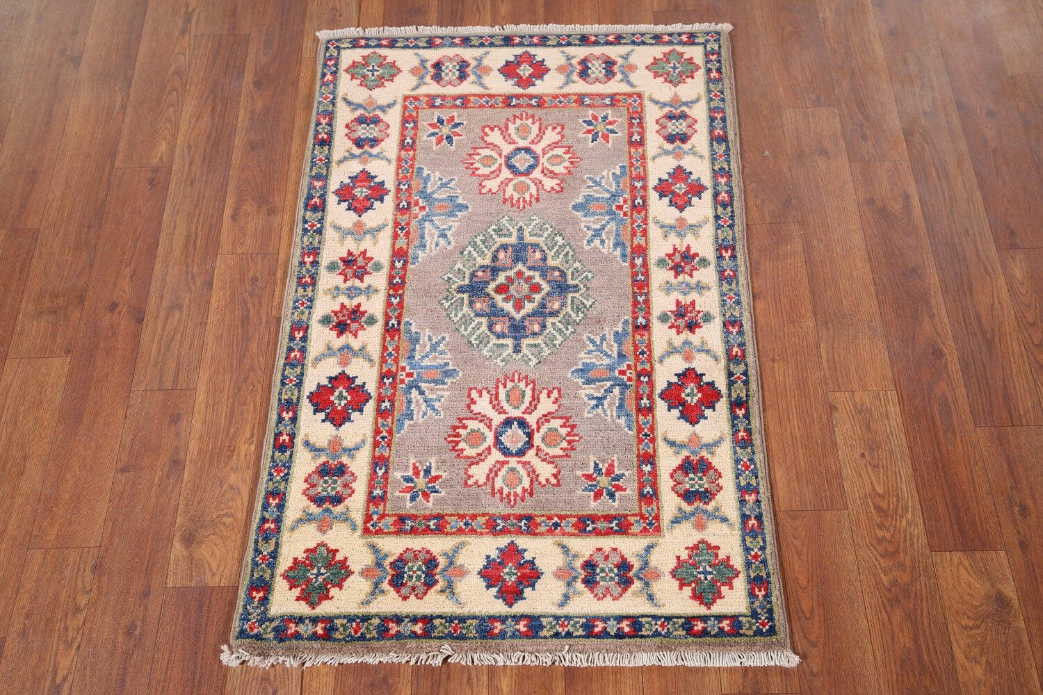 Gray Geometric Kazak Oriental Accent Rug 2x3