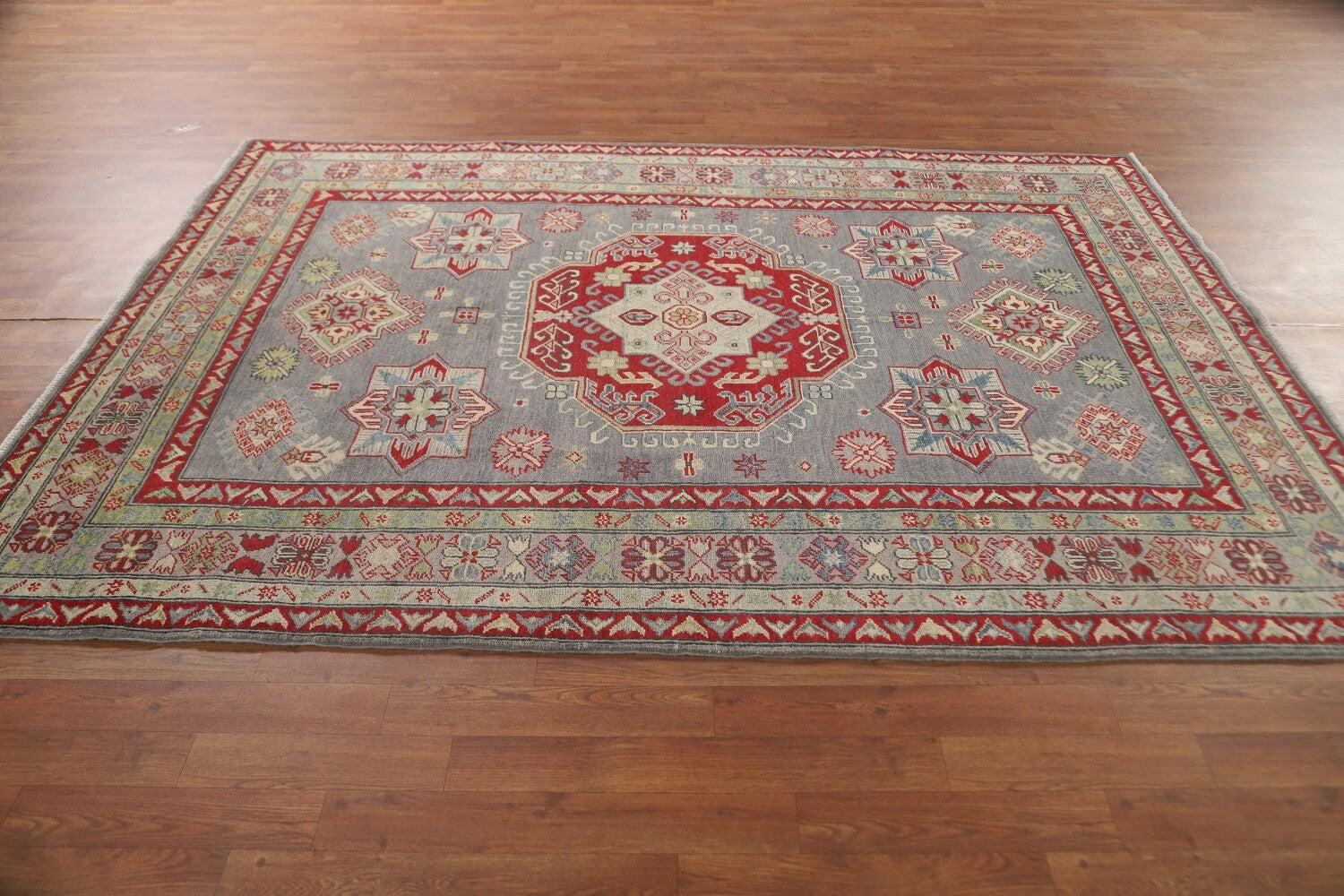 Gray Geometric Kazak Oriental Area Rug 6x8
