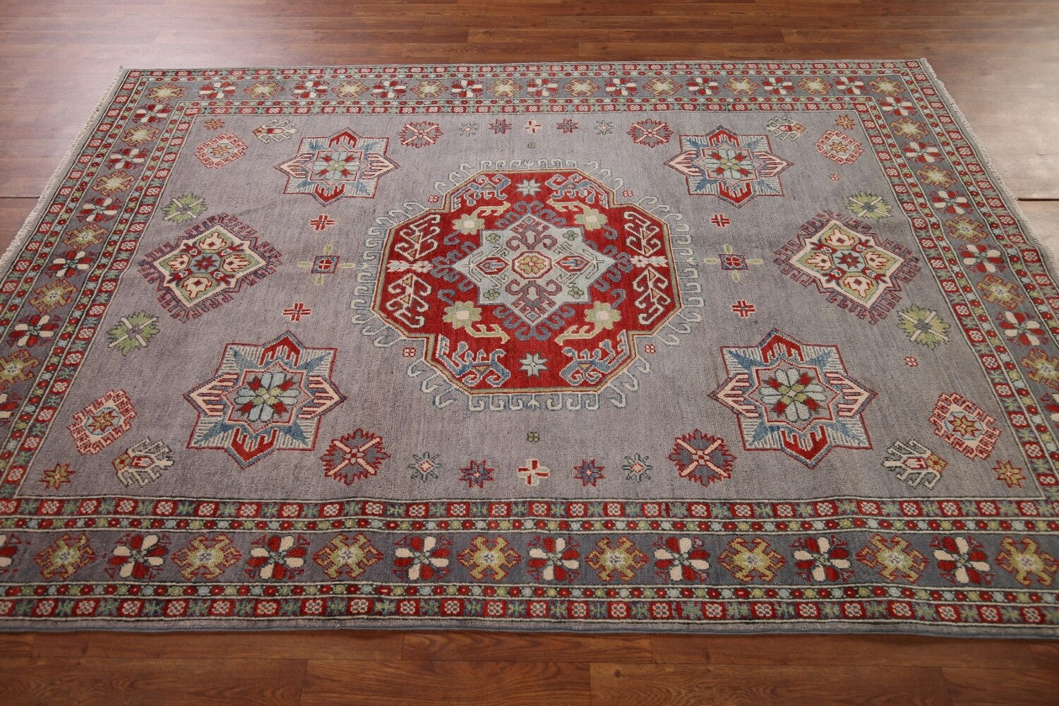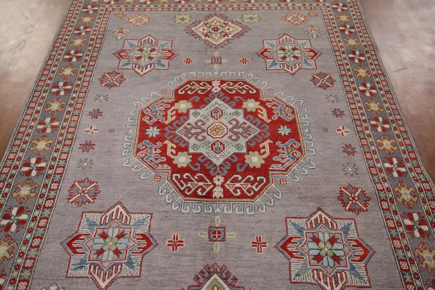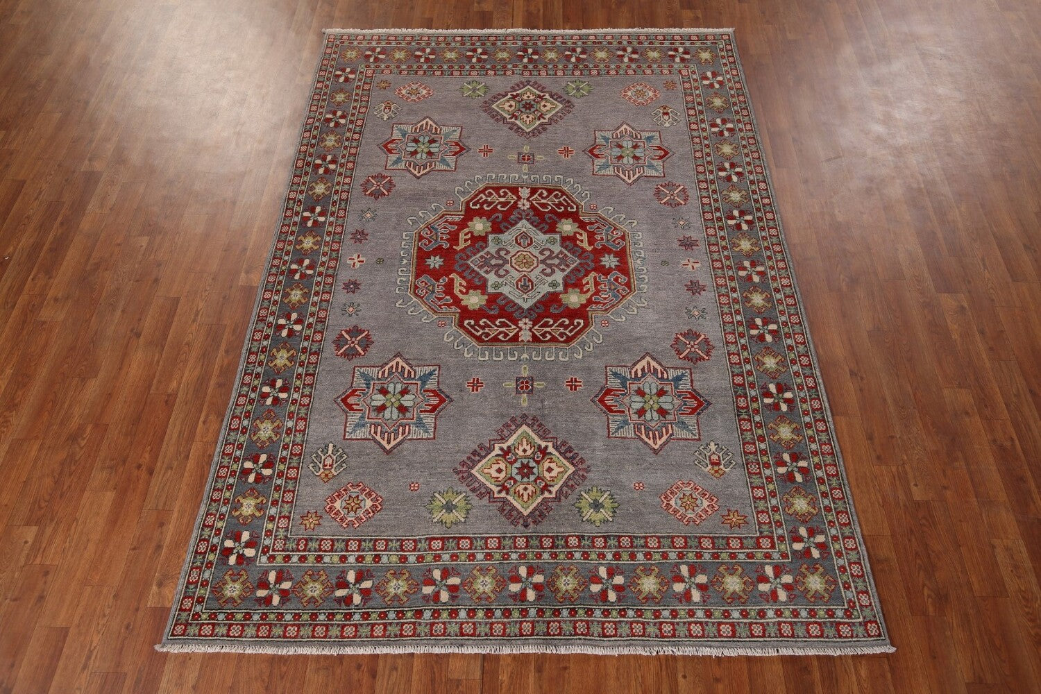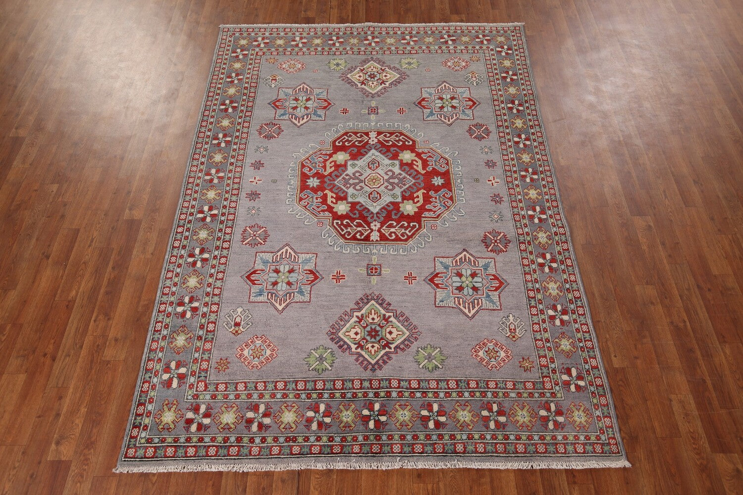 Gray Geometric Kazak Oriental Area Rug 6x8