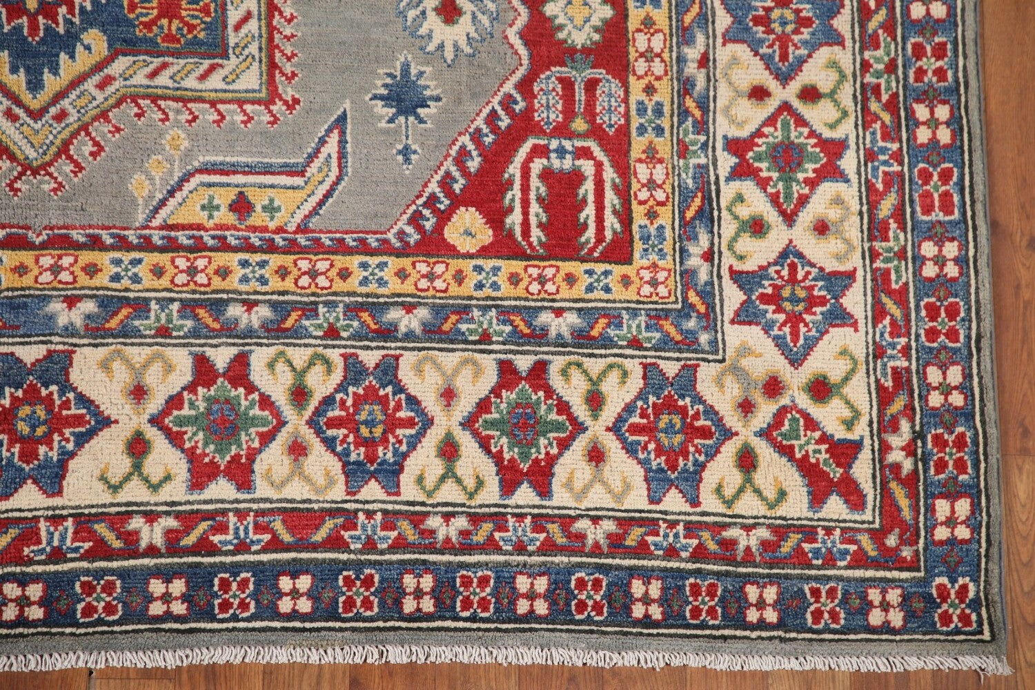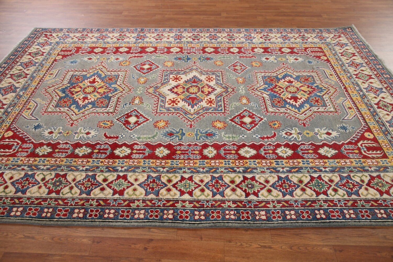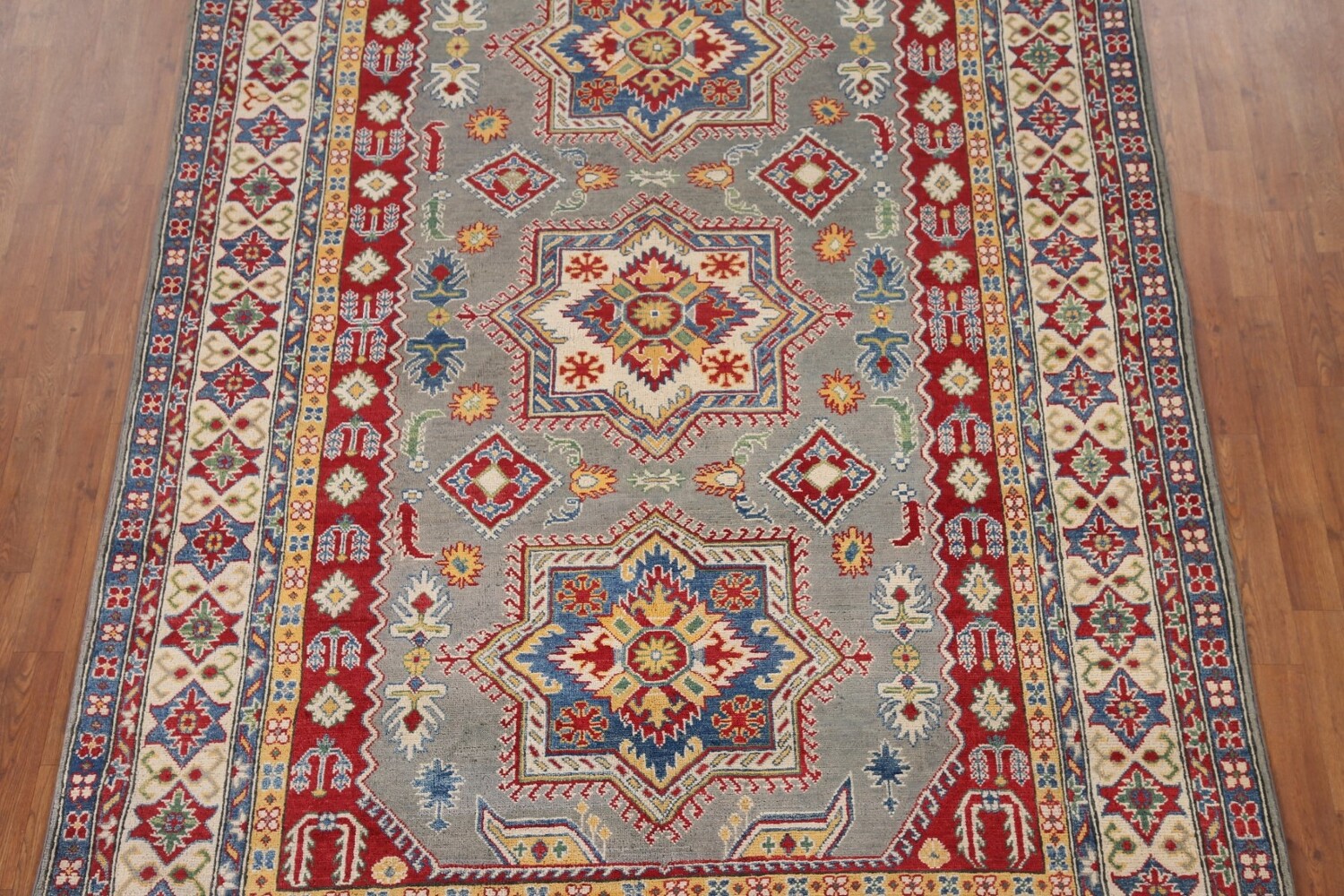 Gray Geometric Kazak Oriental Area Rug 7x10